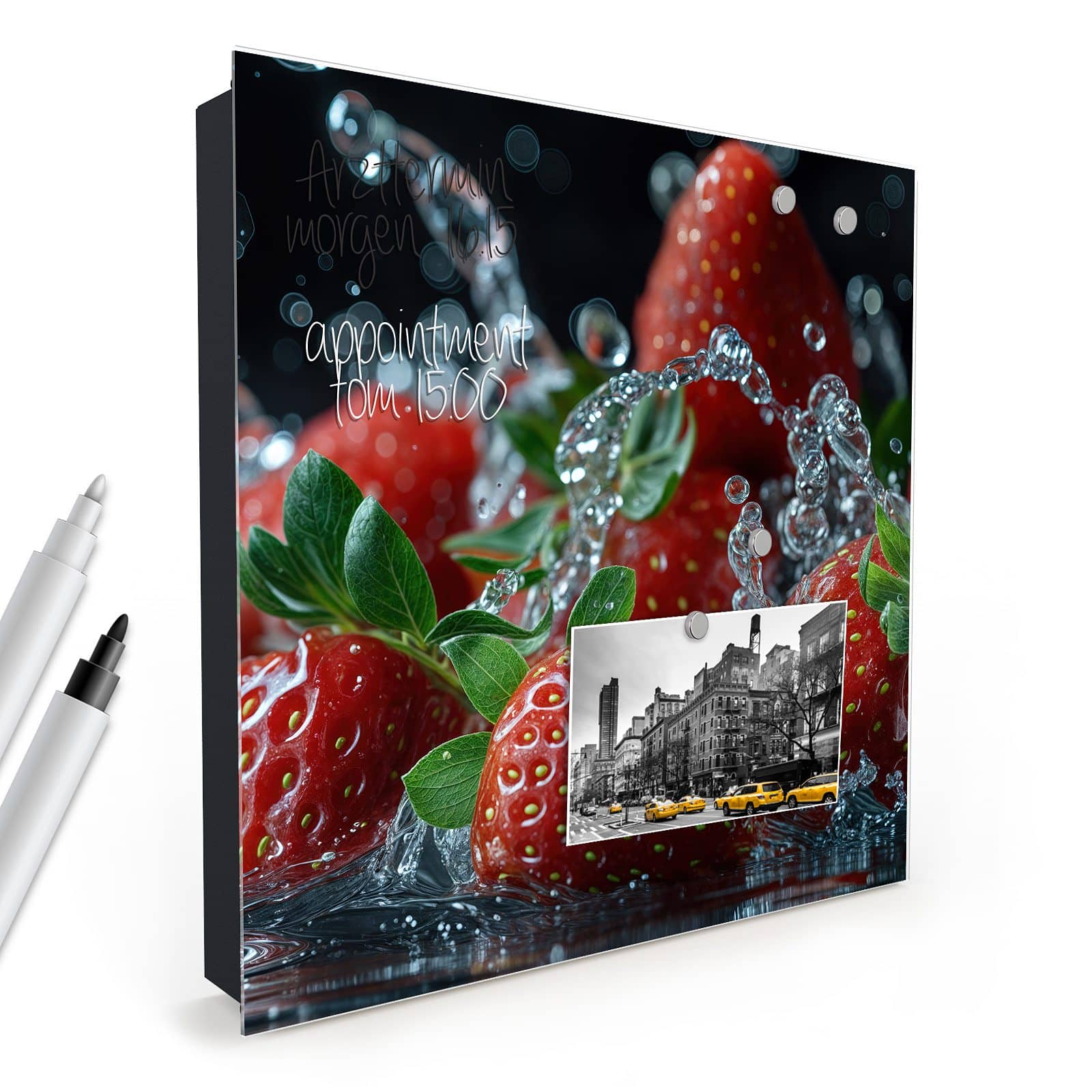 - Glasfront magnetisch und mit Hilfe von mitgelieferten Magnetpins frei dekorierbar