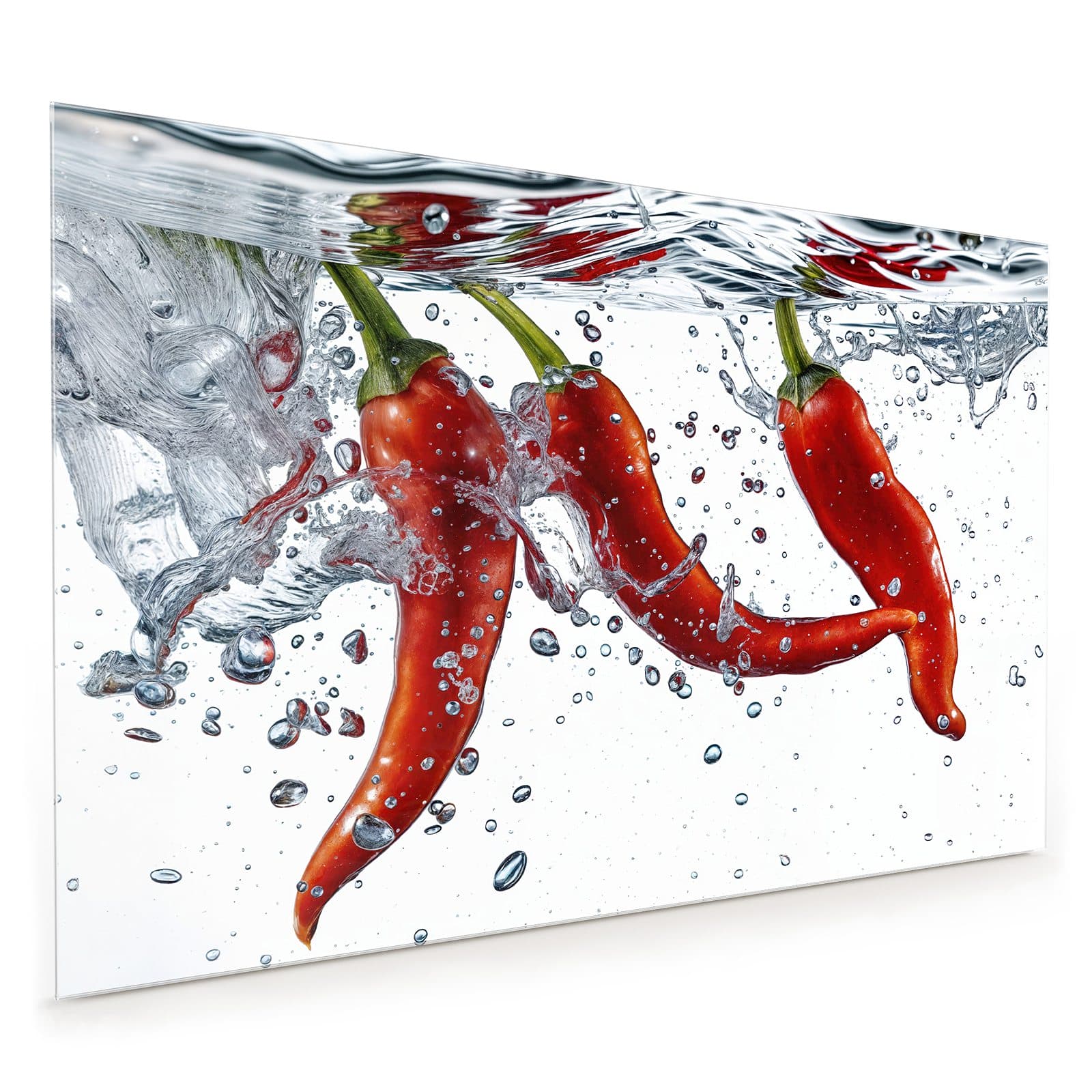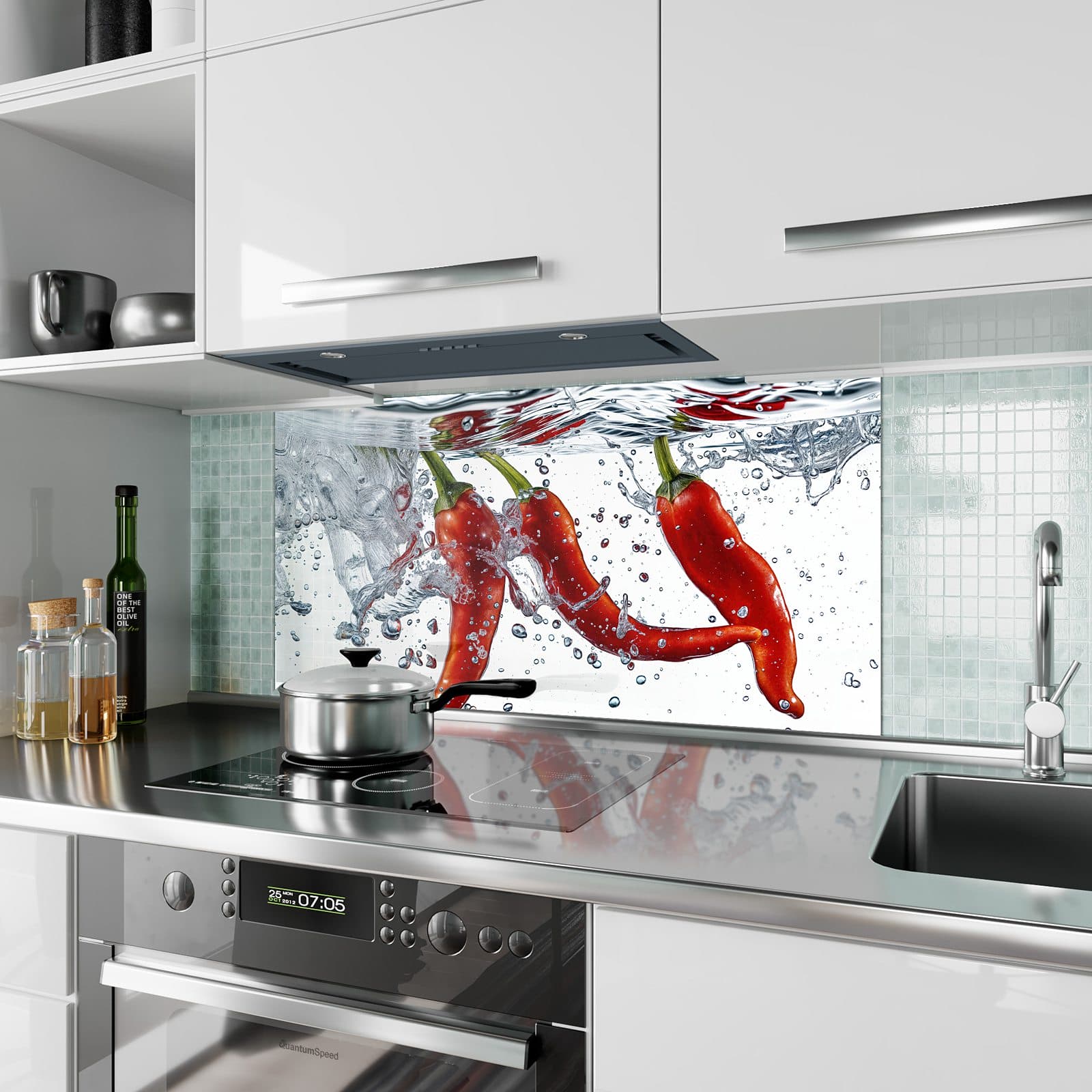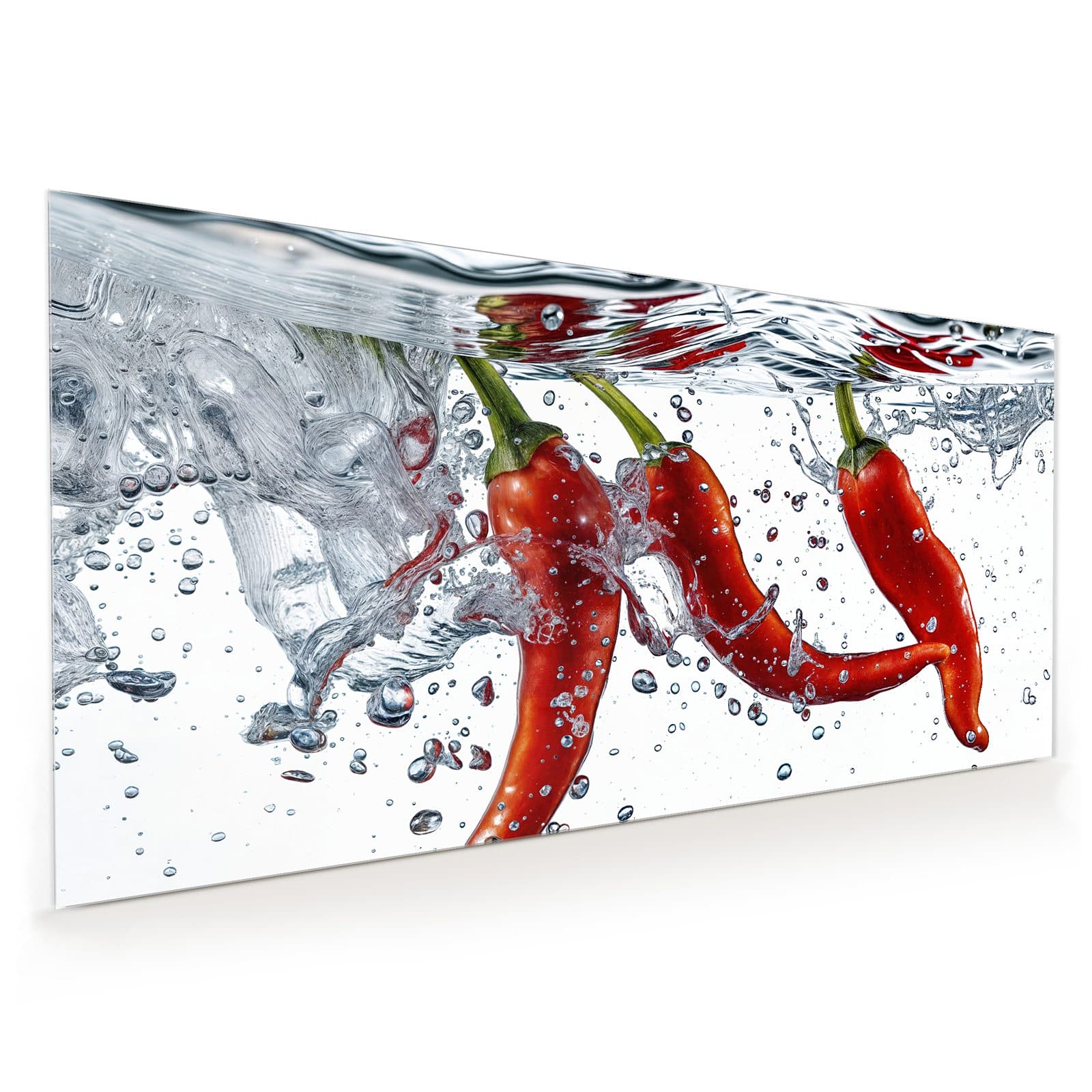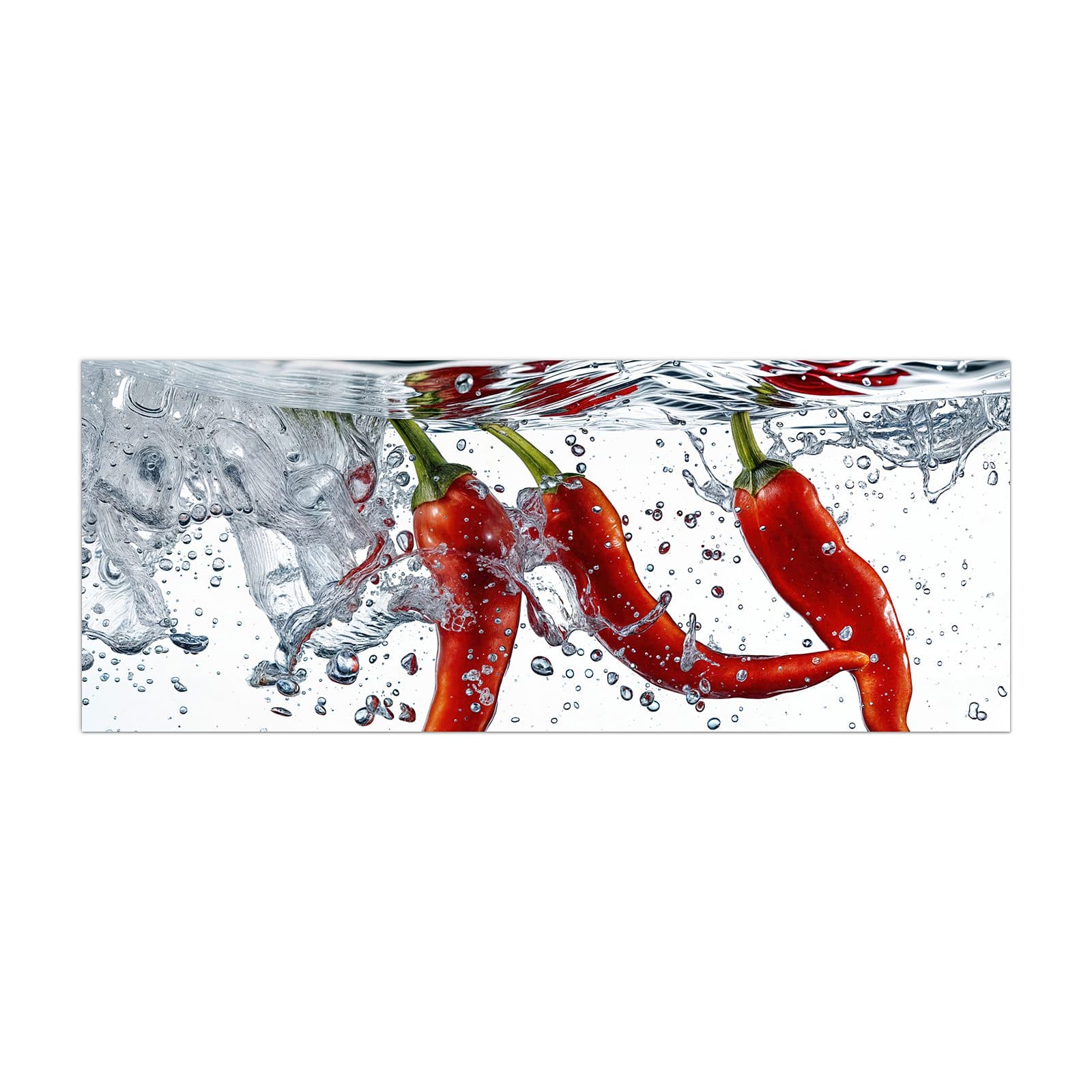 Elegante Küchenrückwand - Dekorative Chilis im Wasser
