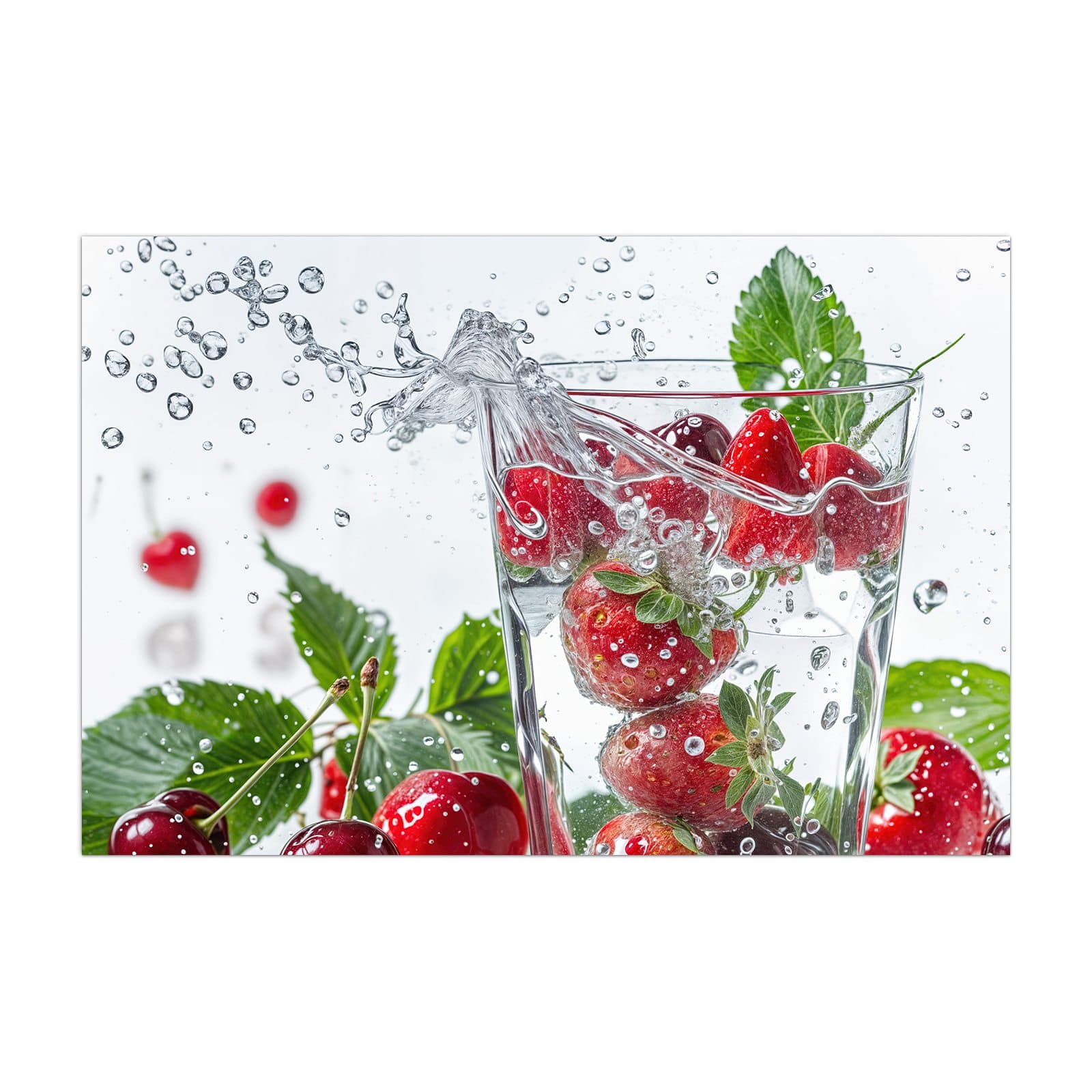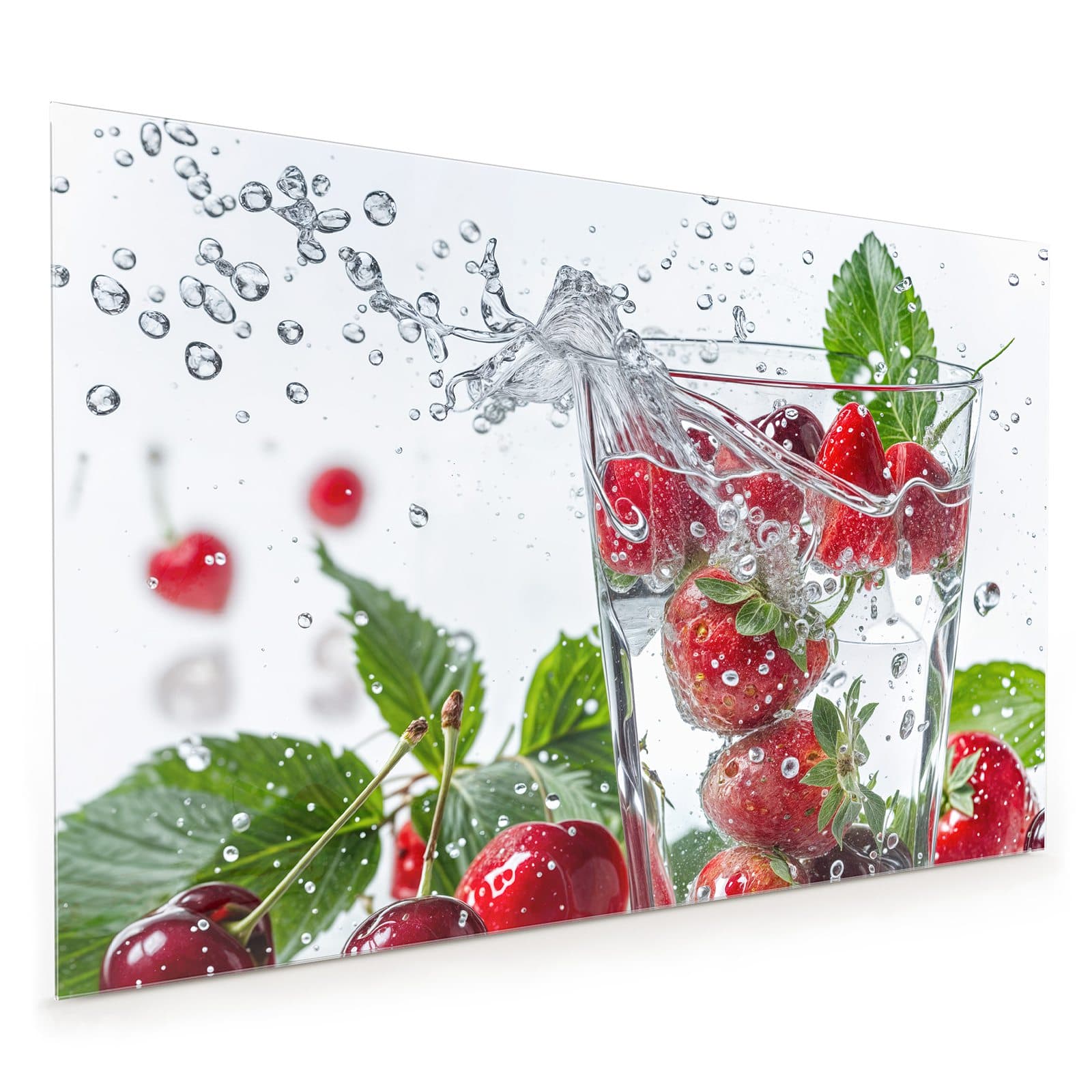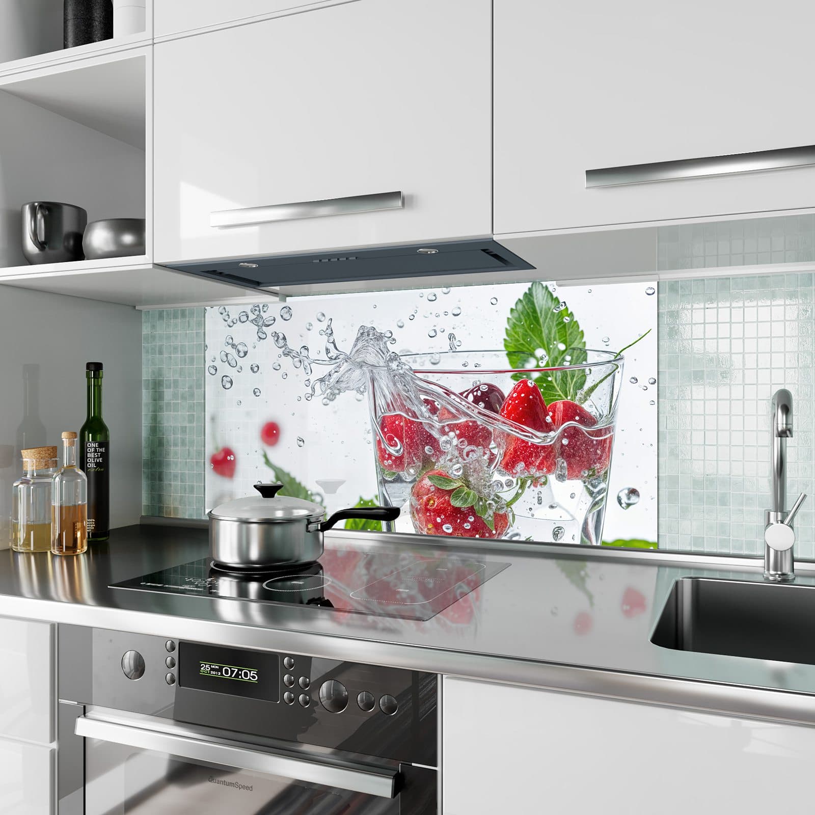 Elegante Küchenrückwand - Dekorative Erdbeeren und Kirschen