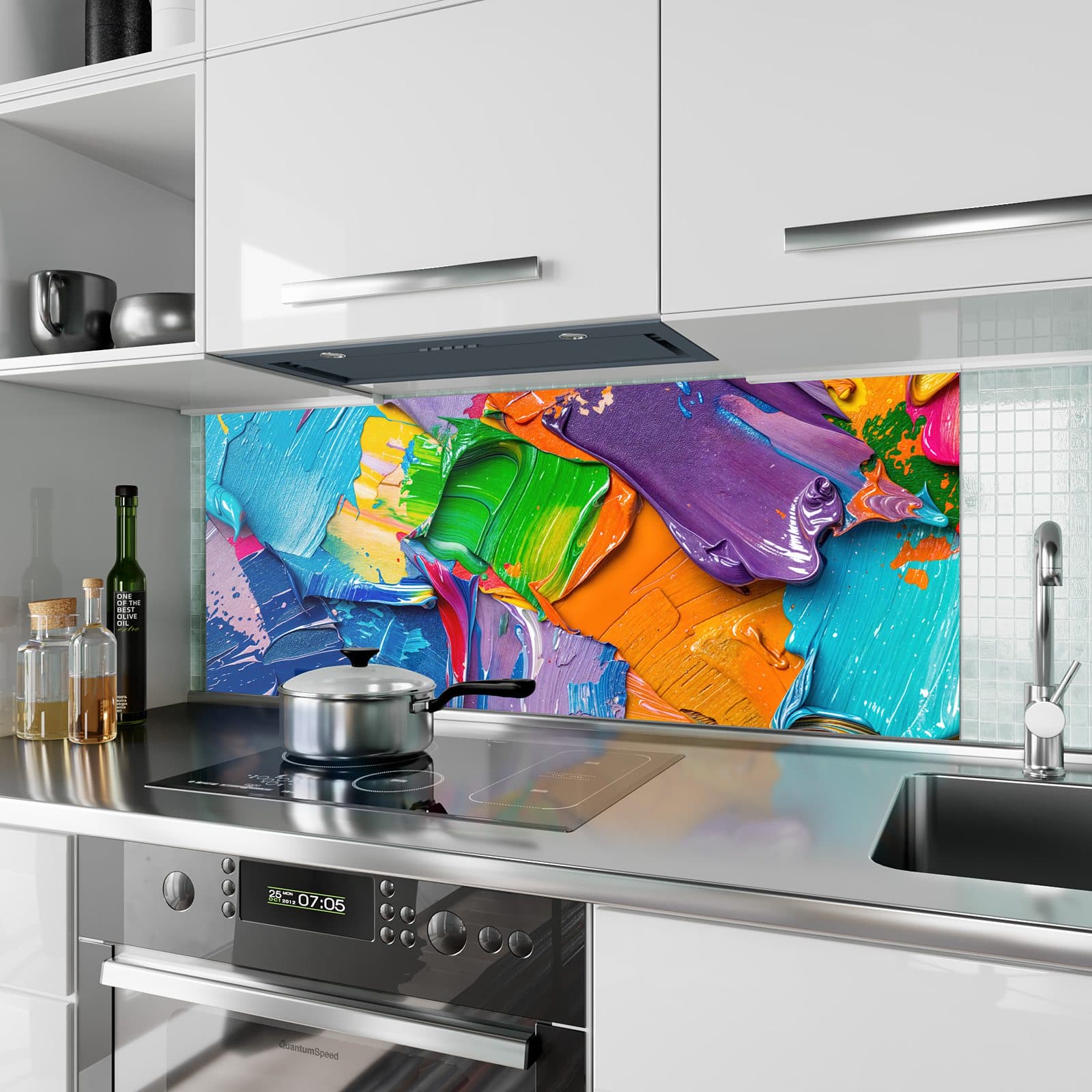 Die Küchenrückwand mit dem Motiv "Farbsymphonie" von Primedeco ist nicht nur ein praktischer Spritzschutz, sondern auch ein ästhetisches Highlight für jede Küche. Diese Rückwand vereint Funktionalität mit Design und schützt Ihre Küchenwände zuverlässig vor Verschmutzungen und Fettspritzern beim Kochen. Gleichzeitig bietet sie mit ihrem ansprechenden Motiv eine visuelle Bereicherung und schafft eine angenehme Atmosphäre. Die einfache Reinigung und die hygienischen Vorteile gegenüber herkömmlichen Fliesen oder Putz machen sie zu einer idealen Wahl für jede moderne Küche.