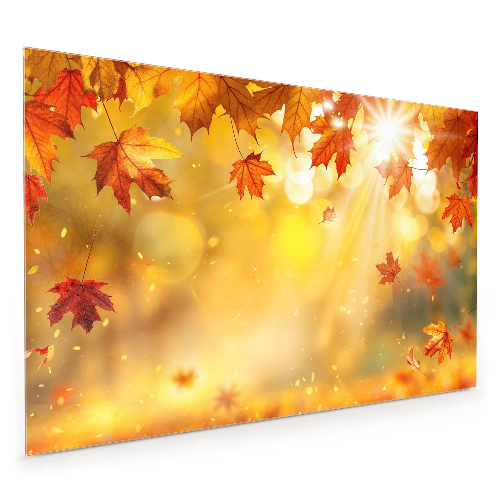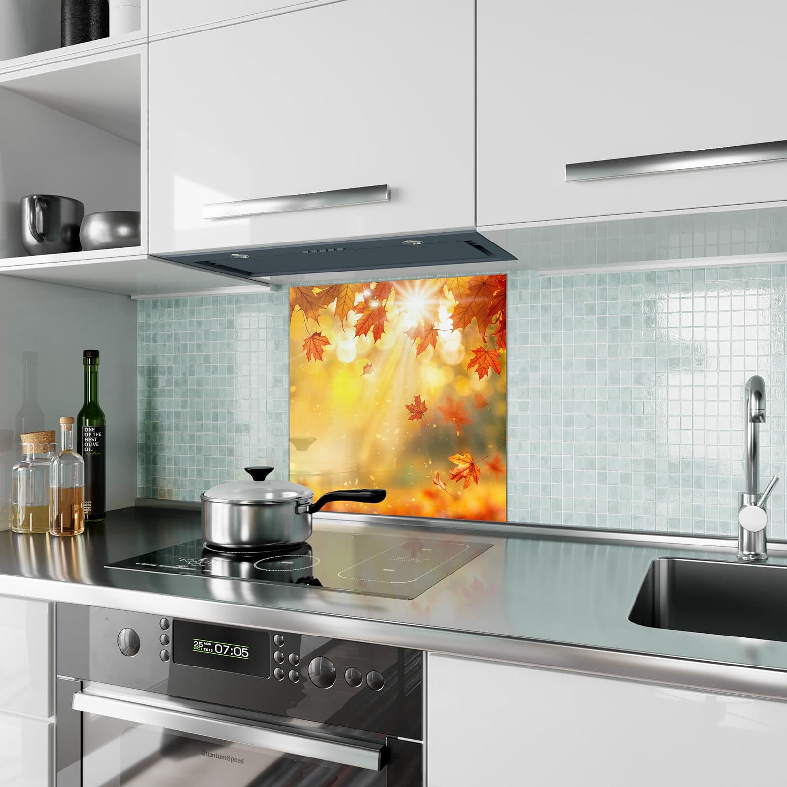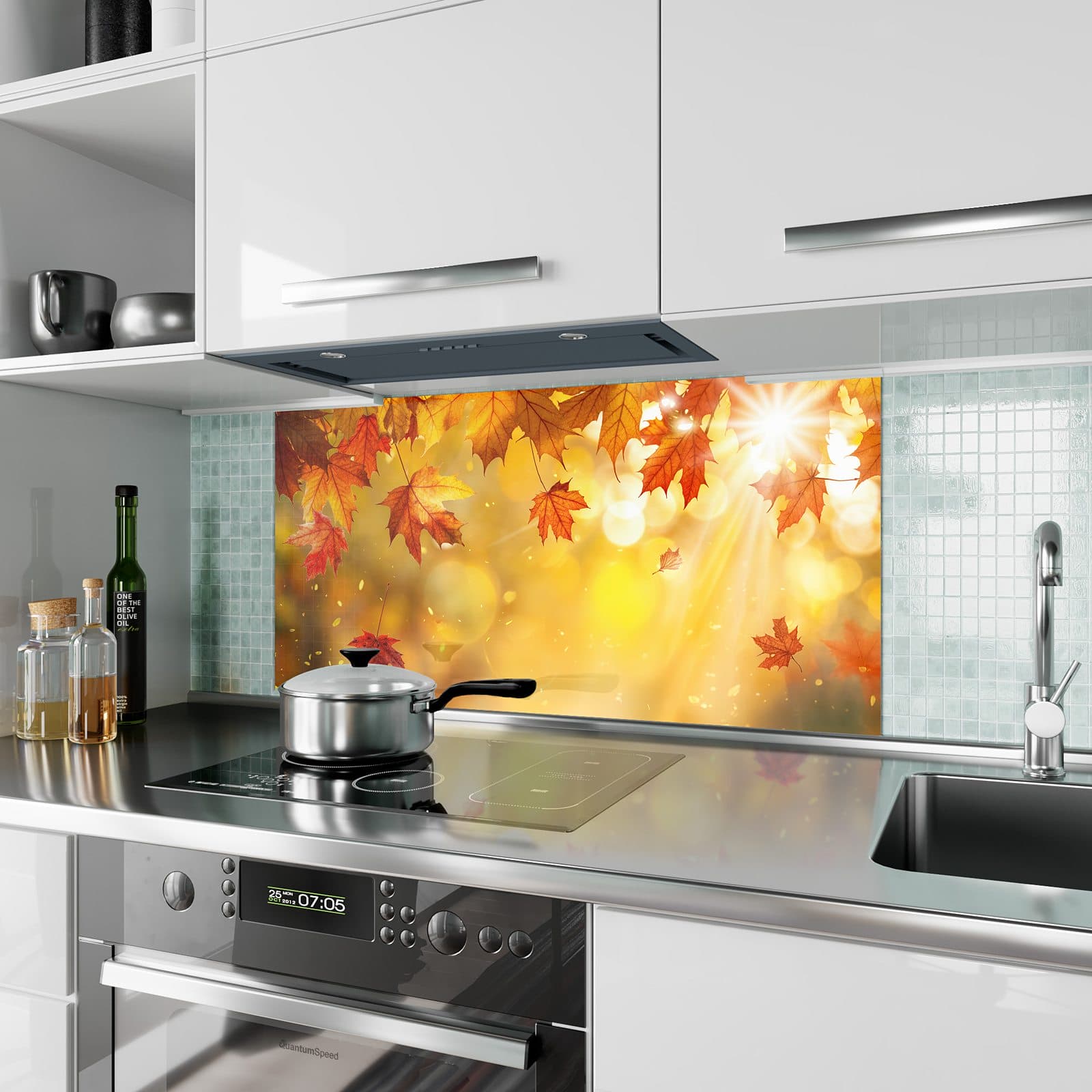 Elegante Küchenrückwand - Dekorative Herbstblätter Sonne