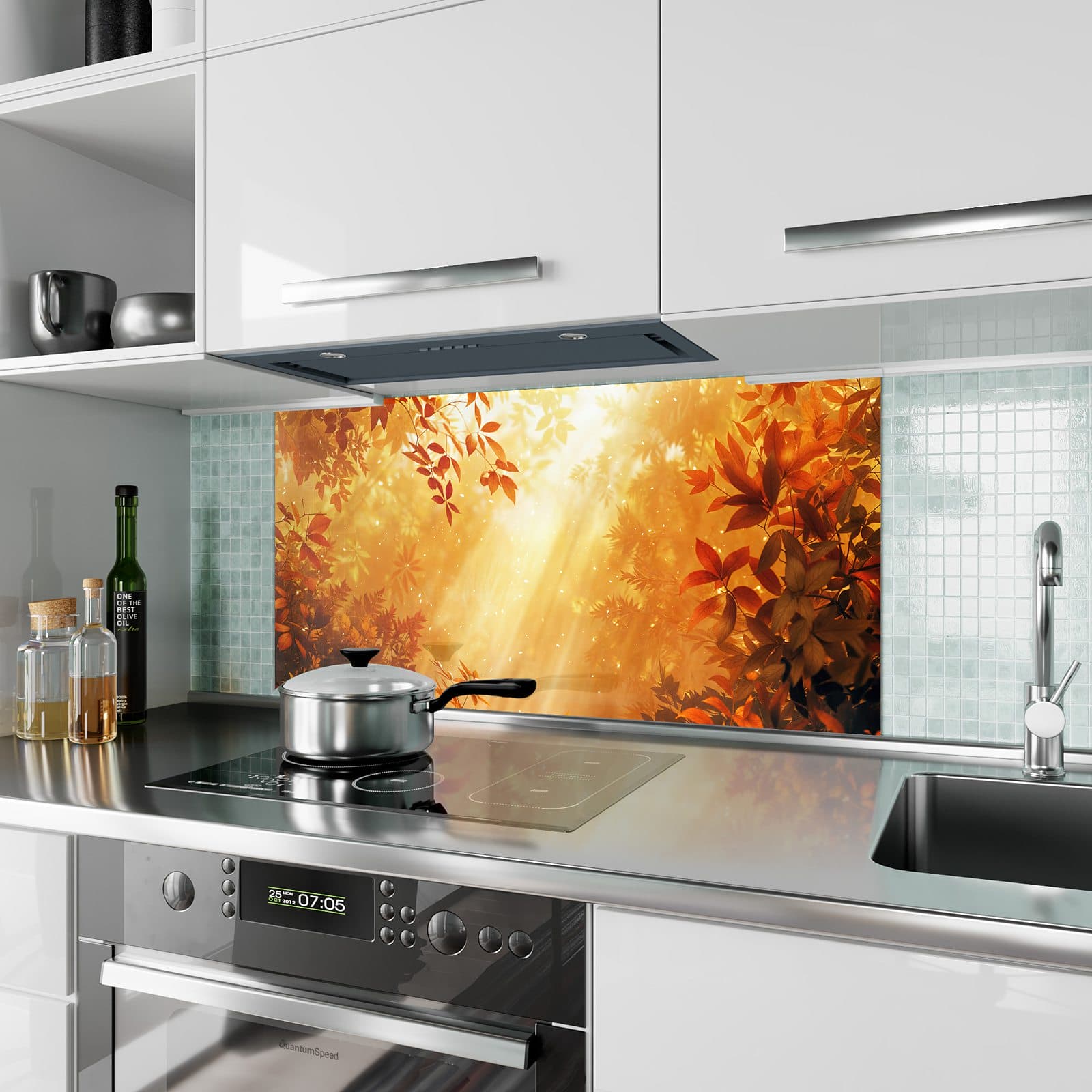 Elegante Küchenrückwand - Dekorative Herbstlicher Wald