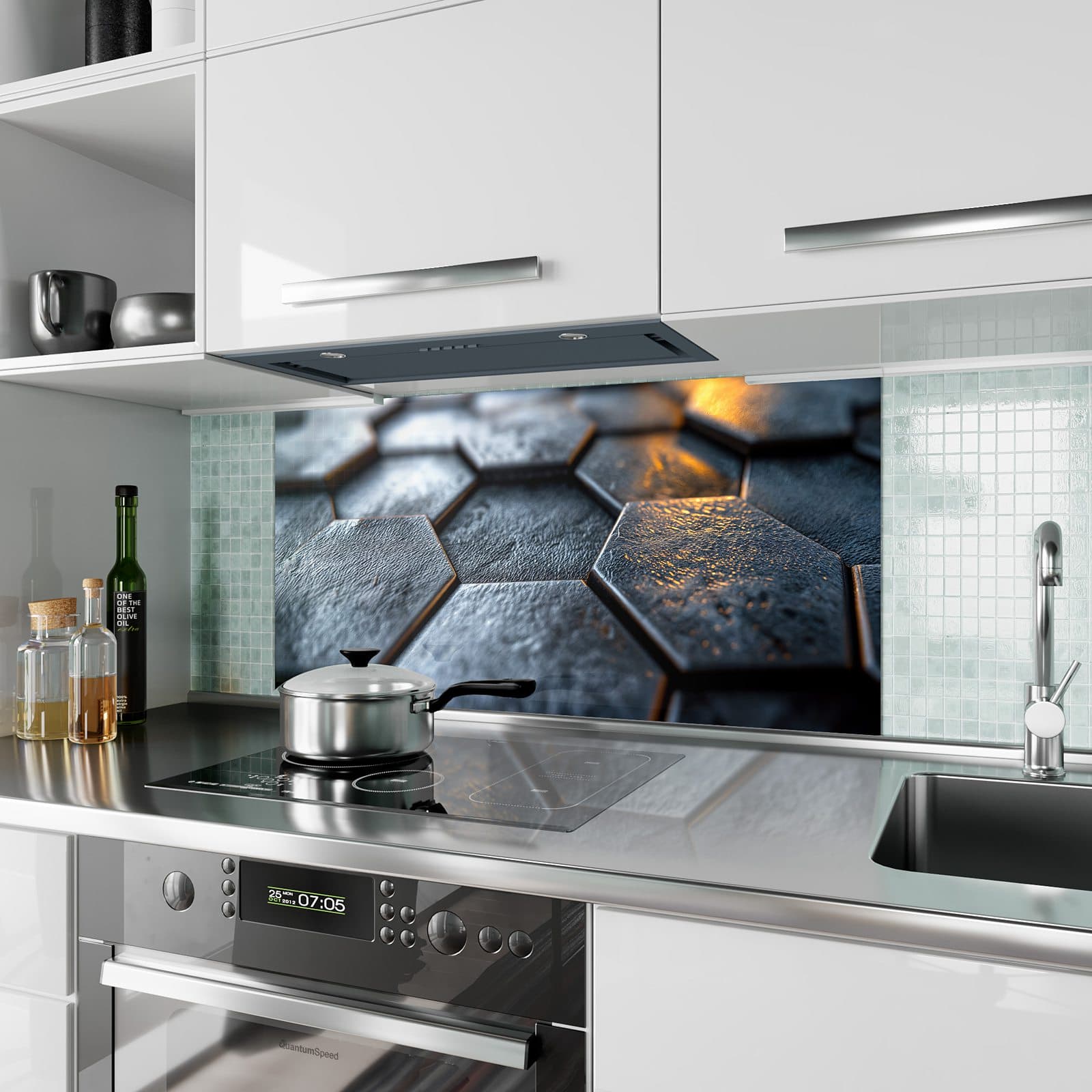 Elegante Küchenrückwand - Dekorative Hexagon Fliesenstrukur