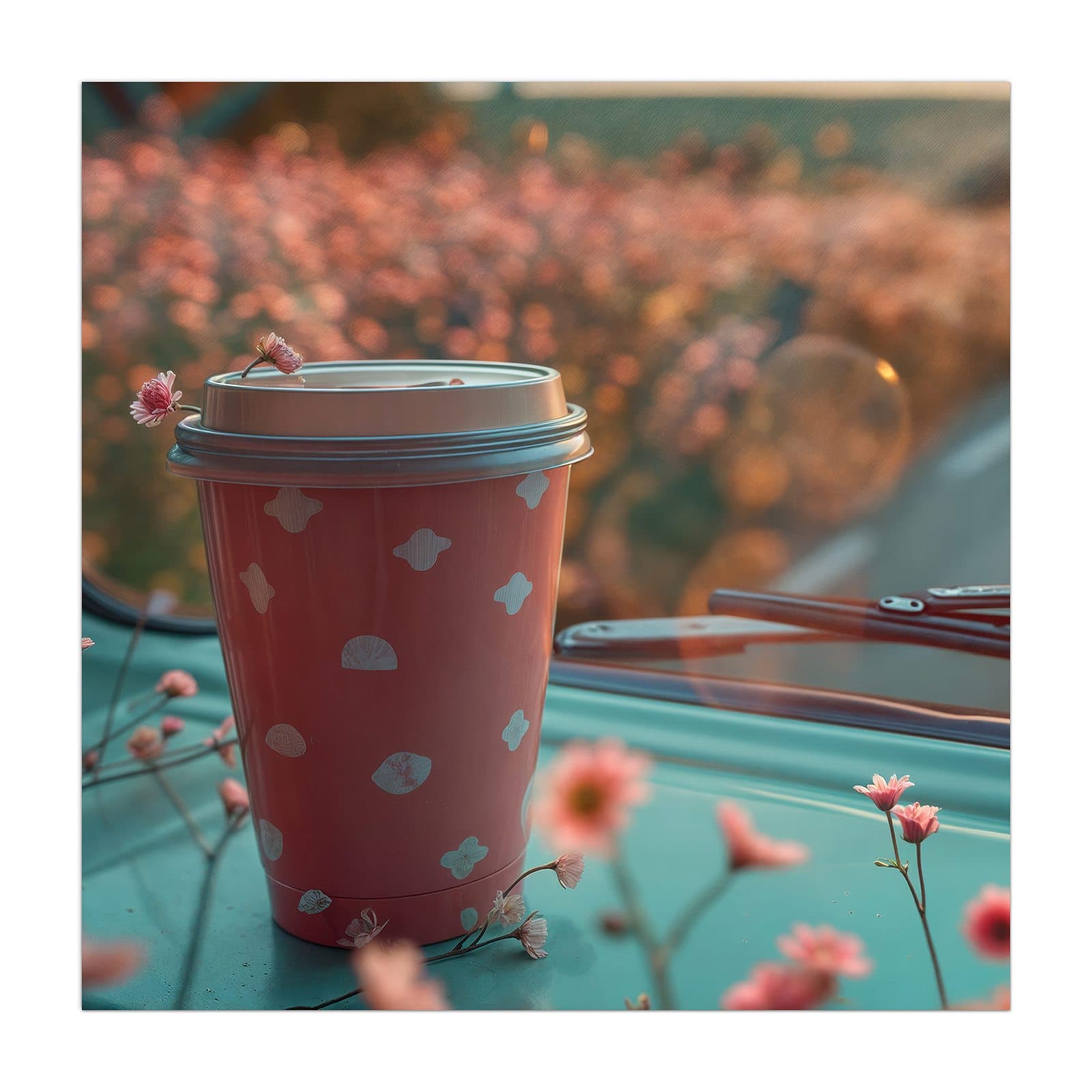 Elegante Küchenrückwand - Dekorative Kaffeebecher im Bus
