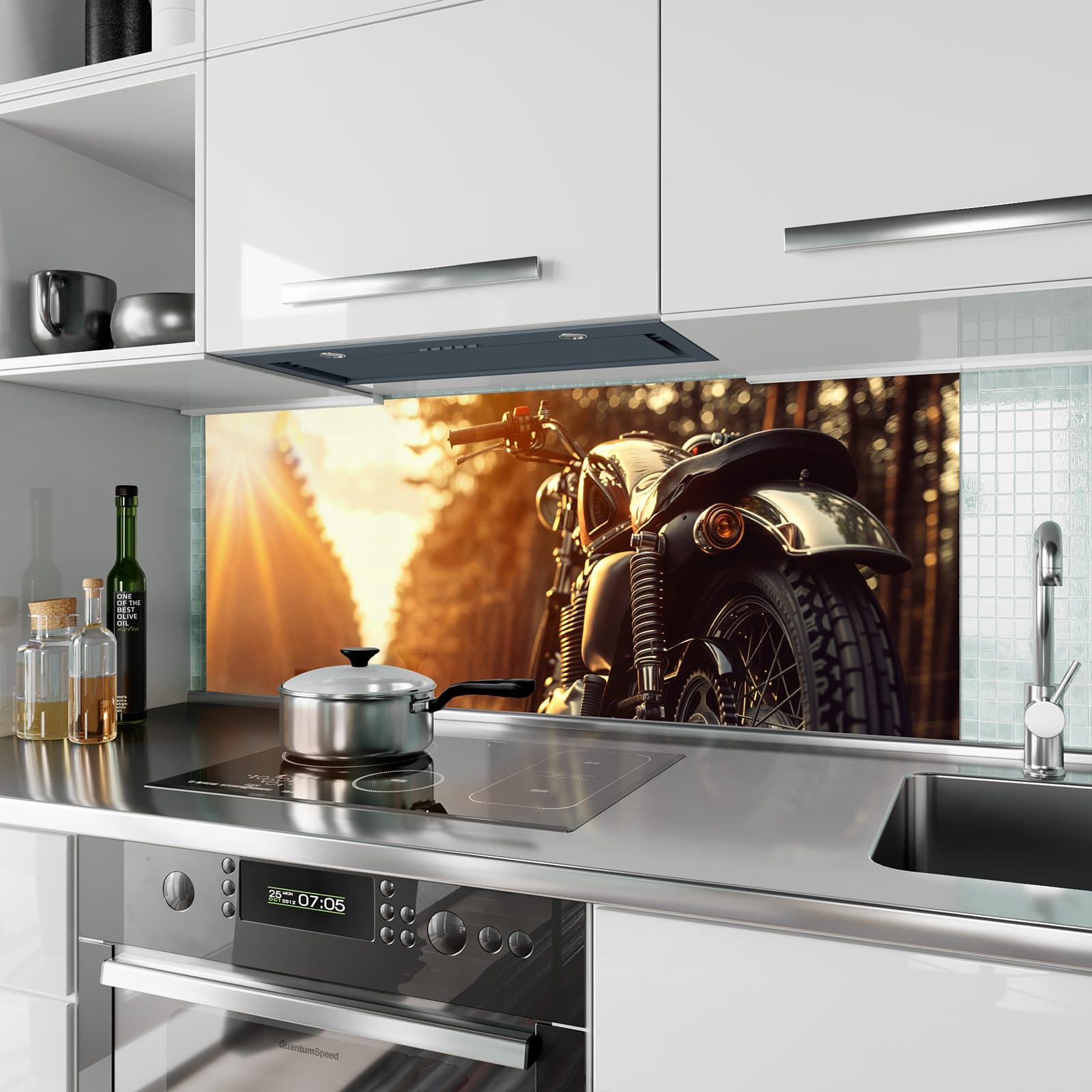 Elegante Küchenrückwand - Dekorative Motorradsonne