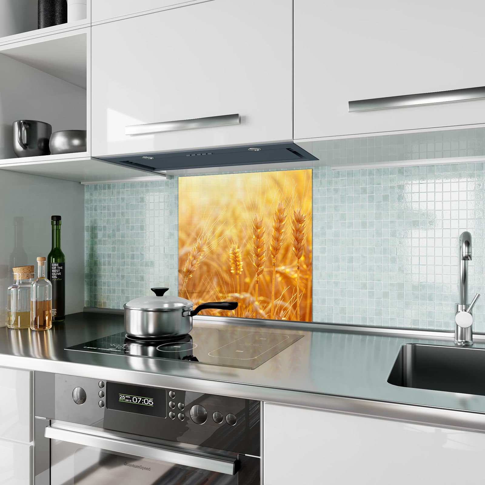 Bei der Herstellung der "Weizenfeld Sonnenuntergang" Küchenrückwand legt Primedeco großen Wert auf Qualität und Langlebigkeit. Das 4 mm dicke Einscheibensicherheitsglas ist nicht nur robust und widerstandsfähig gegenüber Temperatur- und Feuchtigkeitsschwankungen, sondern auch besonders hygienisch dank seiner porenfreien Oberfläche. Gerüche, Flüssigkeiten und Bakterien finden hier keinen Nährboden, was die Rückwand zu einer hygienischen Alternative zu anderen Wandbelägen macht. Die leichte Reinigung mit einem feuchten Tuch hält Ihre Küche sauber und hygienisch.