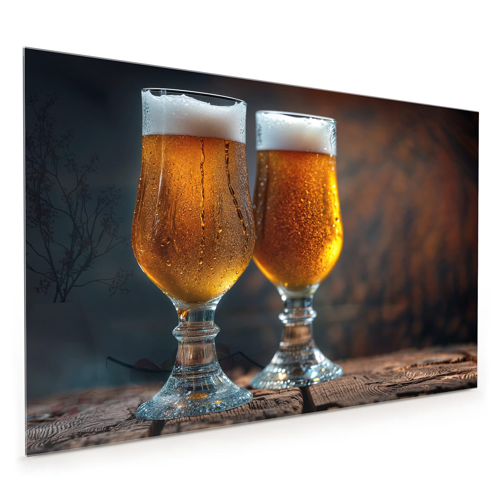 Elegante Küchenrückwand - Dekorative Zwei Biergläser Holz