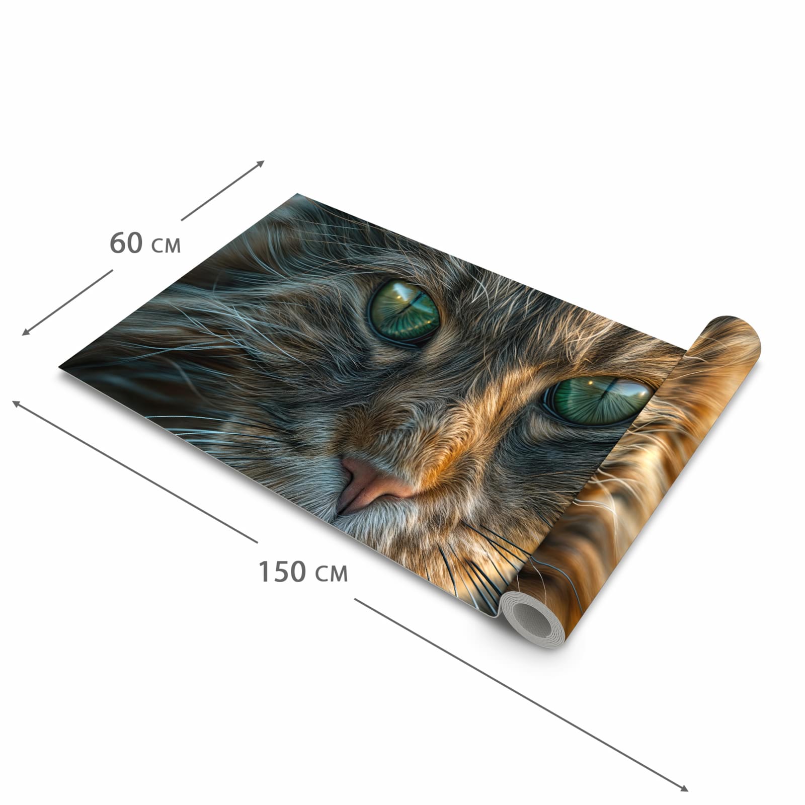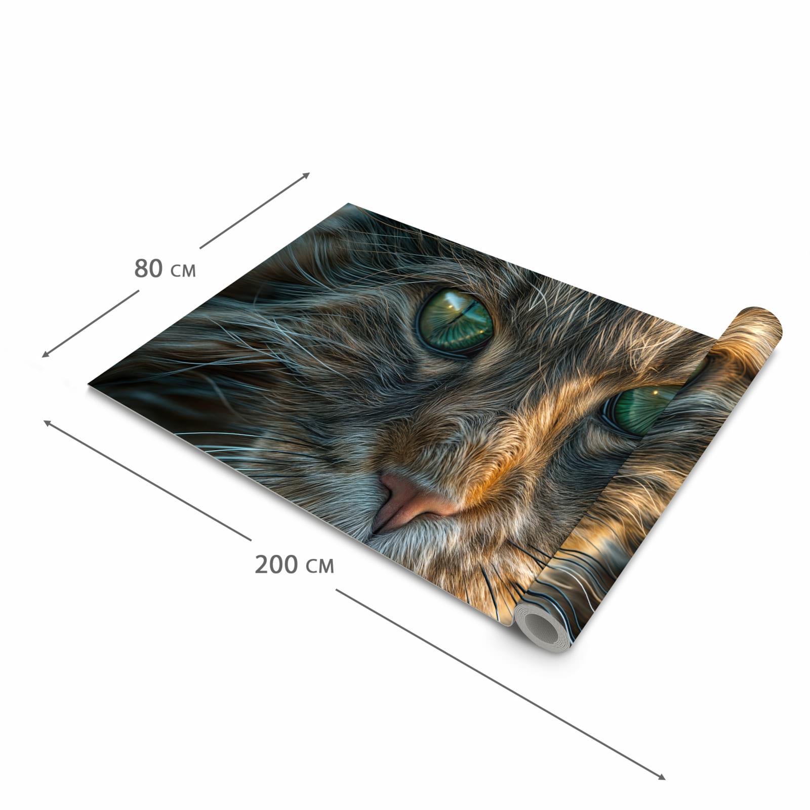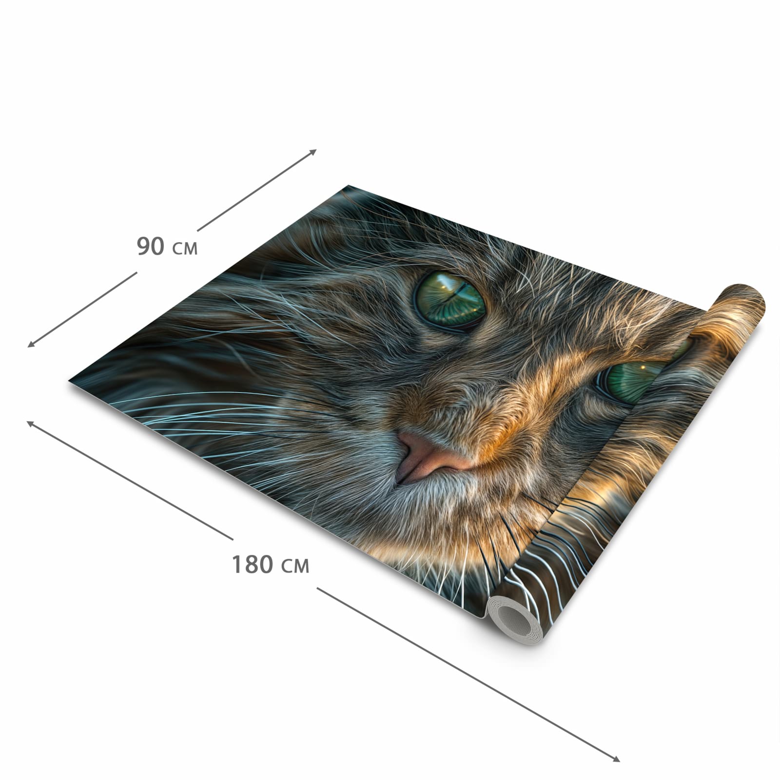 Gefertigt aus langlebigem PVC mit einer Materialstärke von ca. 3–3,5 mm überzeugt der Teppich durch hohe Strapazierfähigkeit und Pflegeleichtigkeit. Das Motiv Nahaufnahme Katze wird im modernen UV-Direktdruckverfahren aufgebracht. Dadurch entsteht eine brillante Farbwiedergabe mit gestochen scharfen Details, die abriebfest und farbbeständig ist – ideal für den täglichen Gebrauch im Haushalt.
