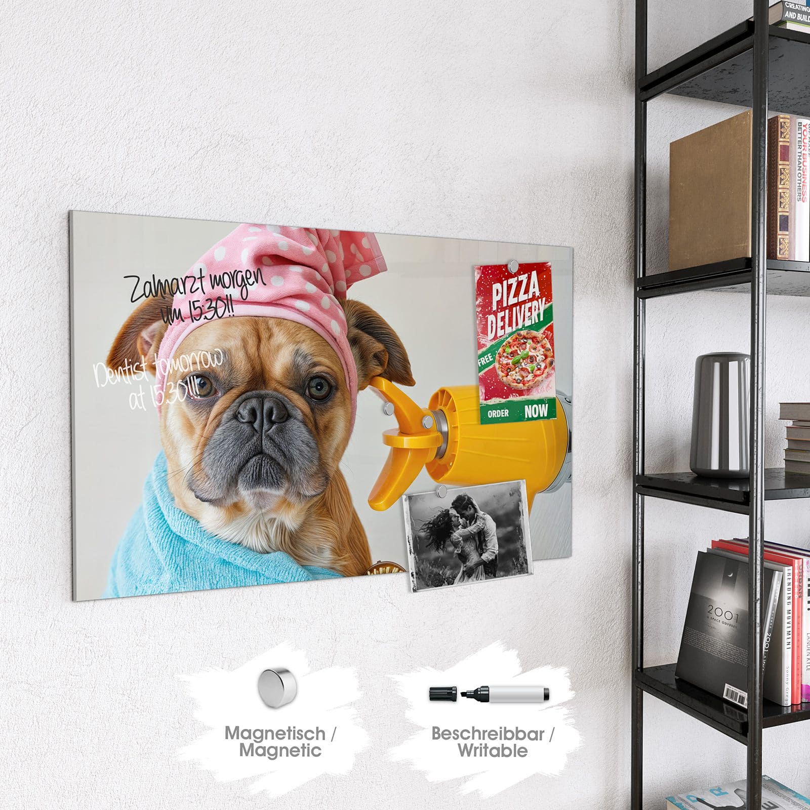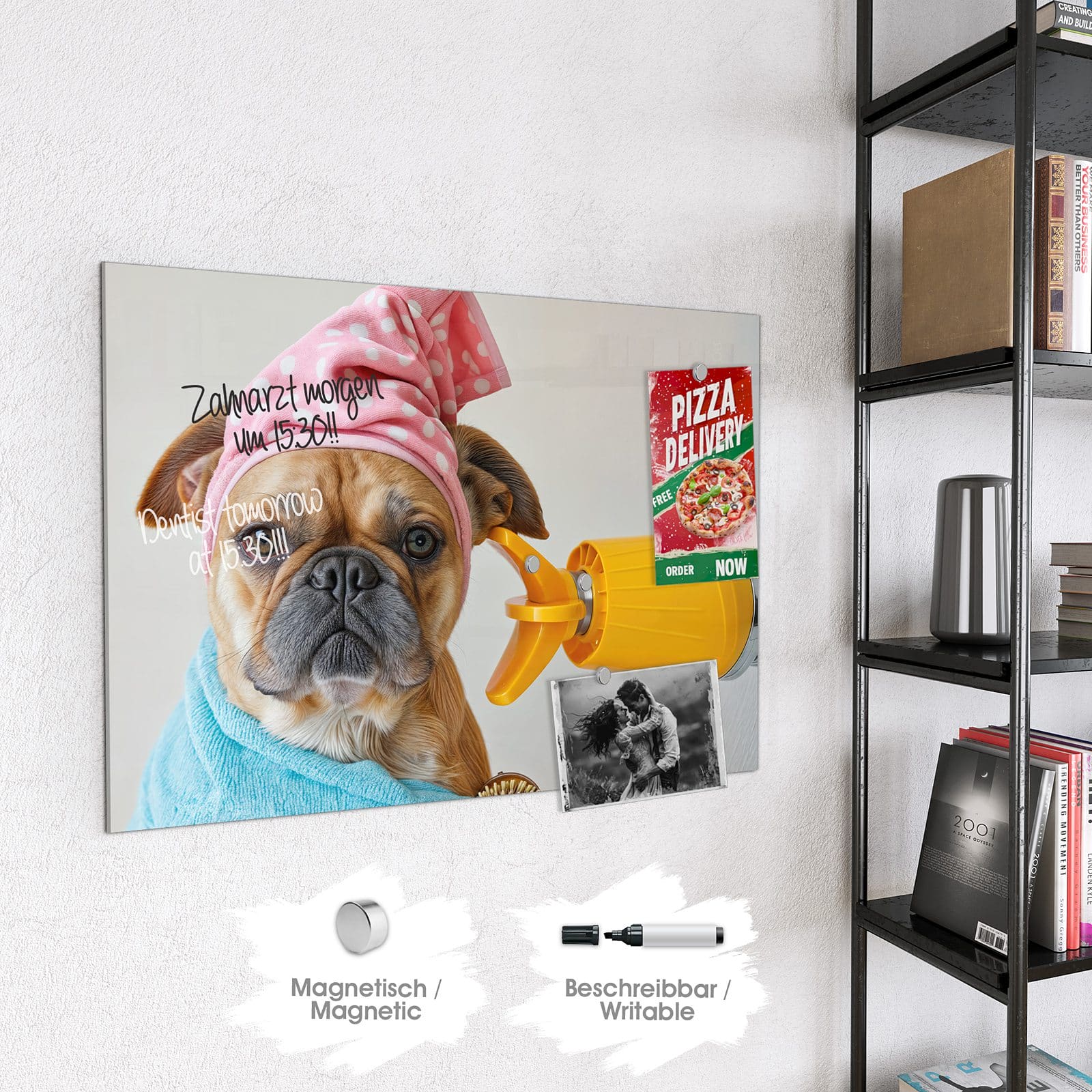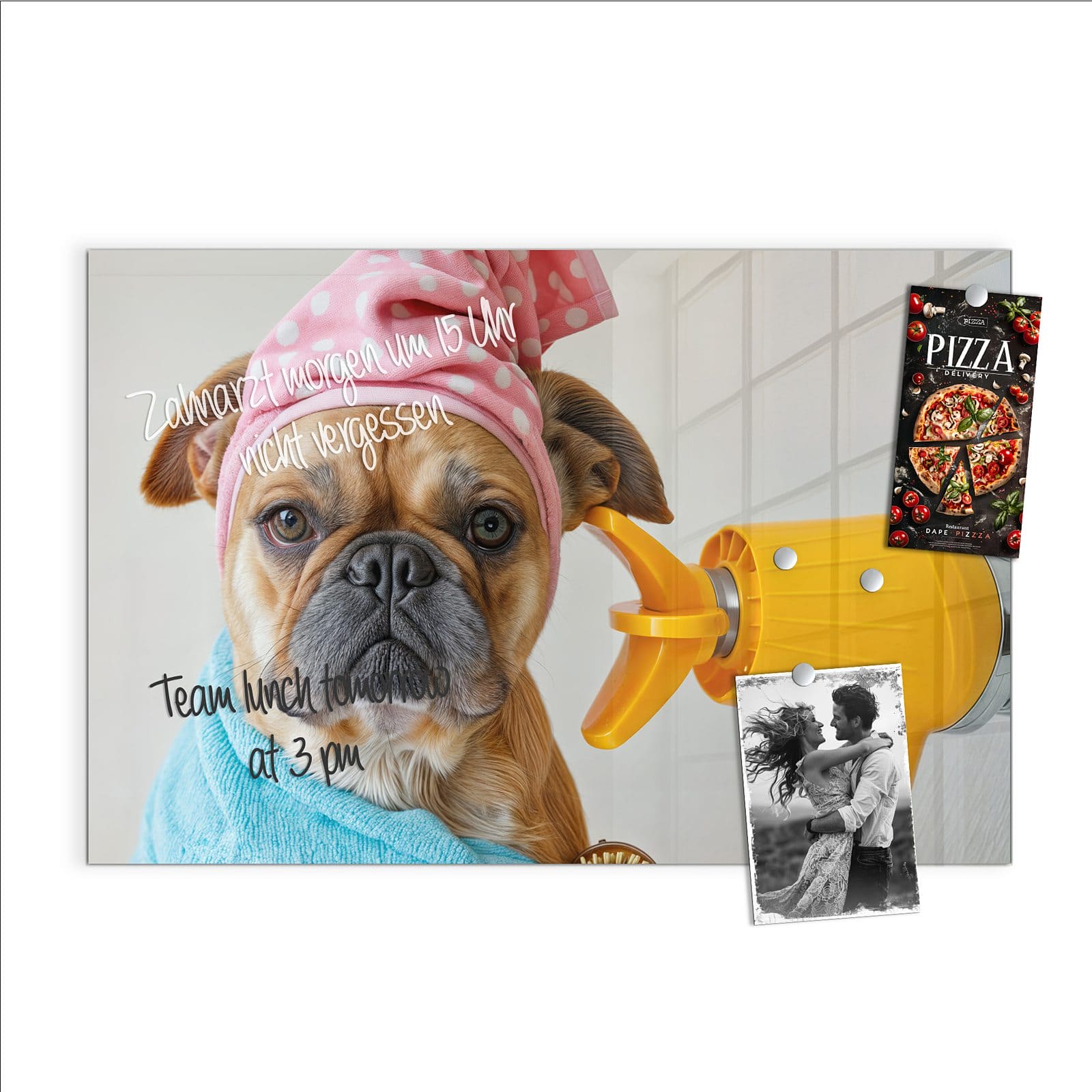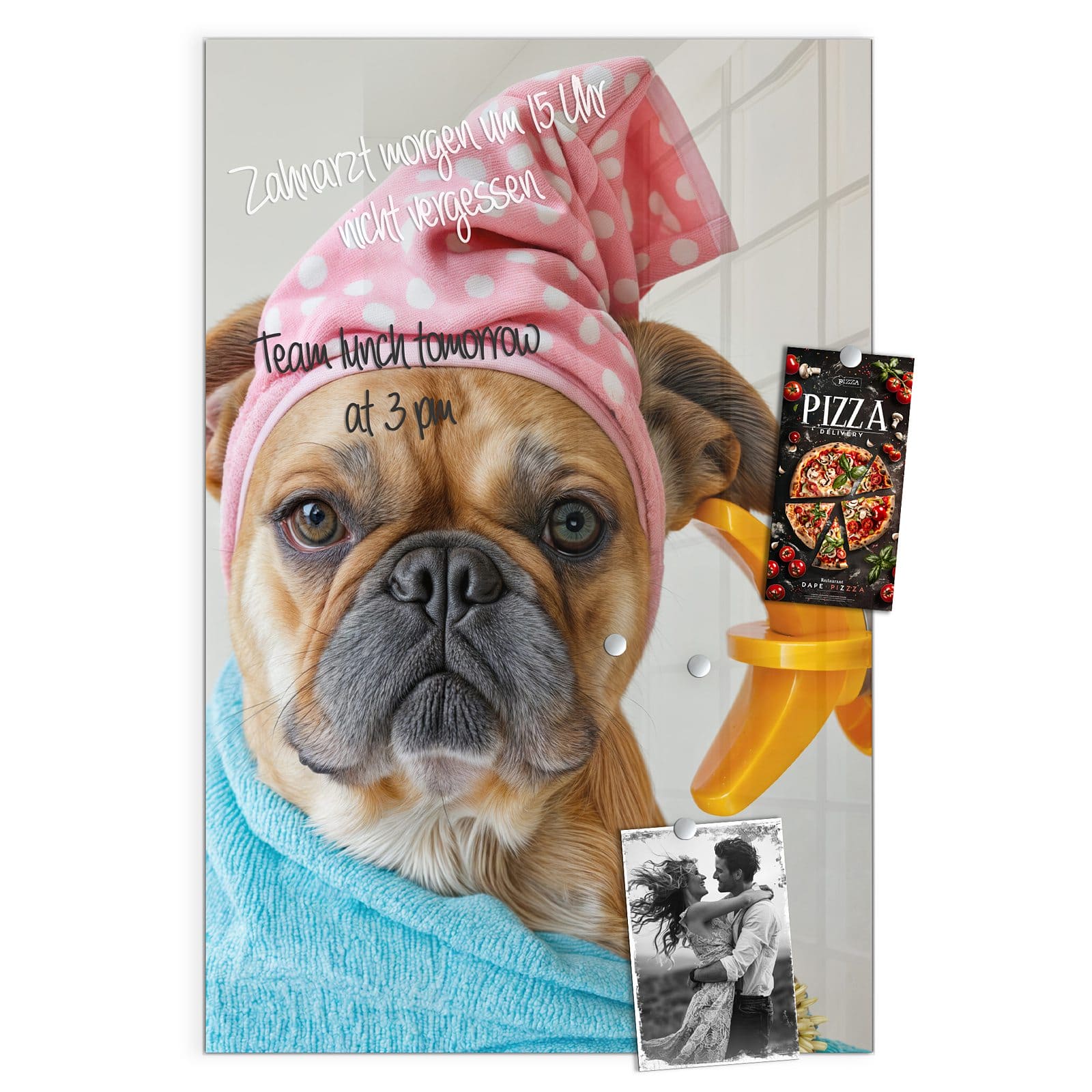 Vielseitige Magnettafel für Ihr Zuhause - Glas-Magnettafel Hund mit Badehandtuch