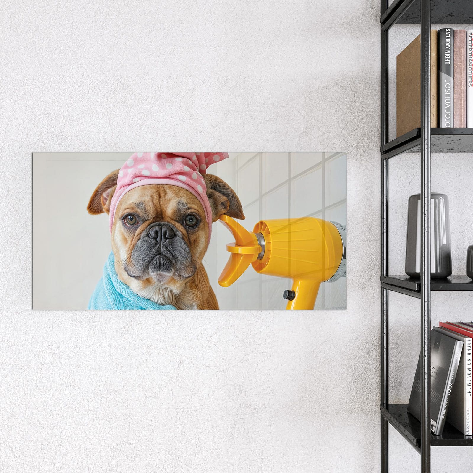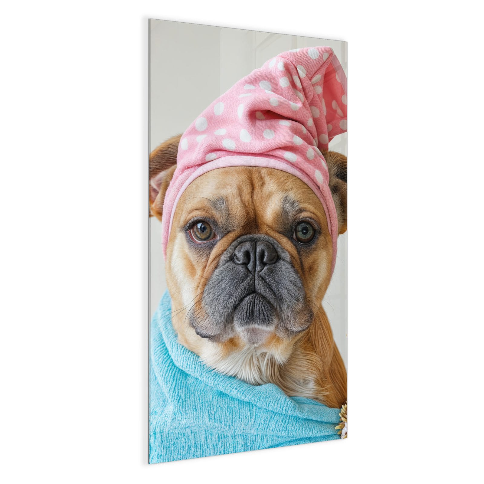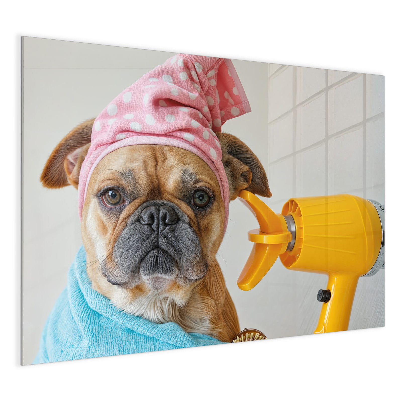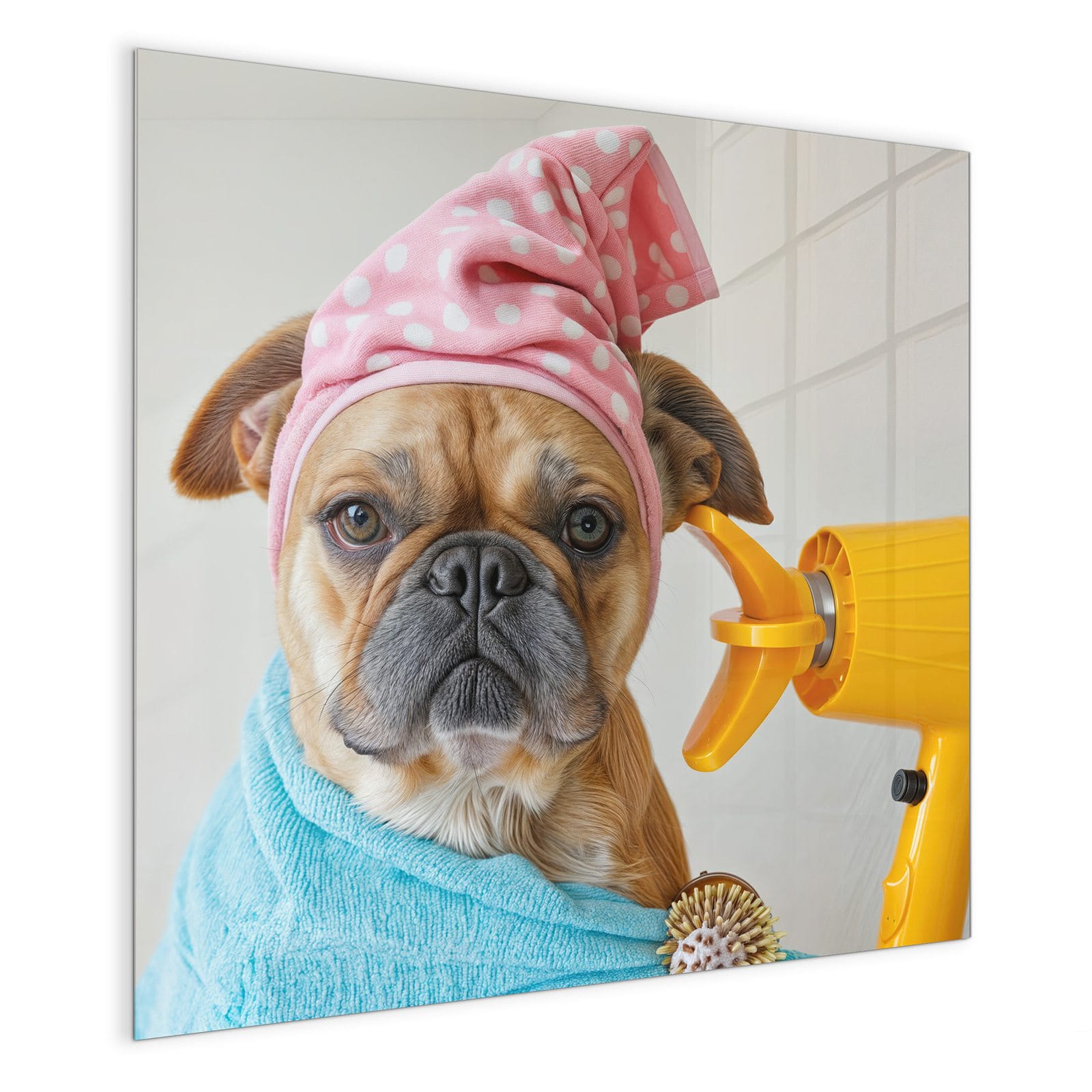 Vielseitige Magnettafel für Ihr Zuhause - Glas-Magnettafel Hund mit Badehandtuch