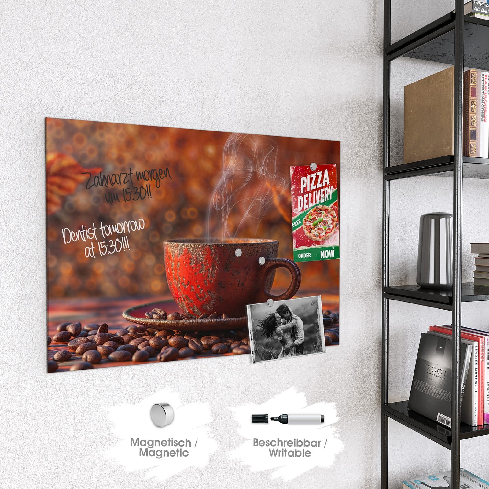 Vielseitige Magnettafel für Ihr Zuhause - Glas-Magnettafel Kaffeetasse im Herbst