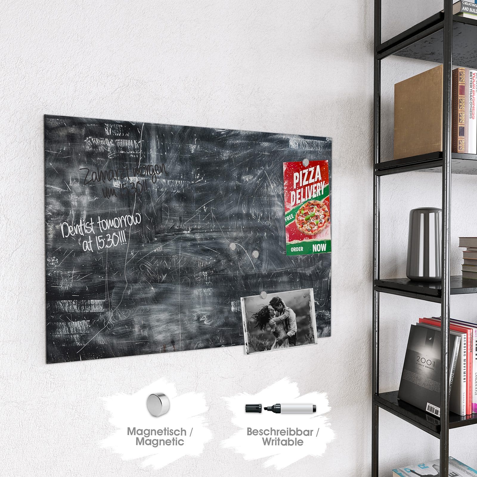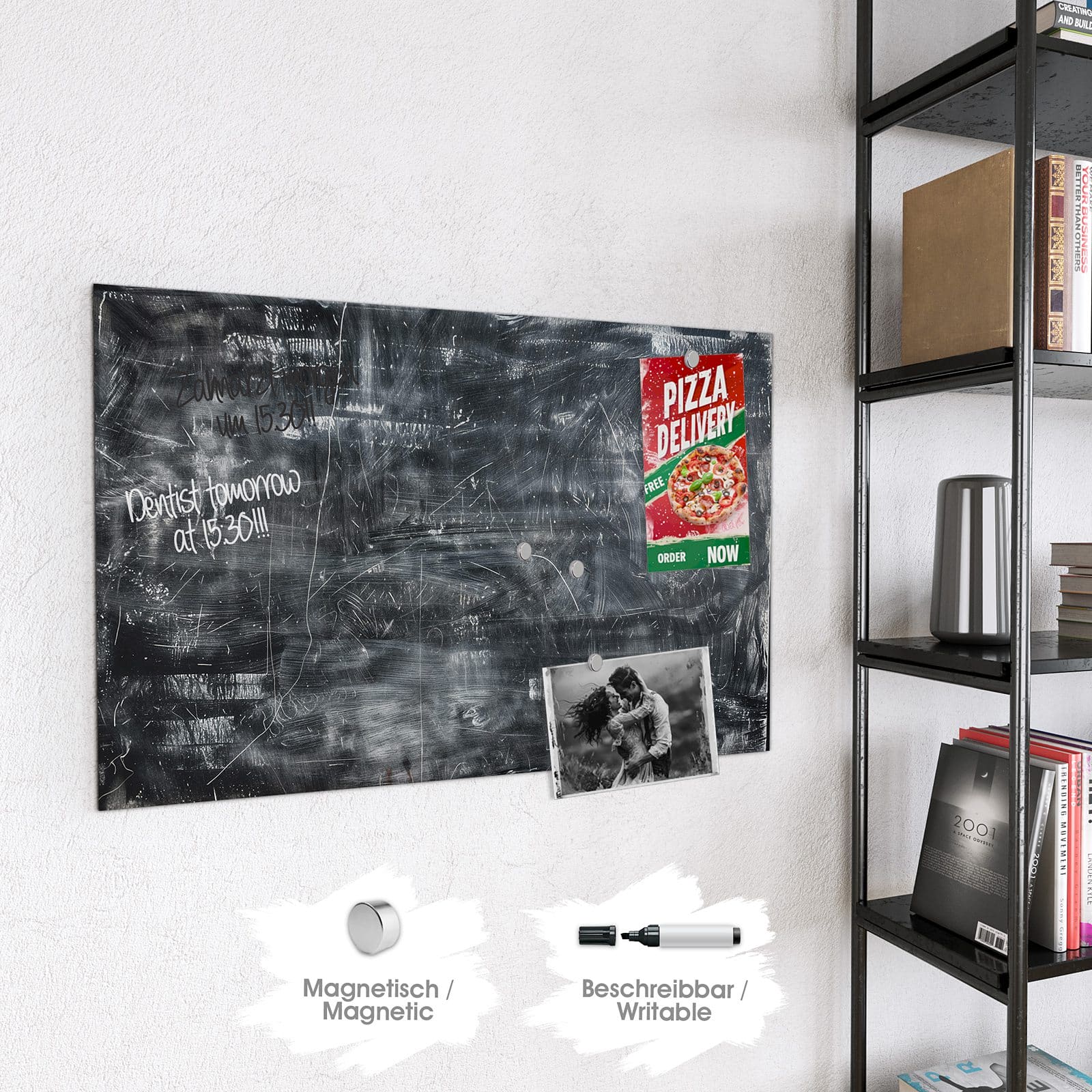 Hinweis: An dieser Glas-Magnettafel haften ausschließlich starke Magnete wie die mitgelieferten Neodym-Magnete. Gewöhnliche Kühlschrankmagnete sind nicht ausreichend stark.