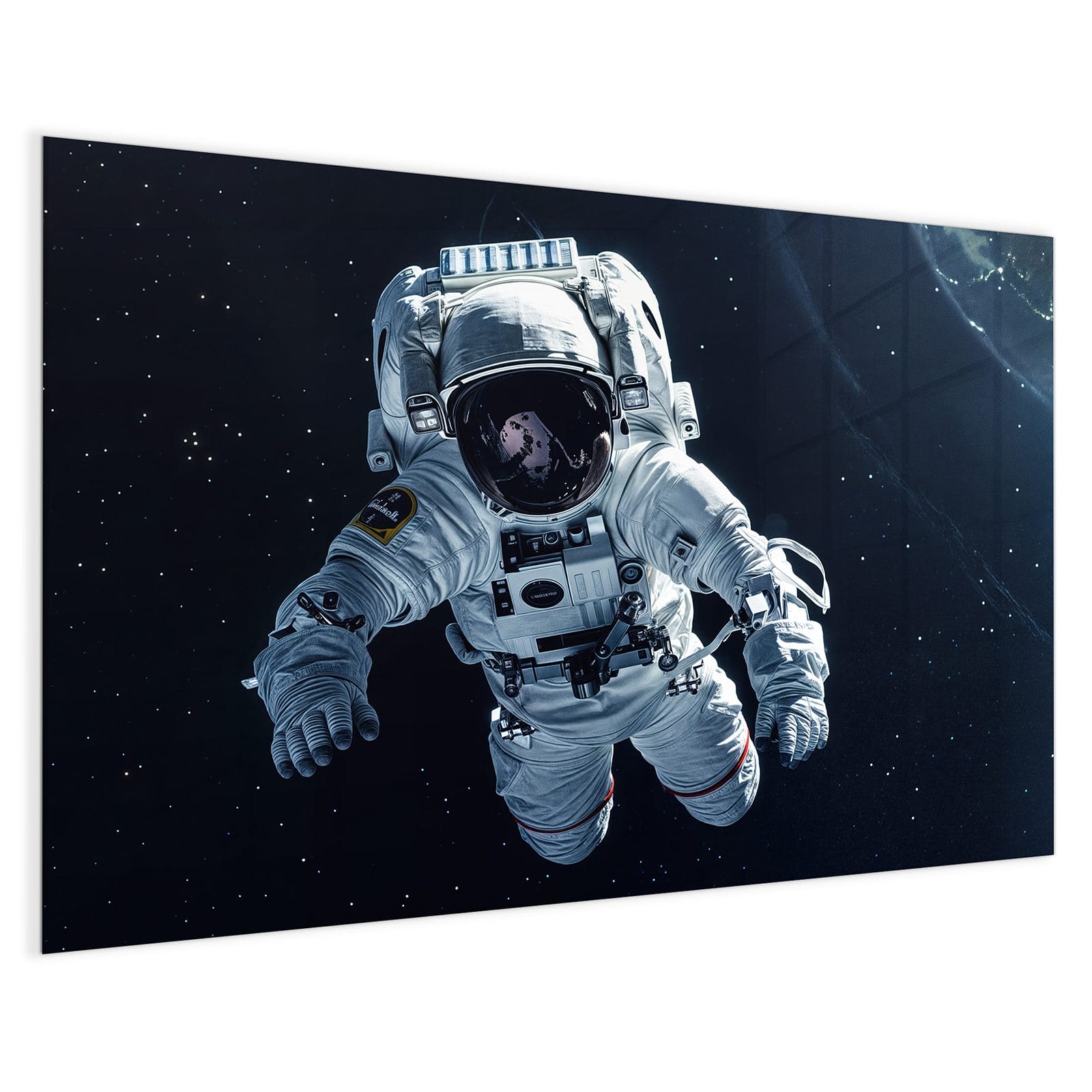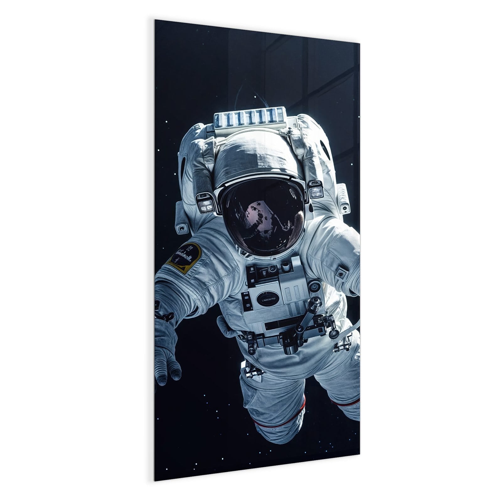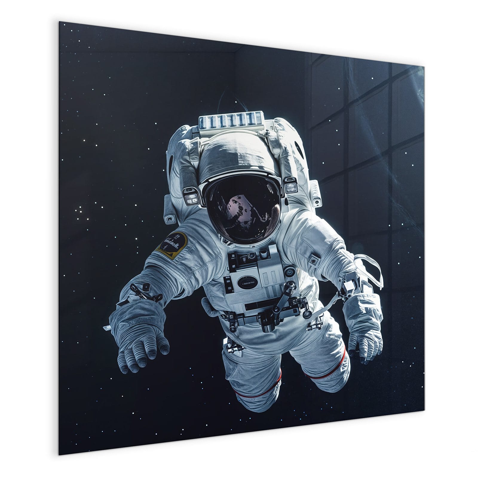 Mit einer Dicke von 4 mm besteht die Tafel aus gehärtetem Einscheibensicherheitsglas (ESG), das robust, kratzfest und UV-beständig ist. Das Motiv Astronaut im All wird in hoher Auflösung und mit präzisen Details auf das Glas gedruckt, was eine lebendige und dauerhafte Farbbrillanz garantiert. Die polierten Kanten sorgen für ein hochwertiges Erscheinungsbild und minimieren das Verletzungsrisiko.