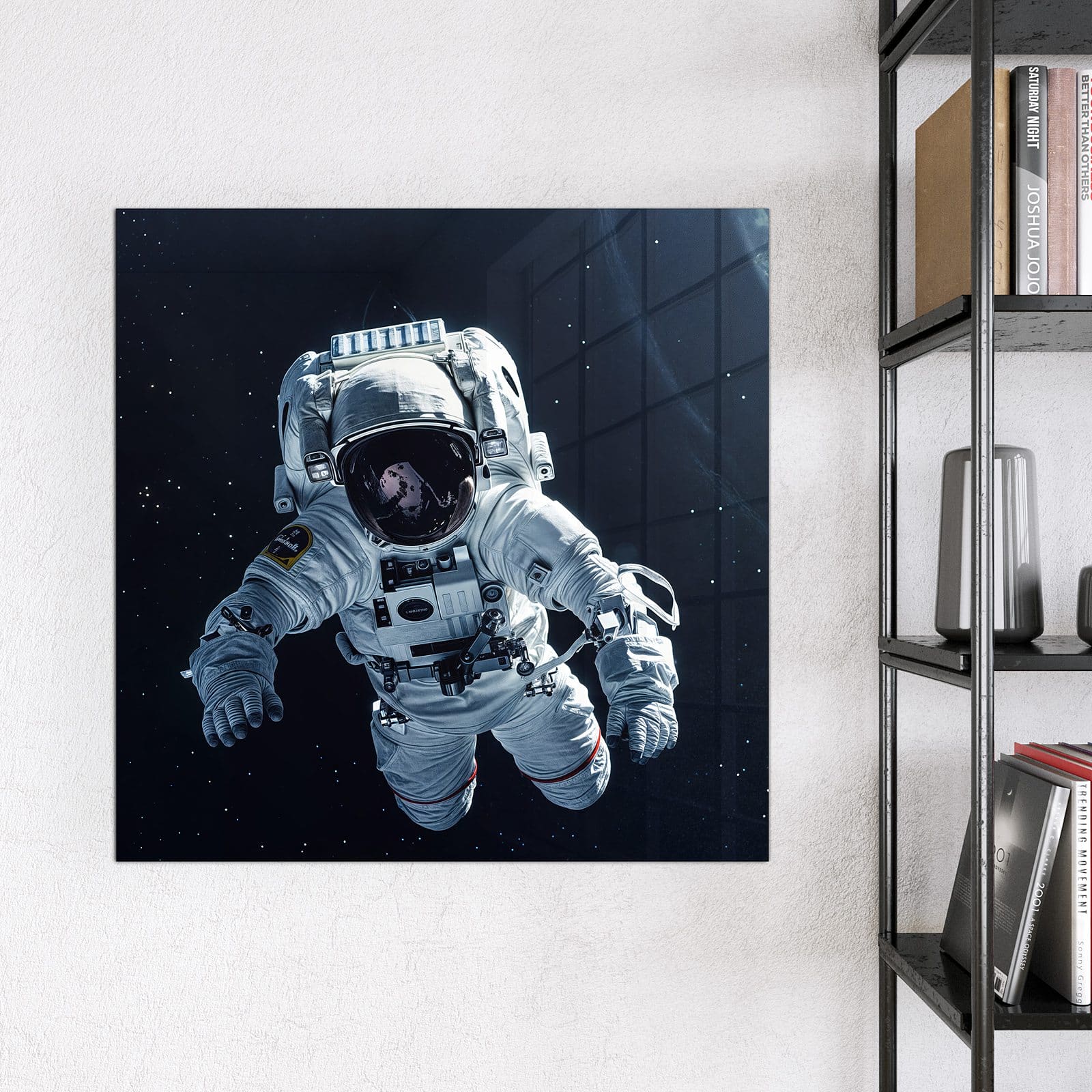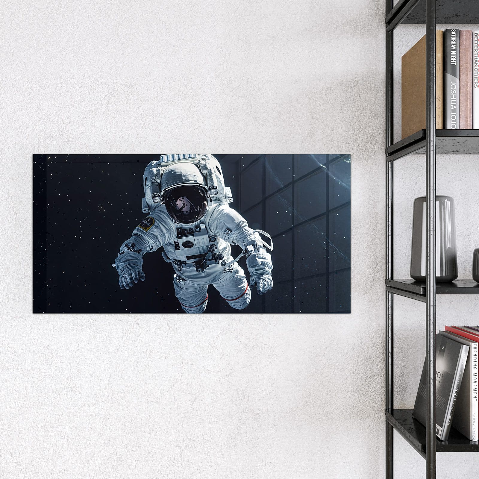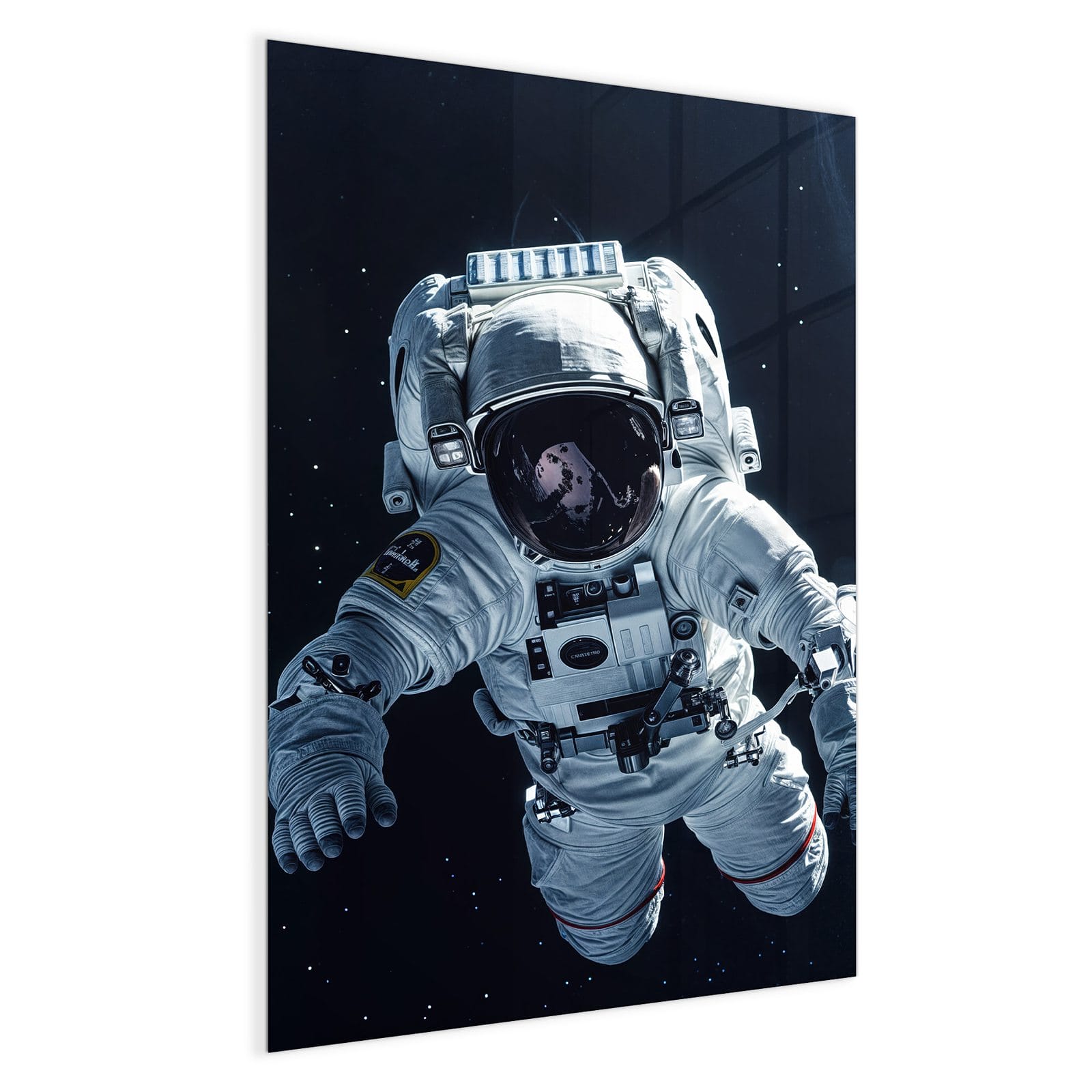 Mit einer Dicke von 4 mm besteht die Tafel aus gehärtetem Einscheibensicherheitsglas (ESG), das robust, kratzfest und UV-beständig ist. Das Motiv Astronaut im All wird in hoher Auflösung und mit präzisen Details auf das Glas gedruckt, was eine lebendige und dauerhafte Farbbrillanz garantiert. Die polierten Kanten sorgen für ein hochwertiges Erscheinungsbild und minimieren das Verletzungsrisiko.