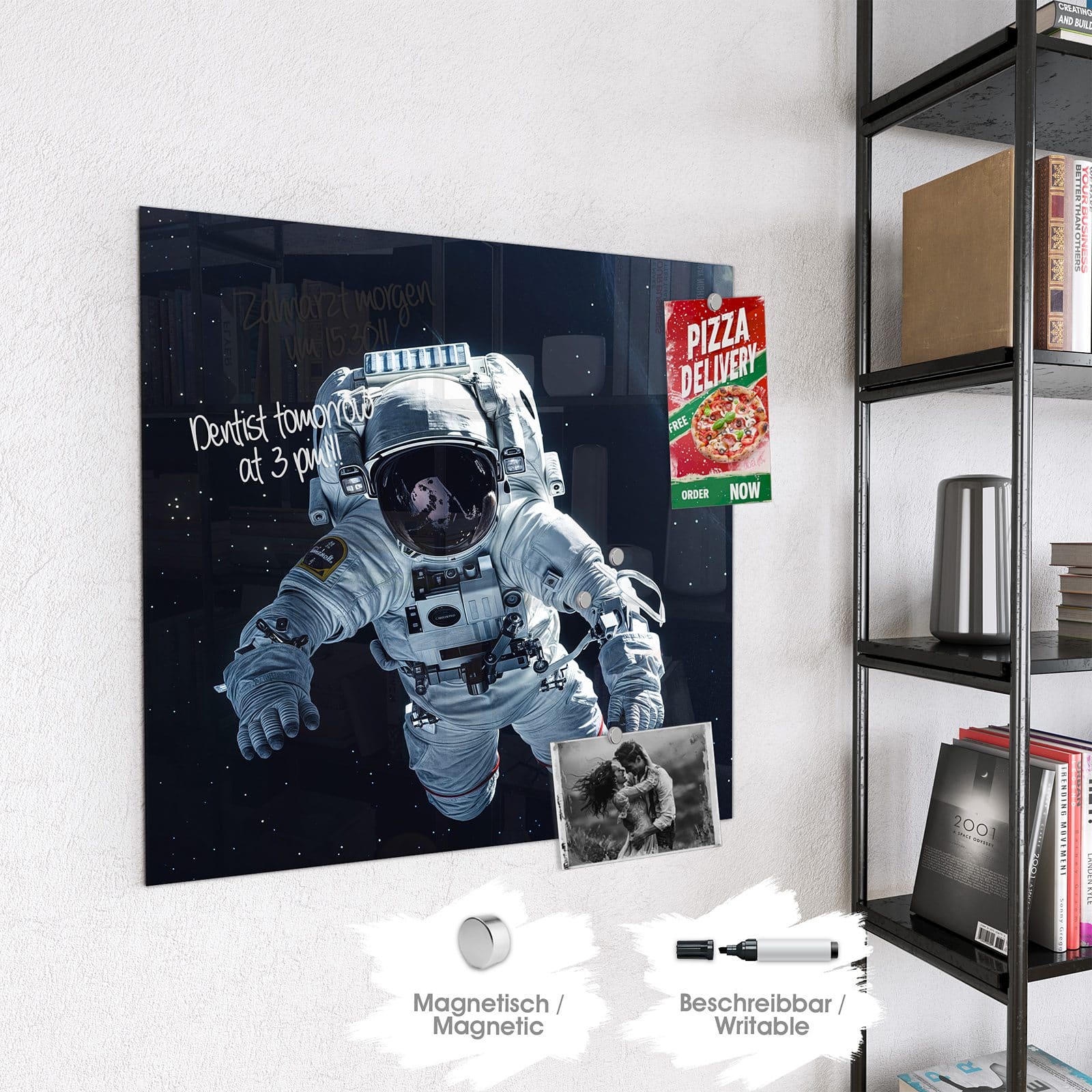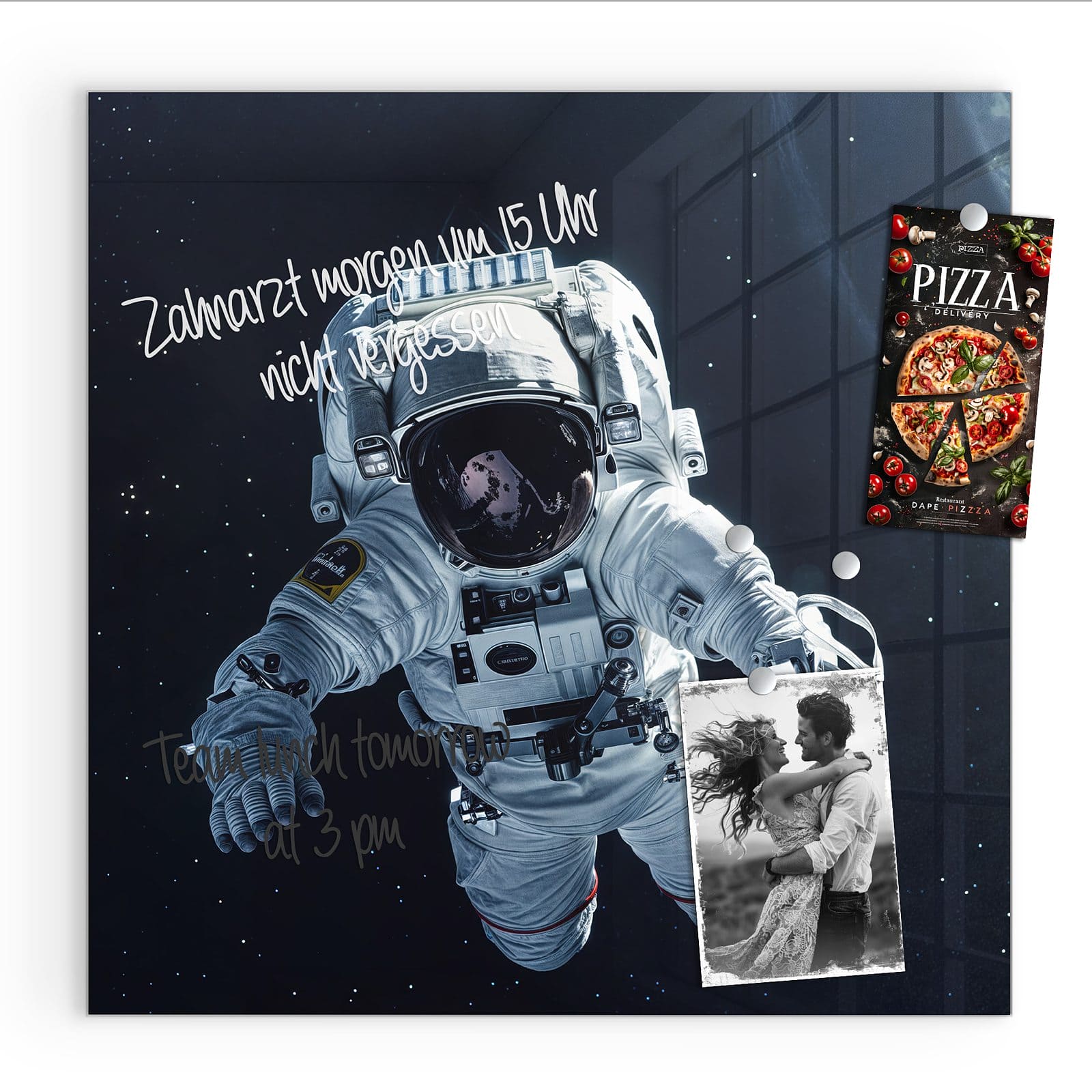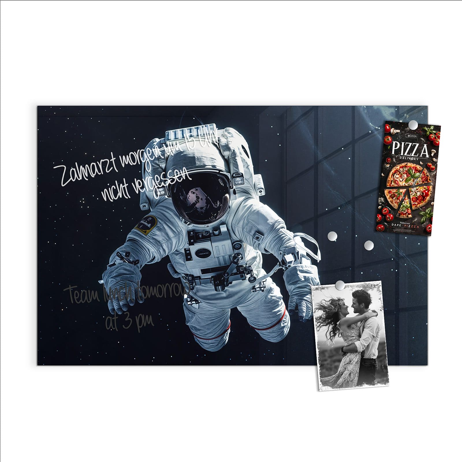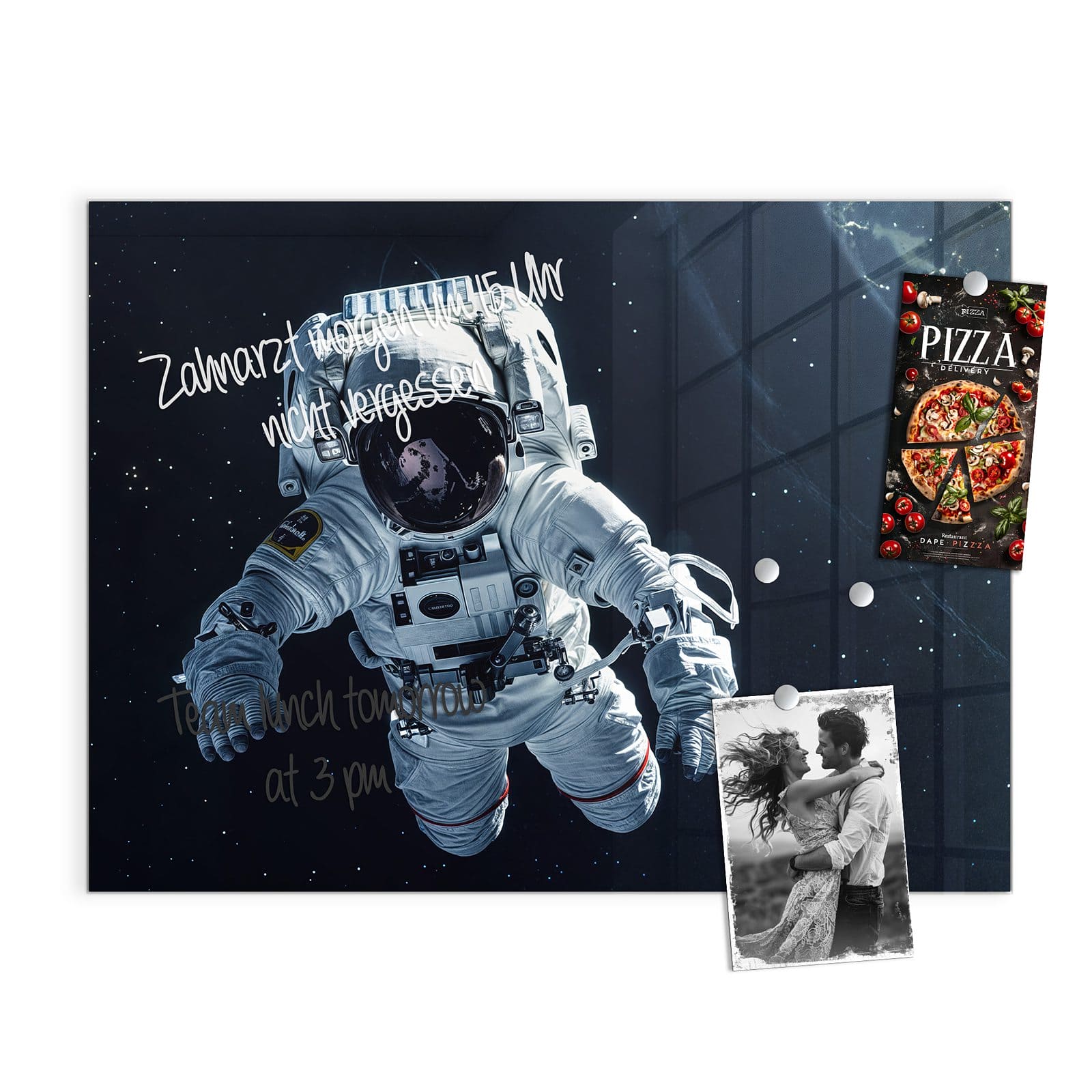 Stilvolle Glas-Magnettafel für Ihr Zuhause - Motiv Astronaut im All