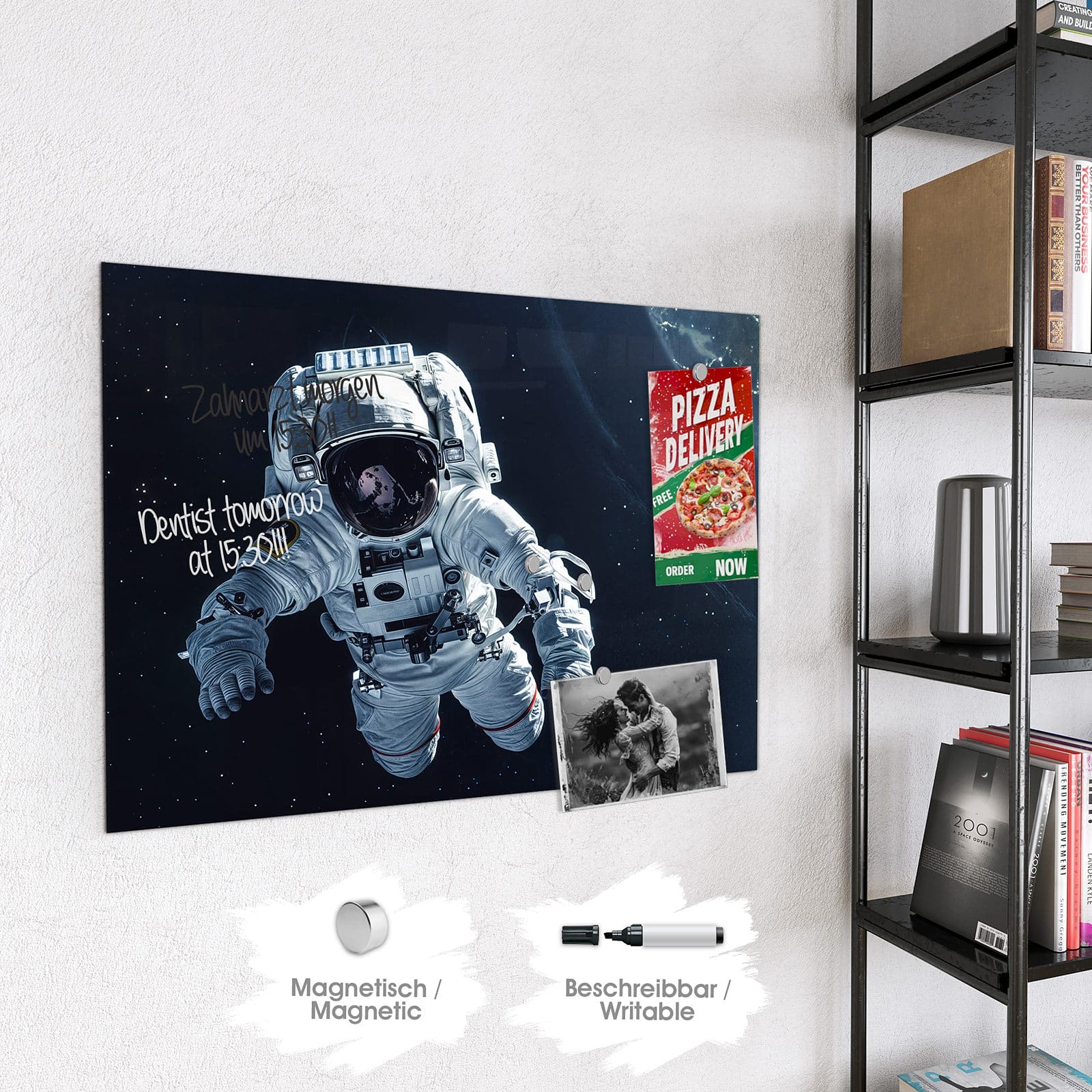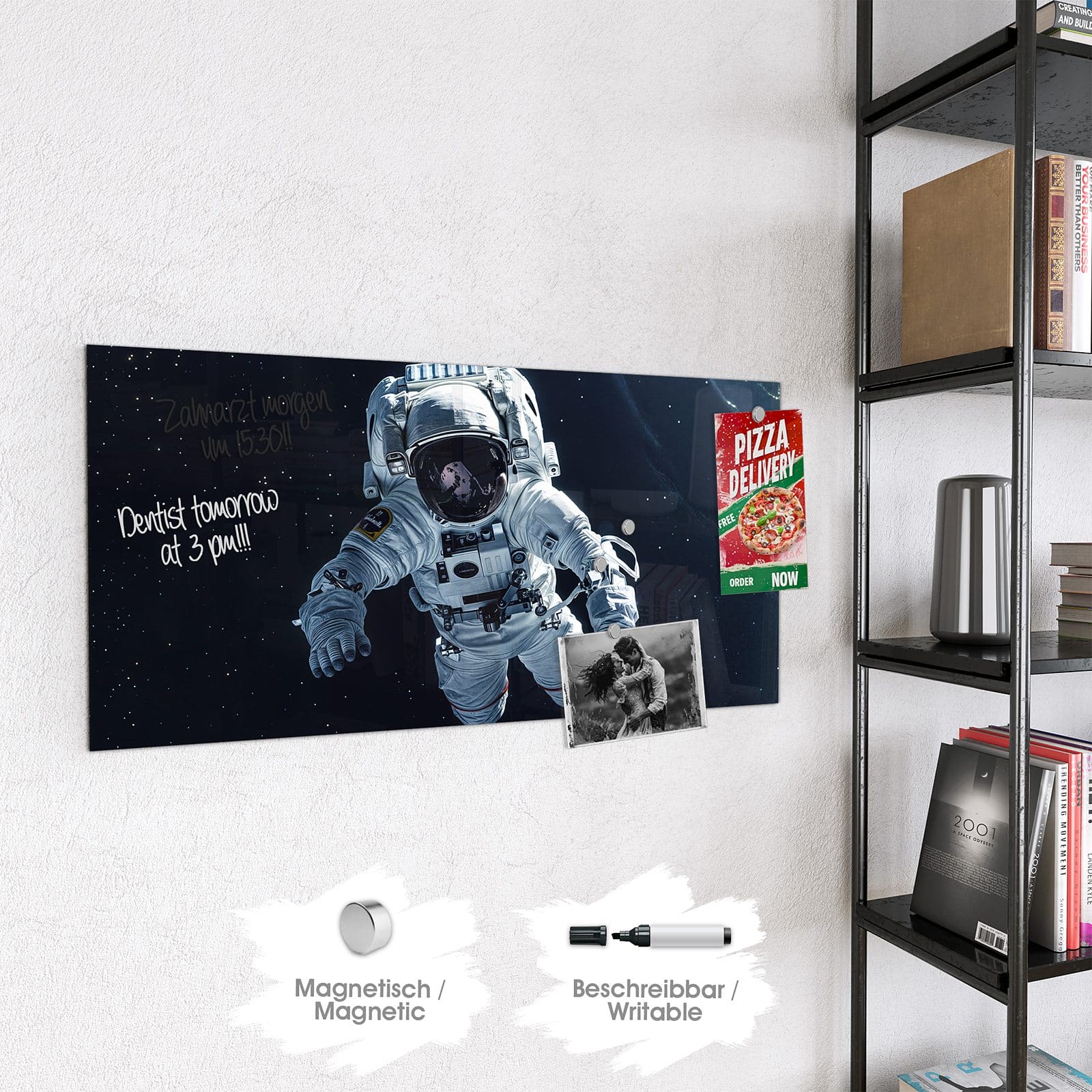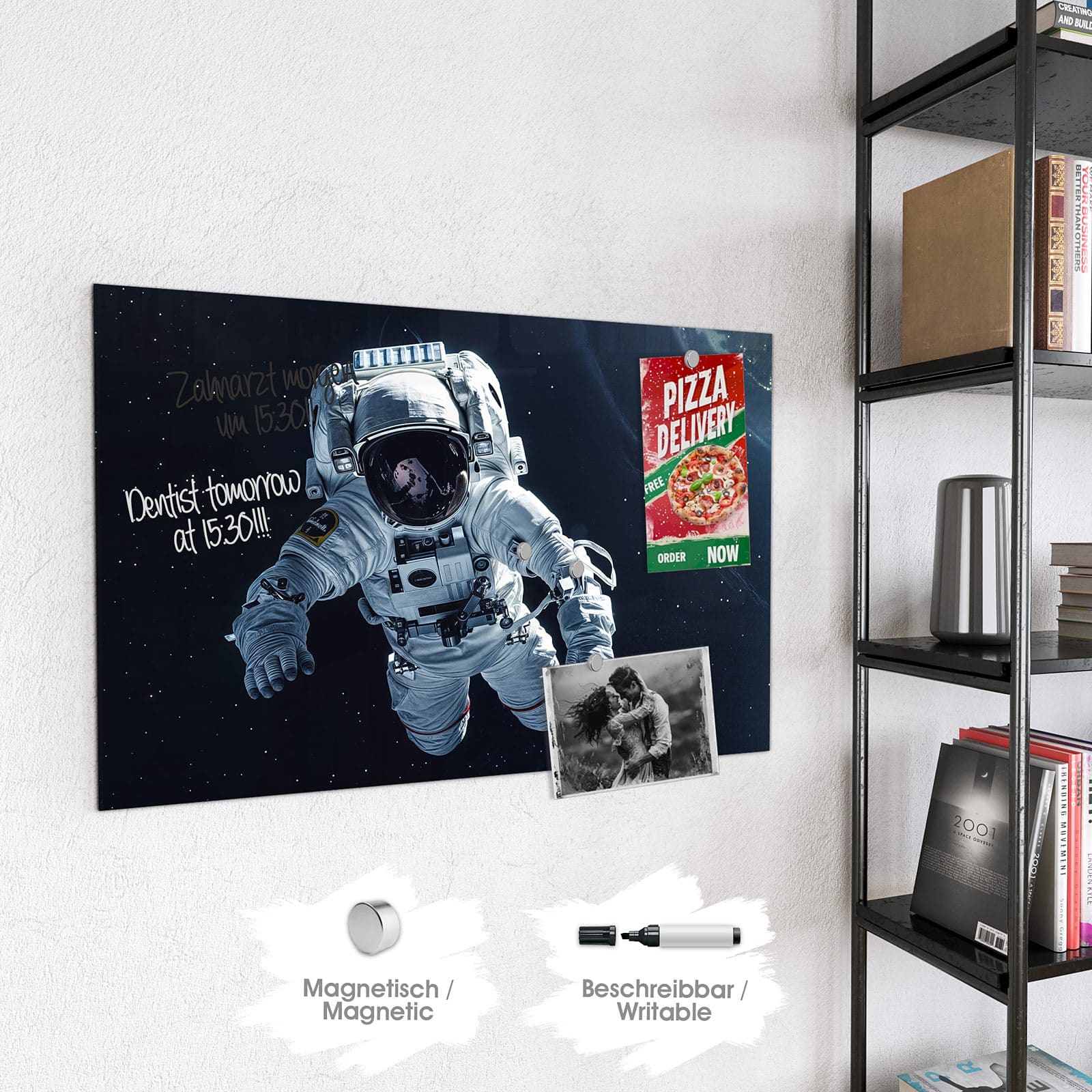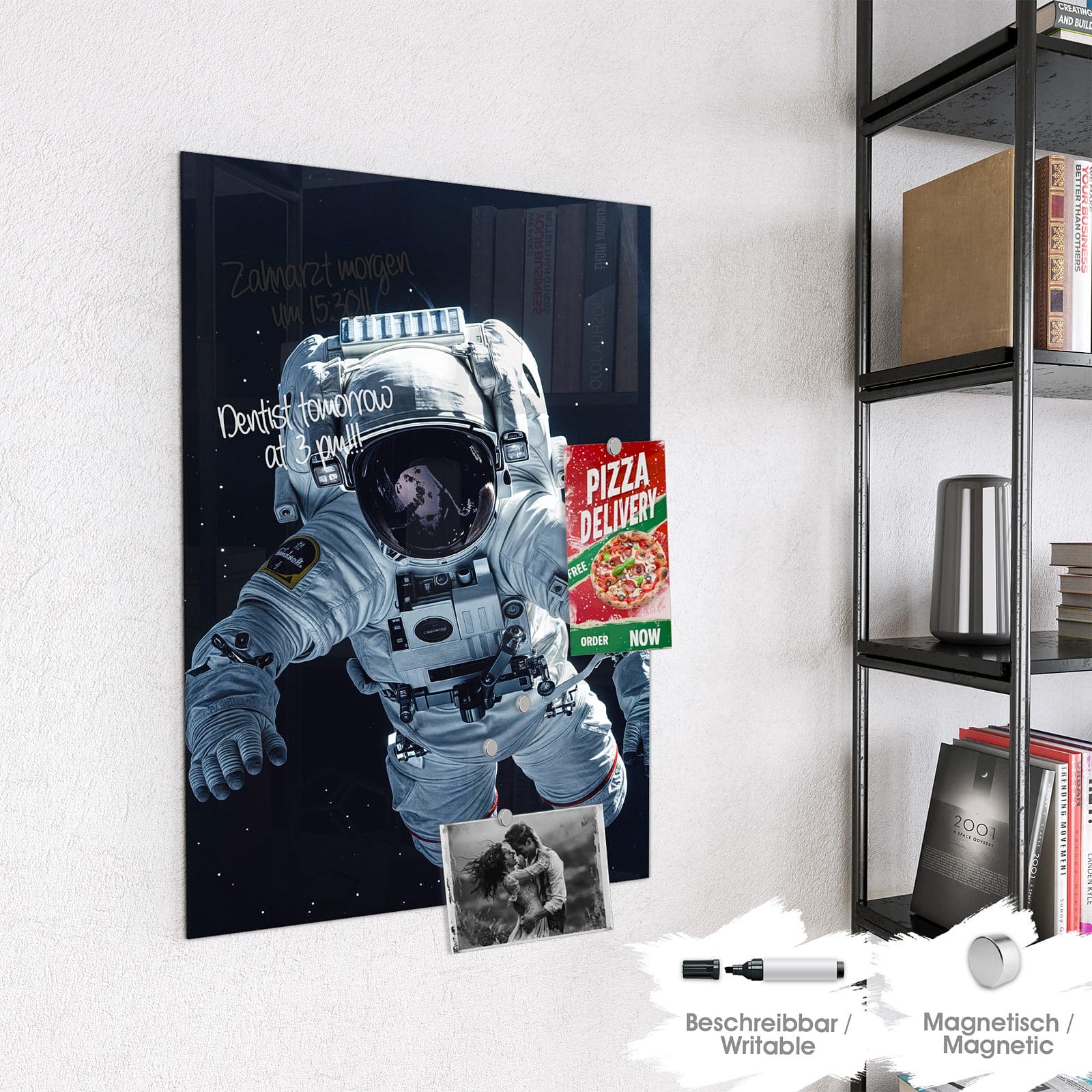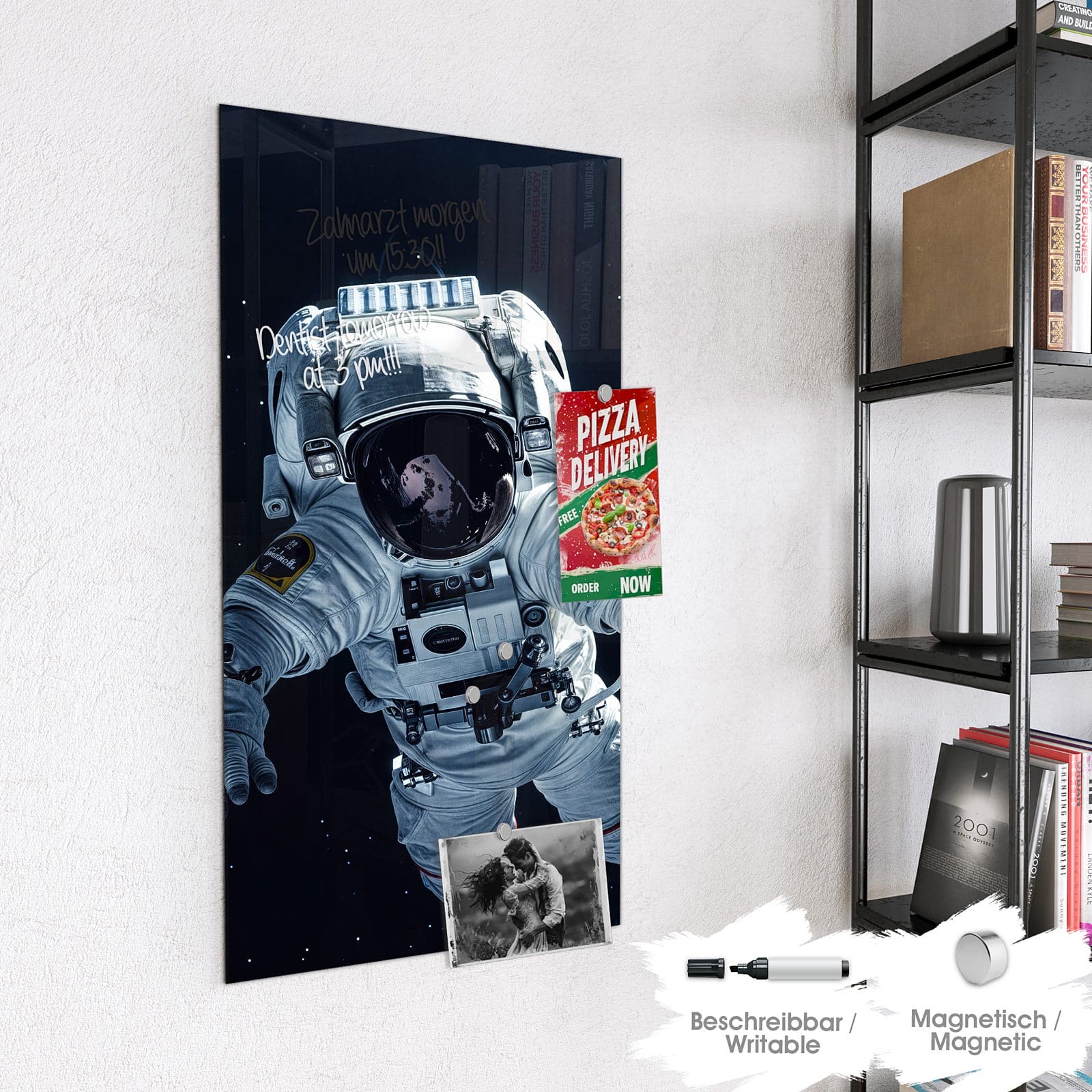 Stilvolle Glas-Magnettafel für Ihr Zuhause - Motiv Astronaut im All
