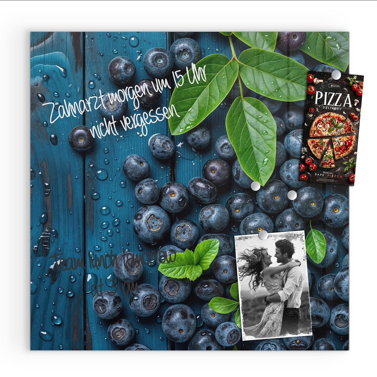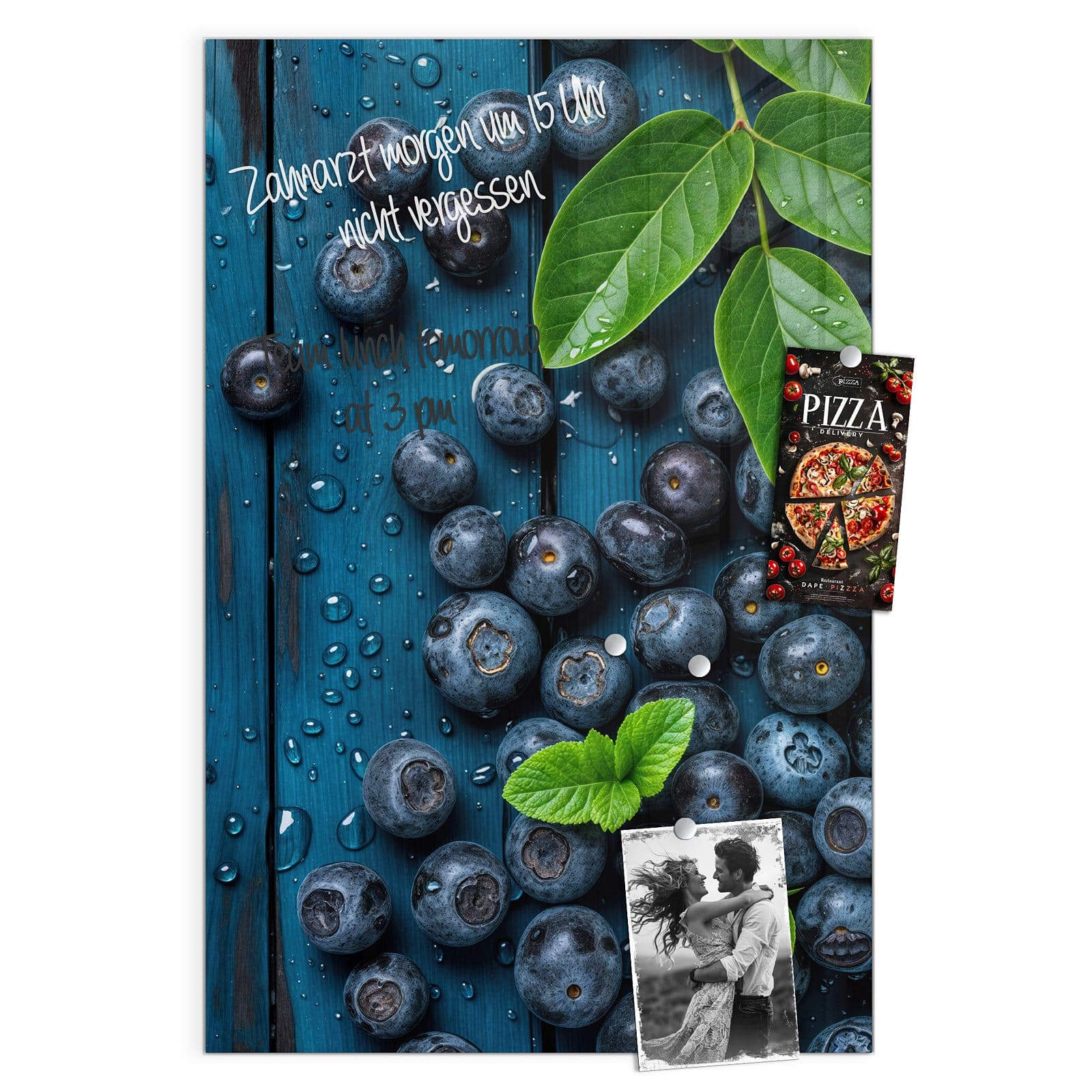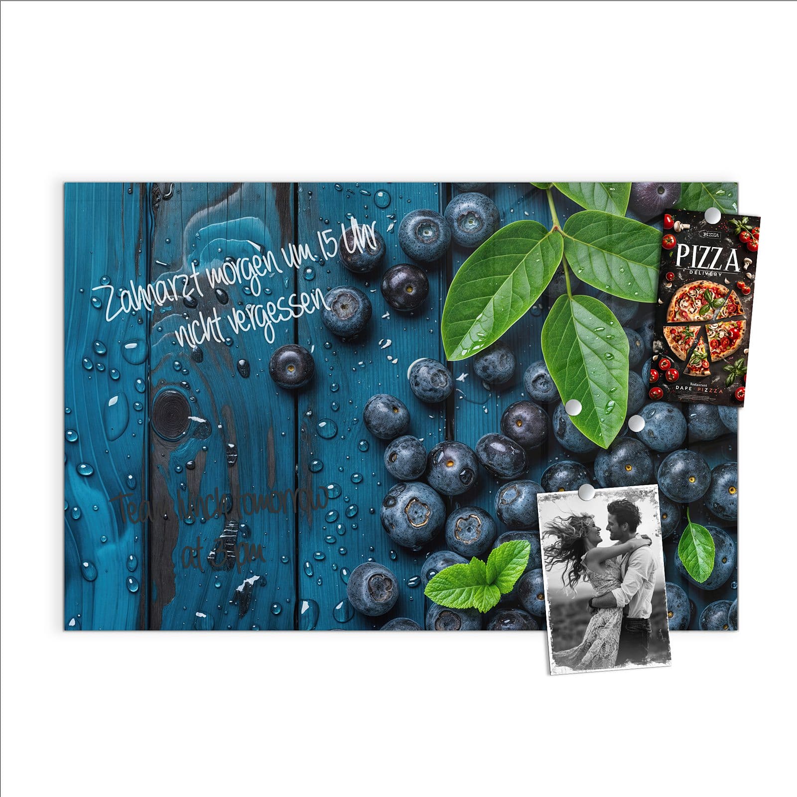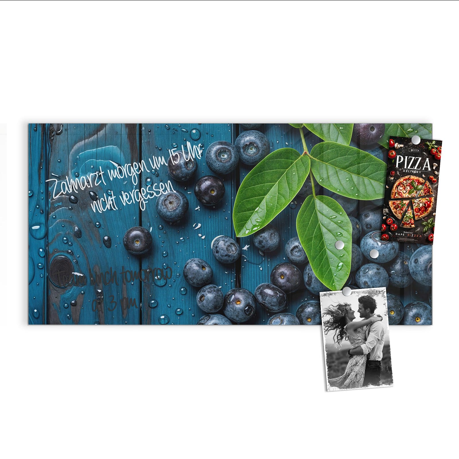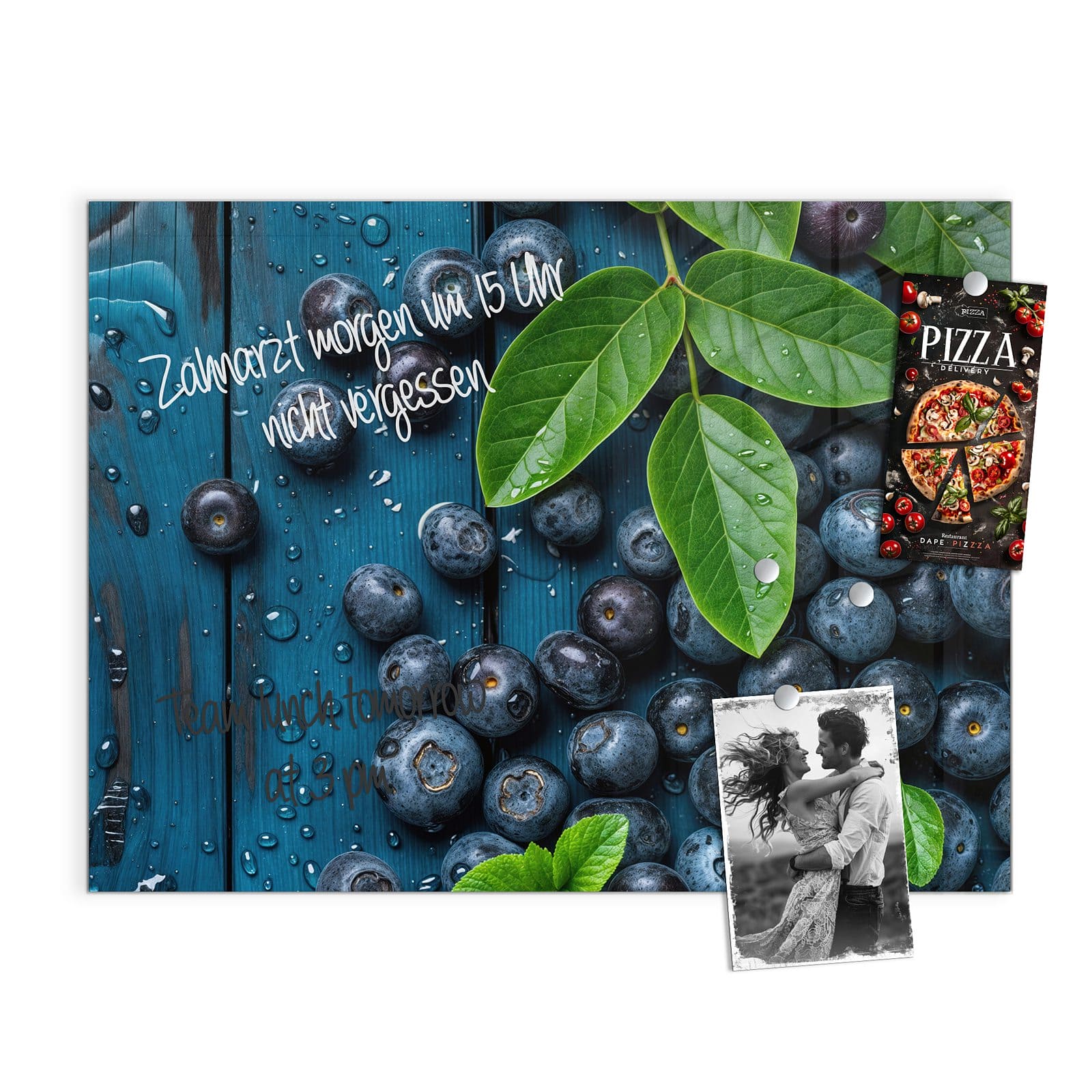 Stilvolle Glas-Magnettafel für Ihr Zuhause - Motiv Blaubeeren auf Holz