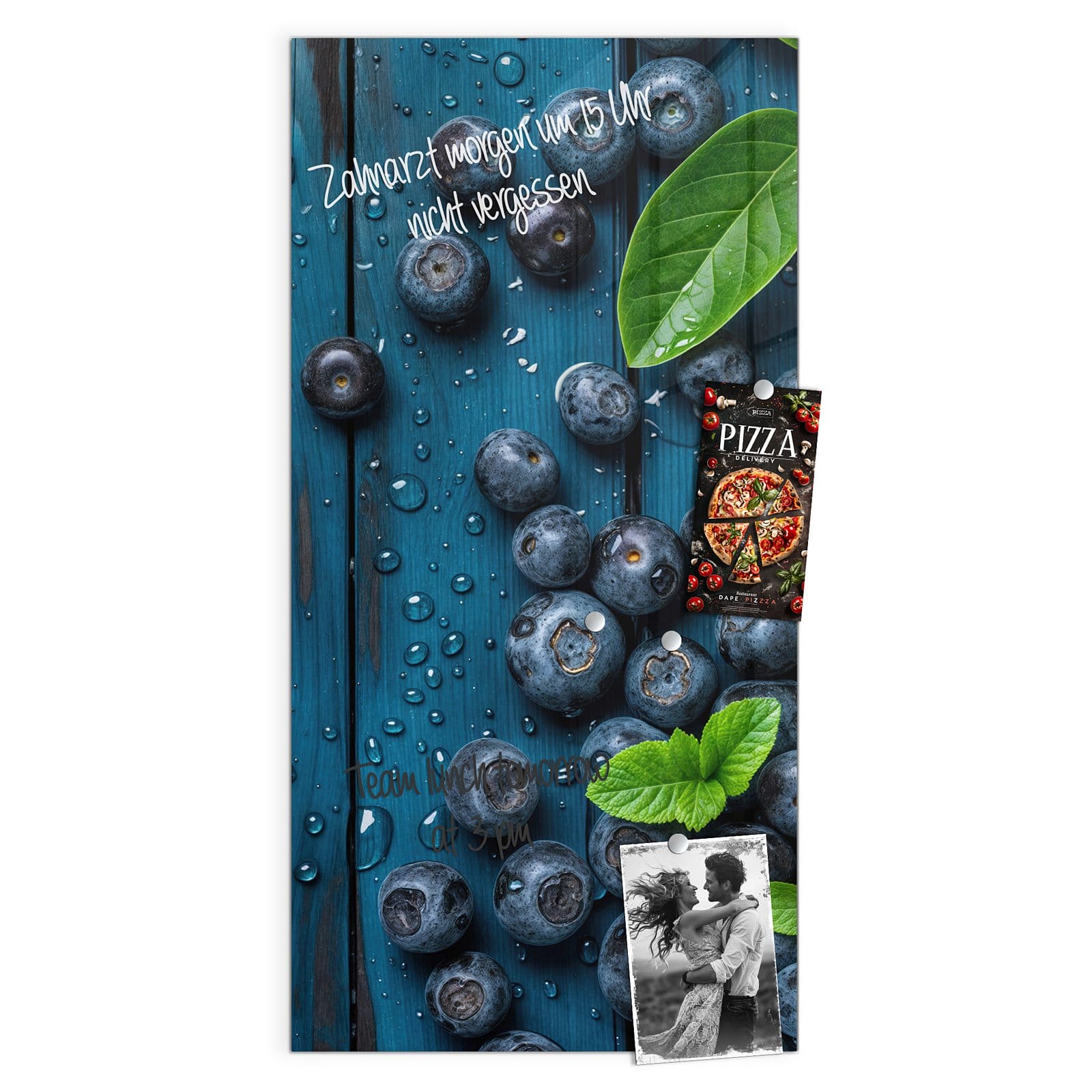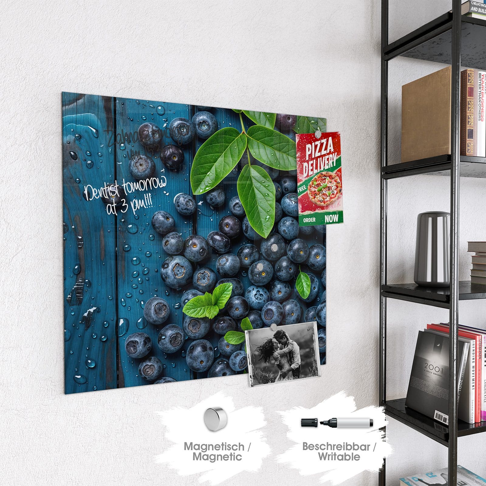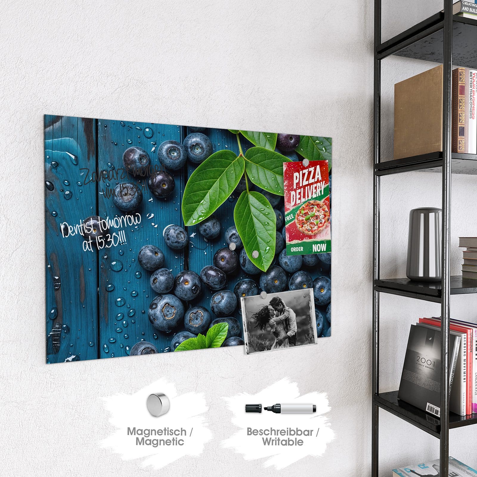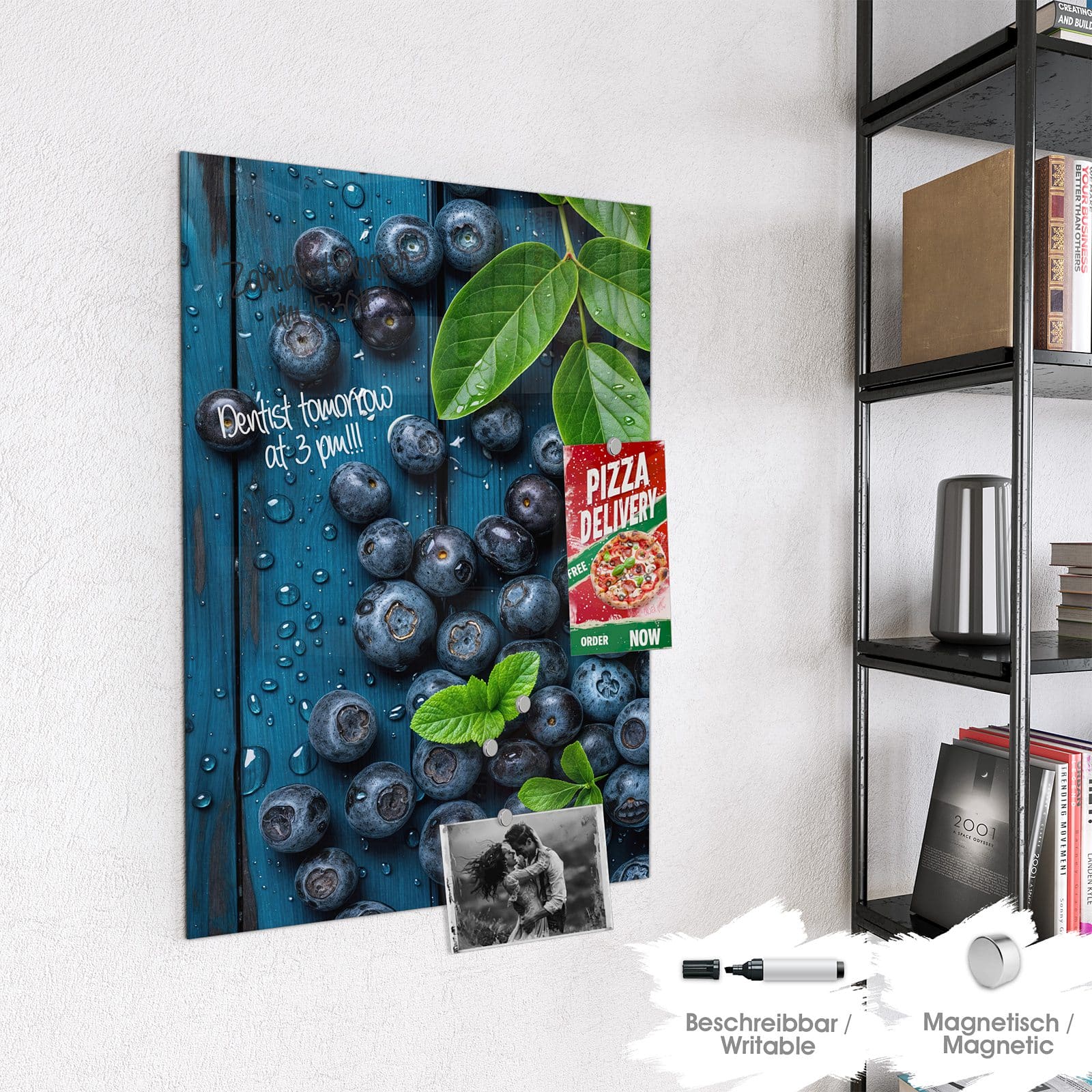 Stilvolle Glas-Magnettafel für Ihr Zuhause - Motiv Blaubeeren auf Holz