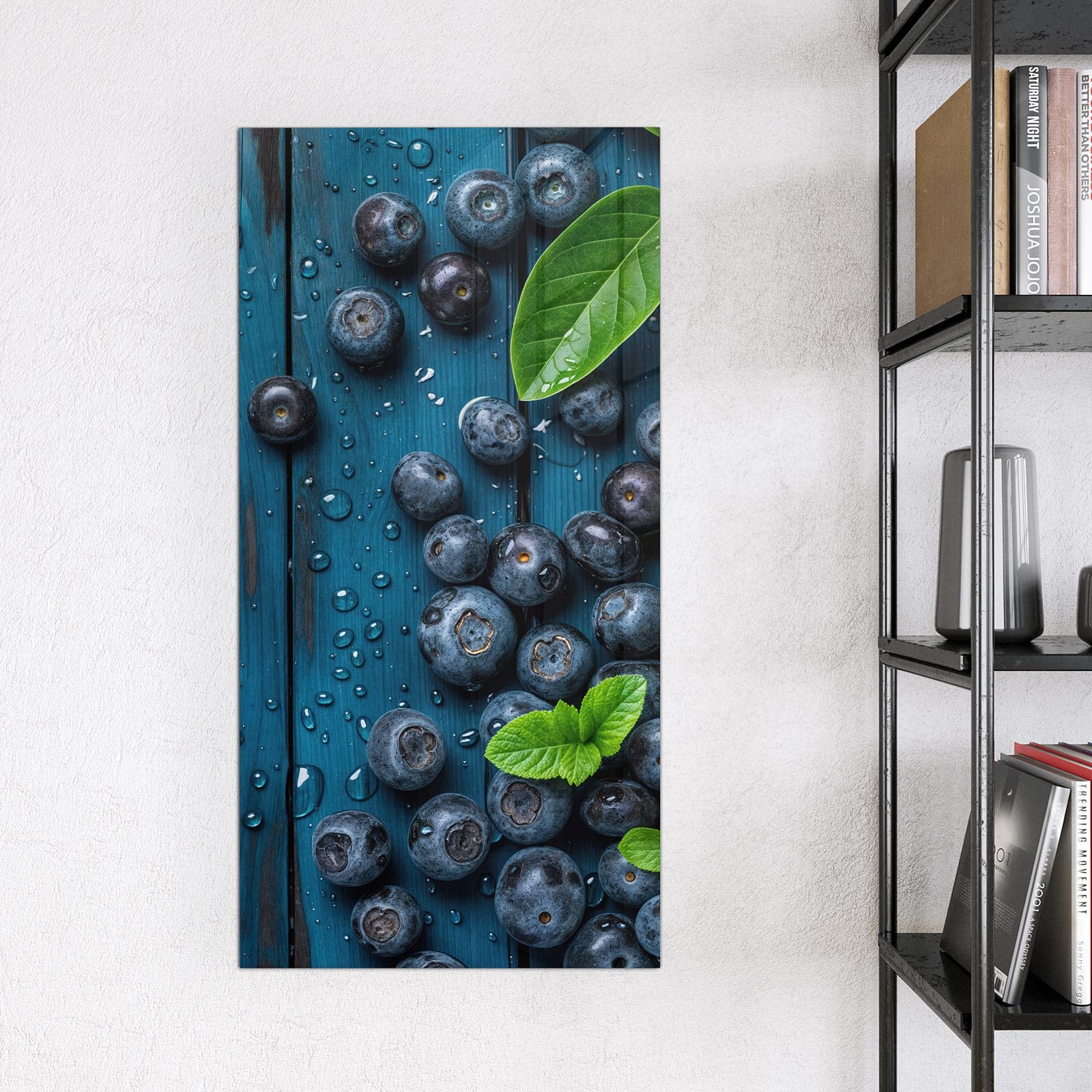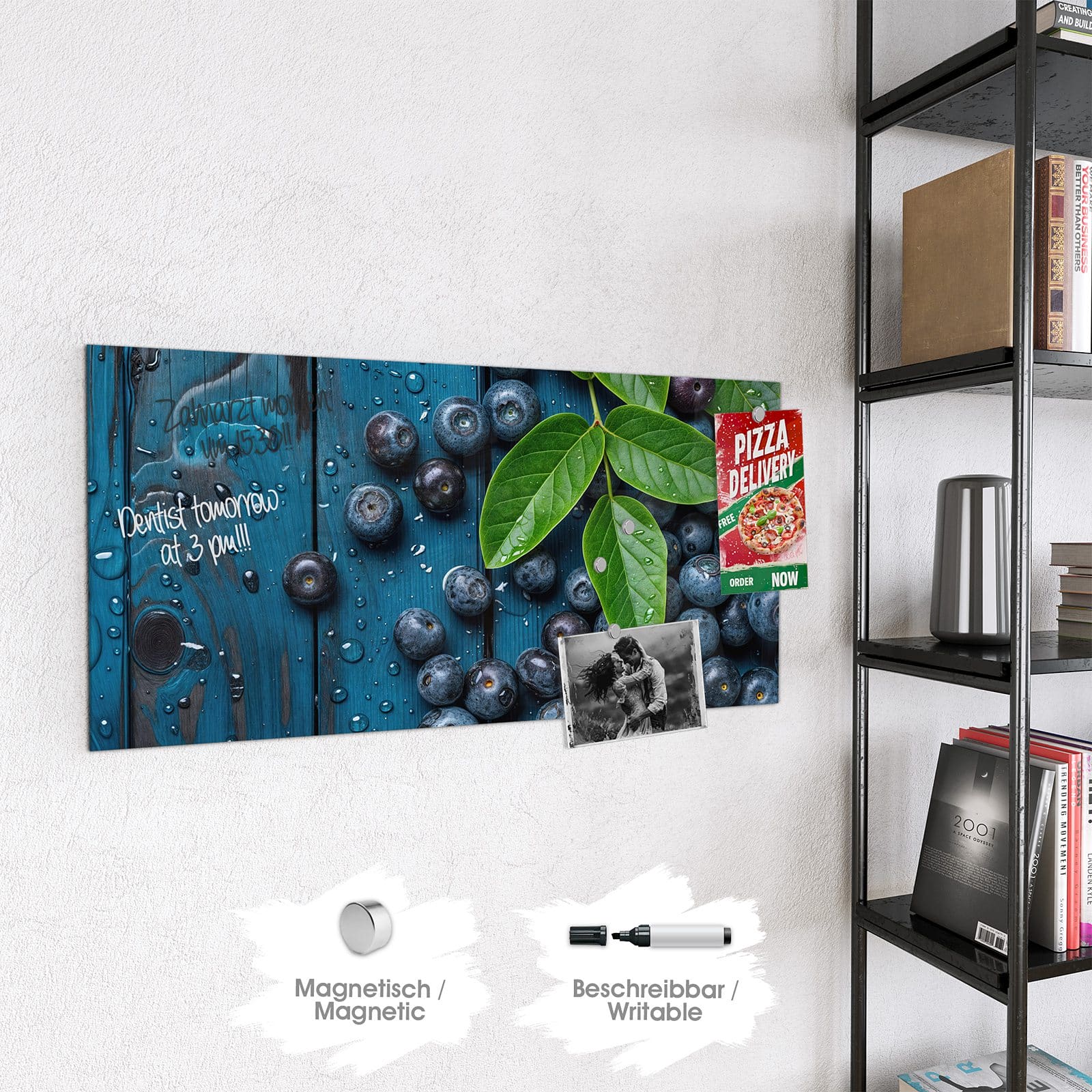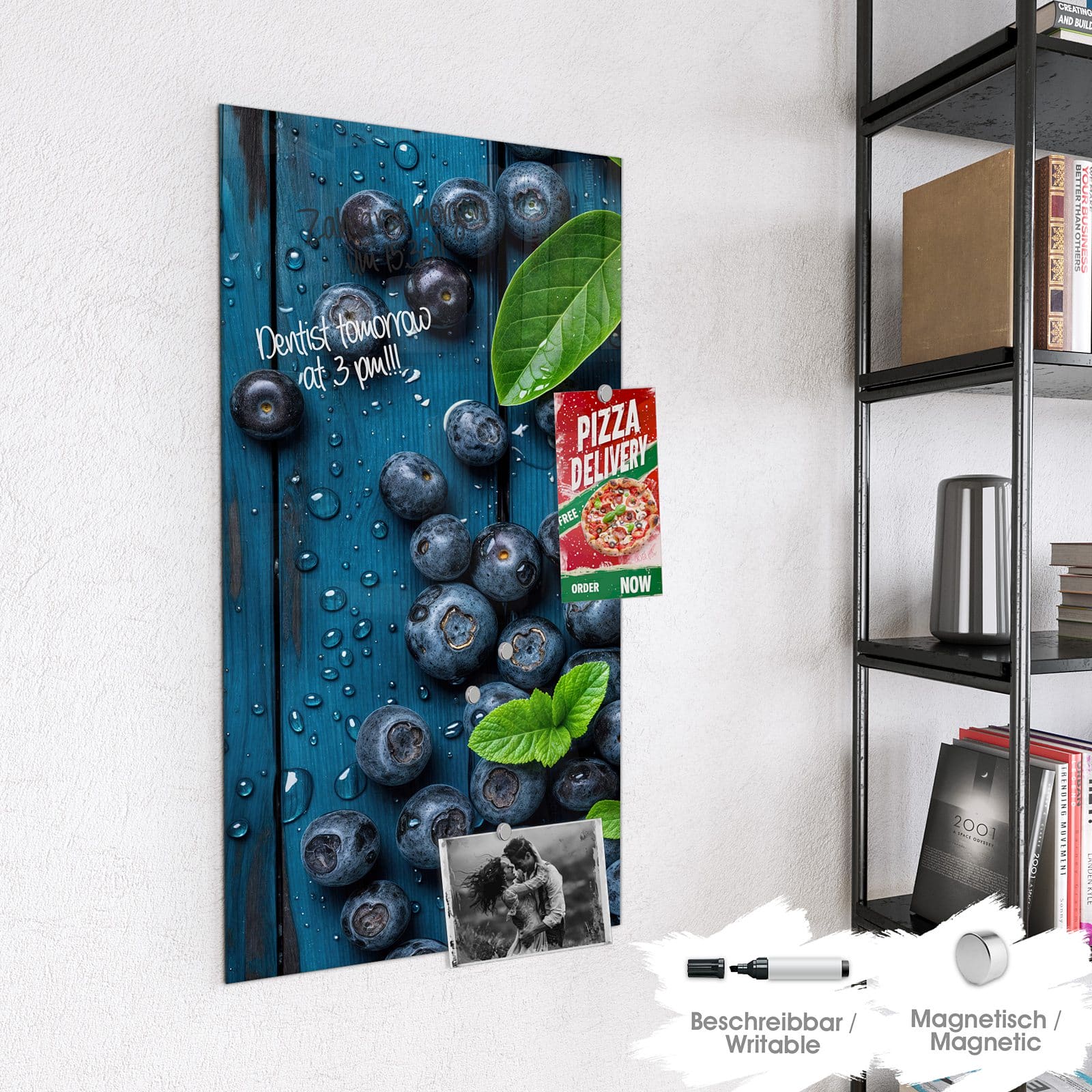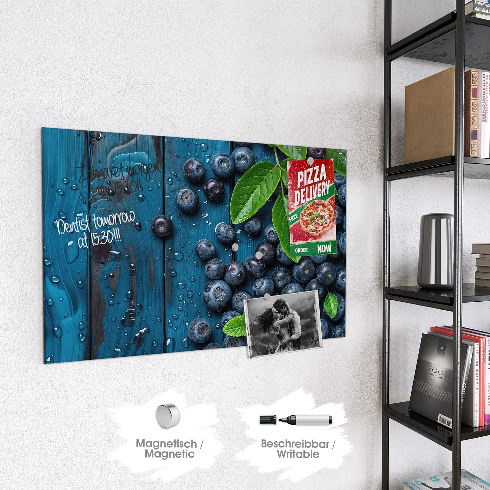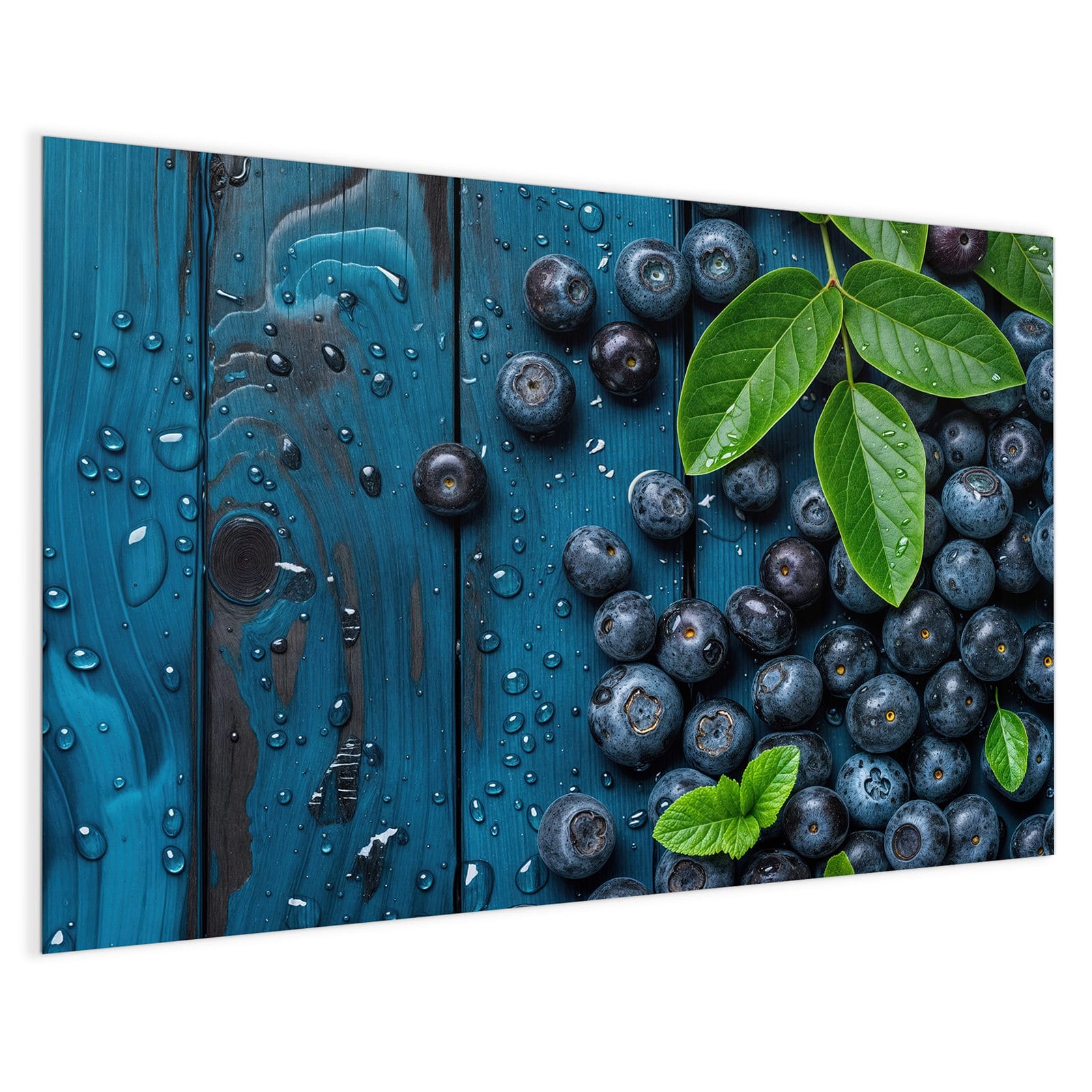 Stilvolle Glas-Magnettafel für Ihr Zuhause - Motiv Blaubeeren auf Holz
