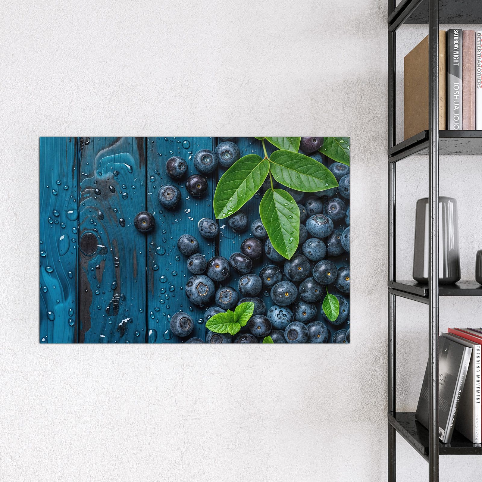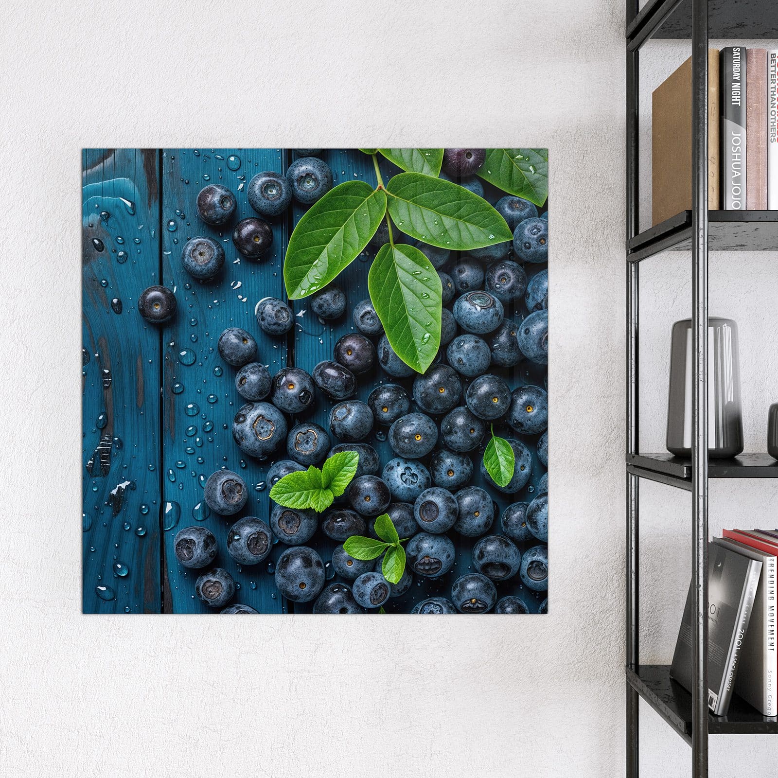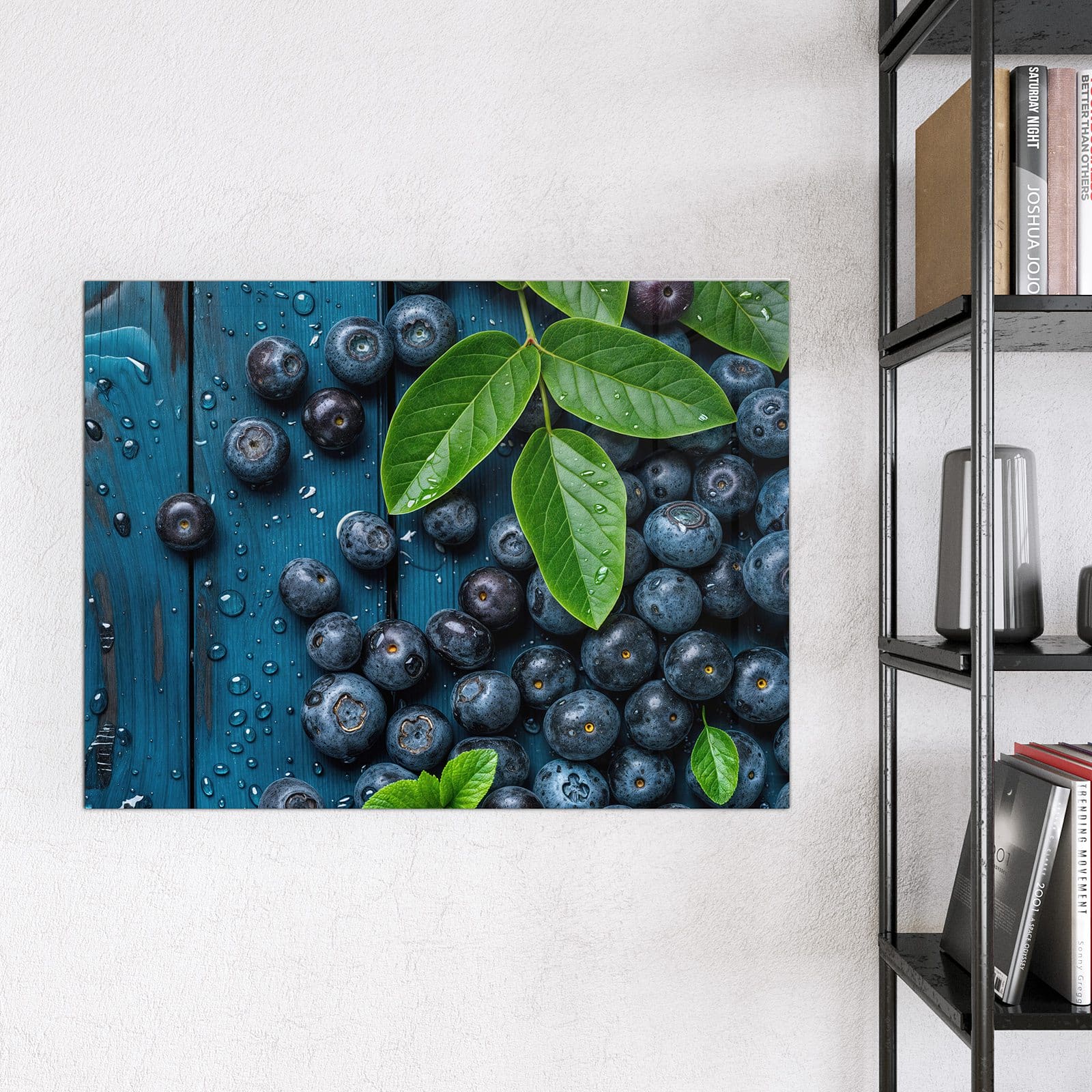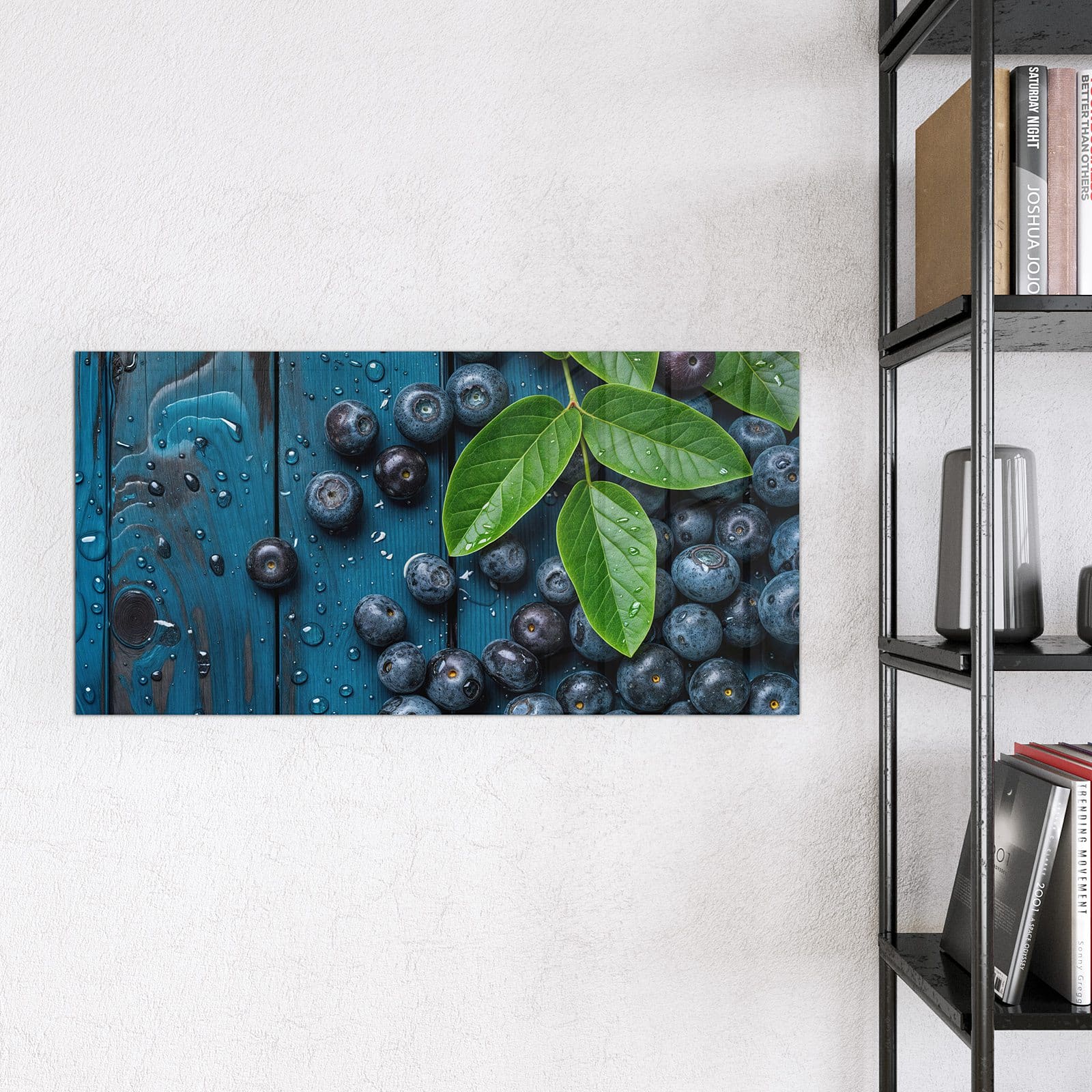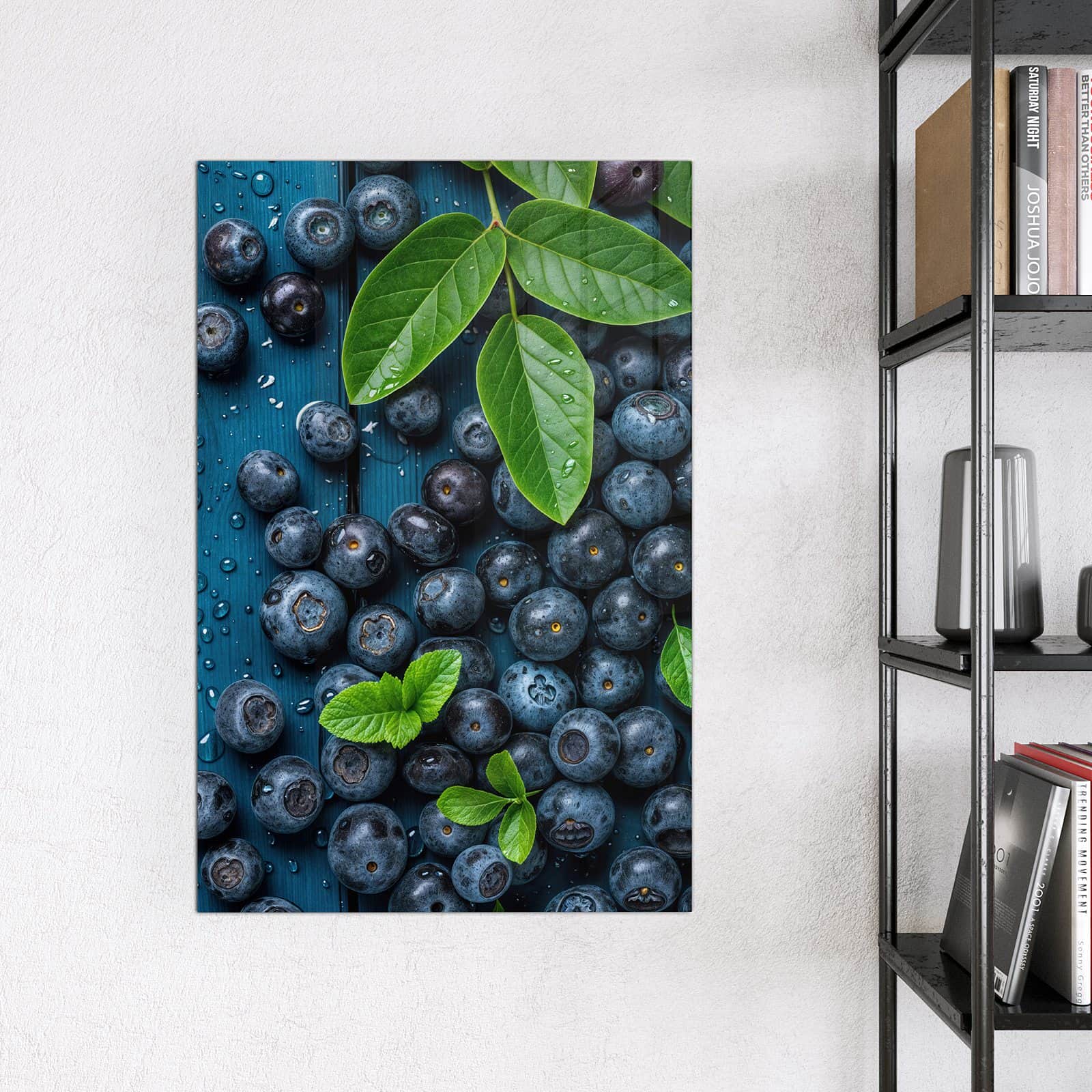 Stilvolle Glas-Magnettafel für Ihr Zuhause - Motiv Blaubeeren auf Holz