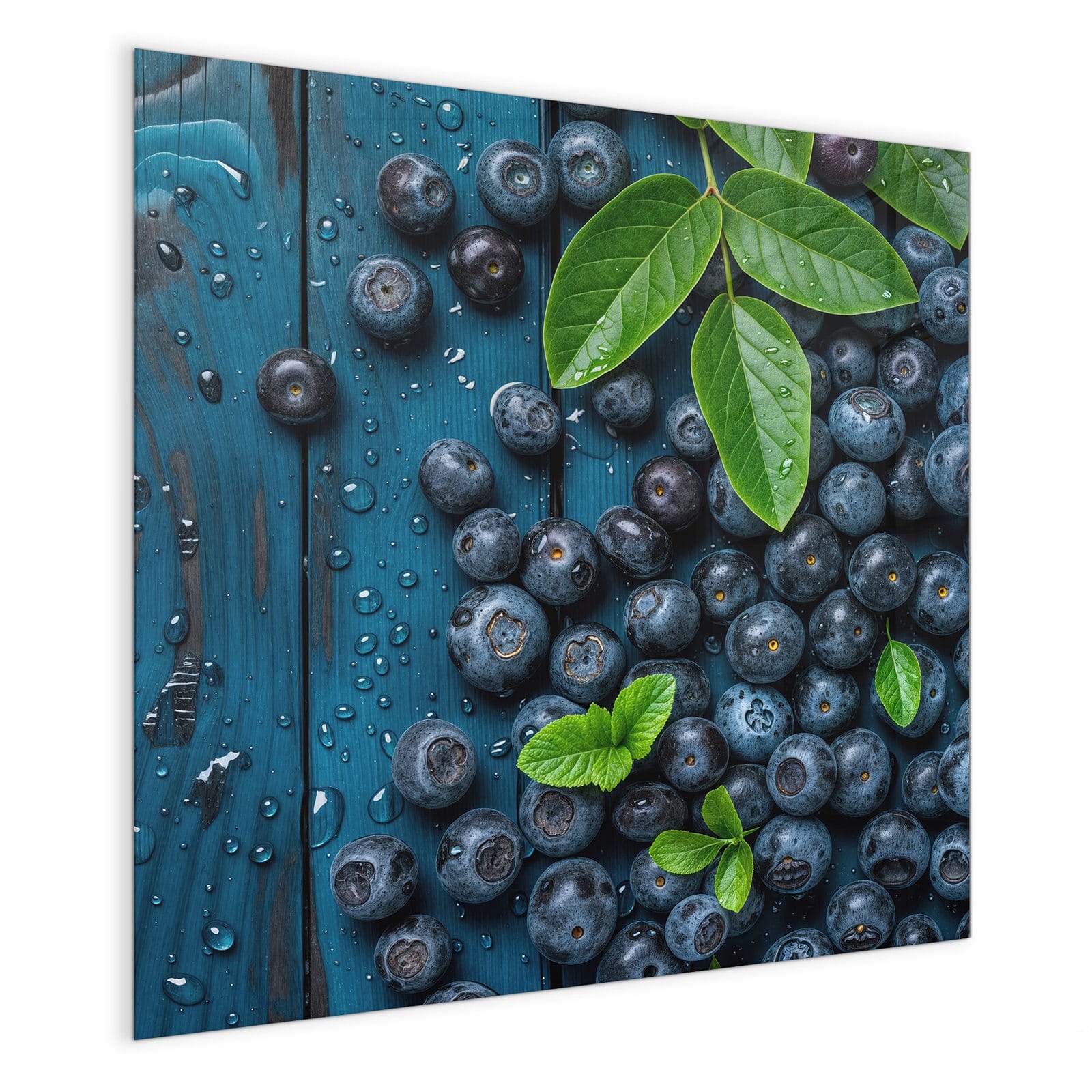 Mit einer Dicke von 4 mm besteht die Tafel aus gehärtetem Einscheibensicherheitsglas (ESG), das robust, kratzfest und UV-beständig ist. Das Motiv Blaubeeren auf Holz wird in hoher Auflösung und mit präzisen Details auf das Glas gedruckt, was eine lebendige und dauerhafte Farbbrillanz garantiert. Die polierten Kanten sorgen für ein hochwertiges Erscheinungsbild und minimieren das Verletzungsrisiko.