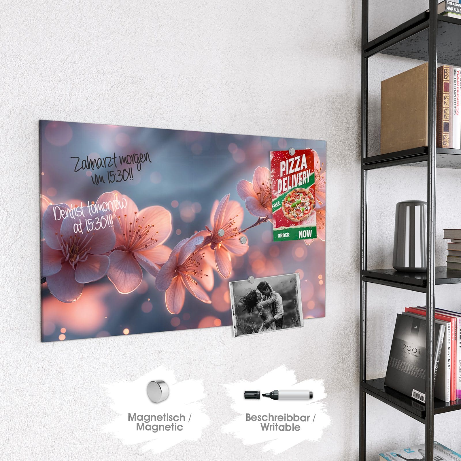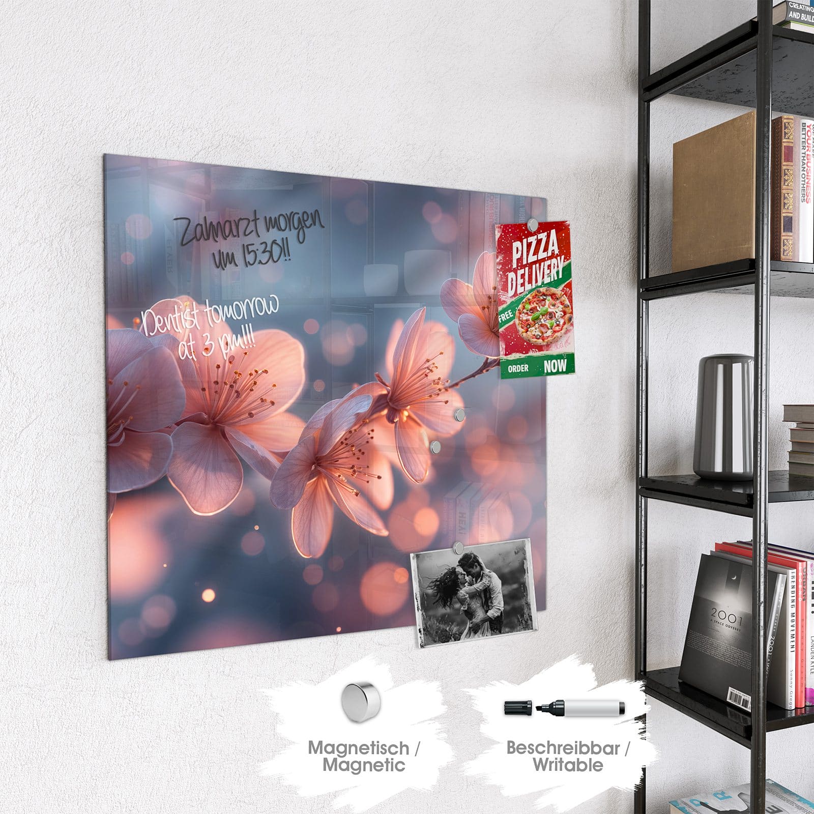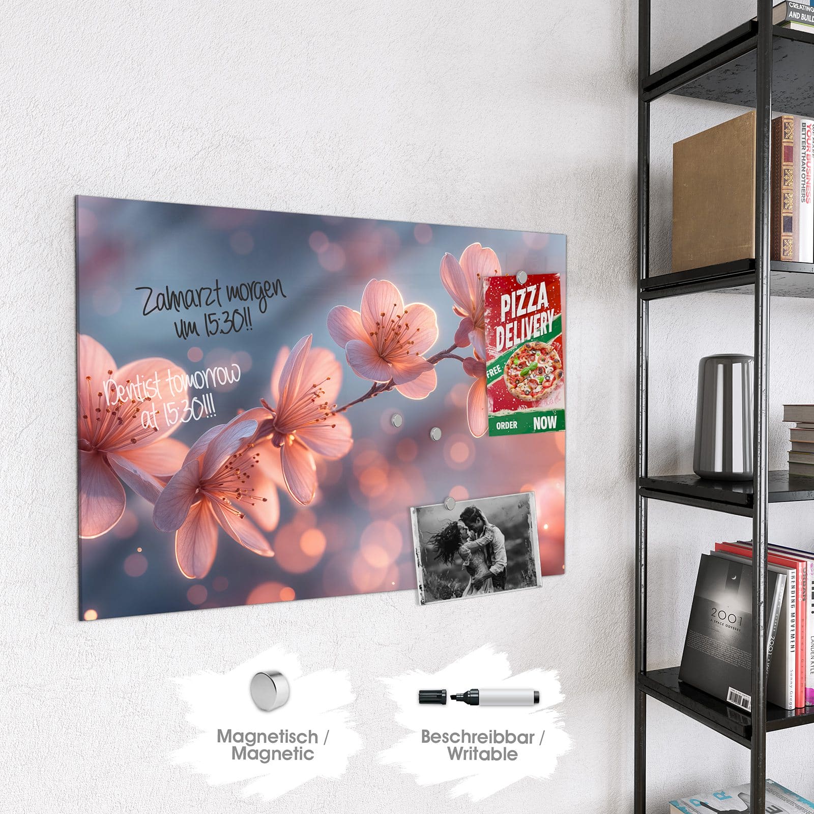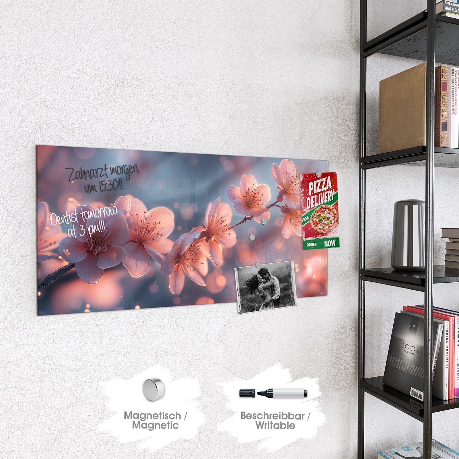Stilvolle Glas-Magnettafel für Ihr Zuhause - Motiv Blühender Zweig