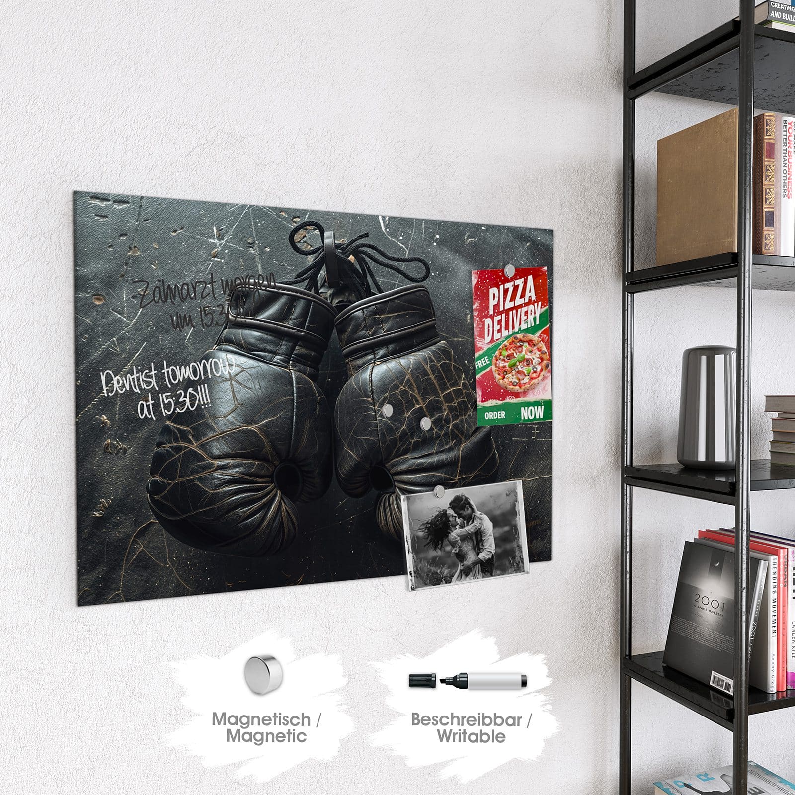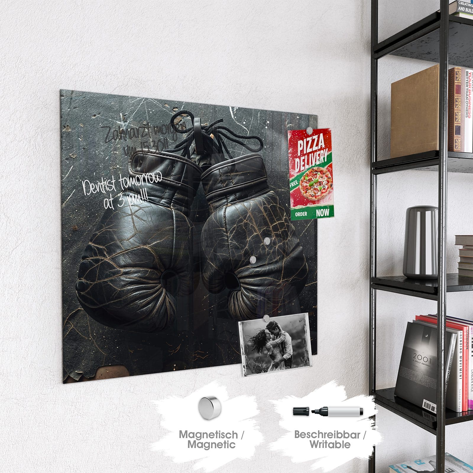 Stilvolle Glas-Magnettafel für Ihr Zuhause - Motiv Boxhandschuhe Vintage
