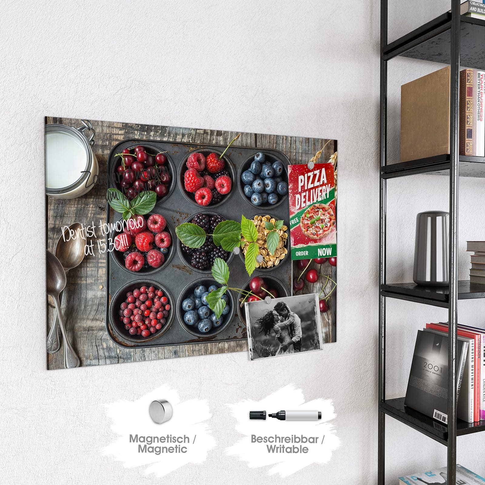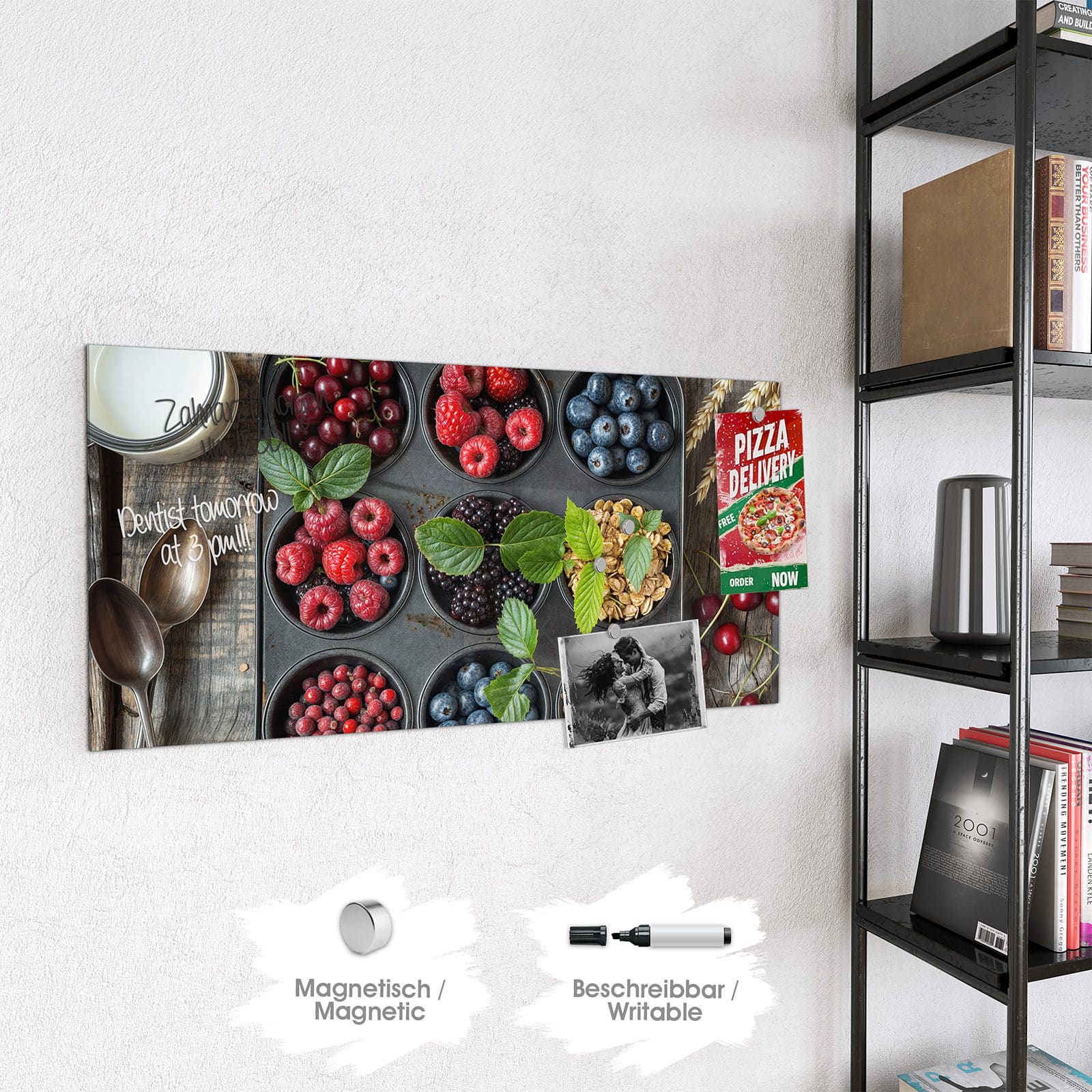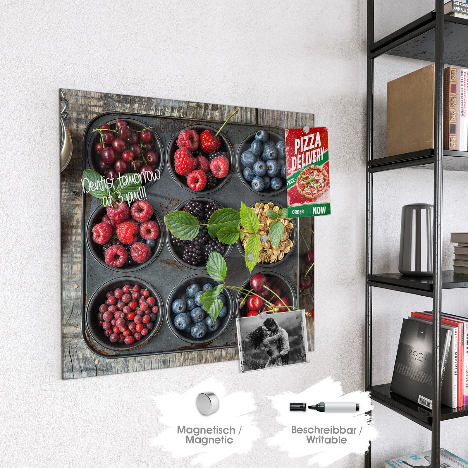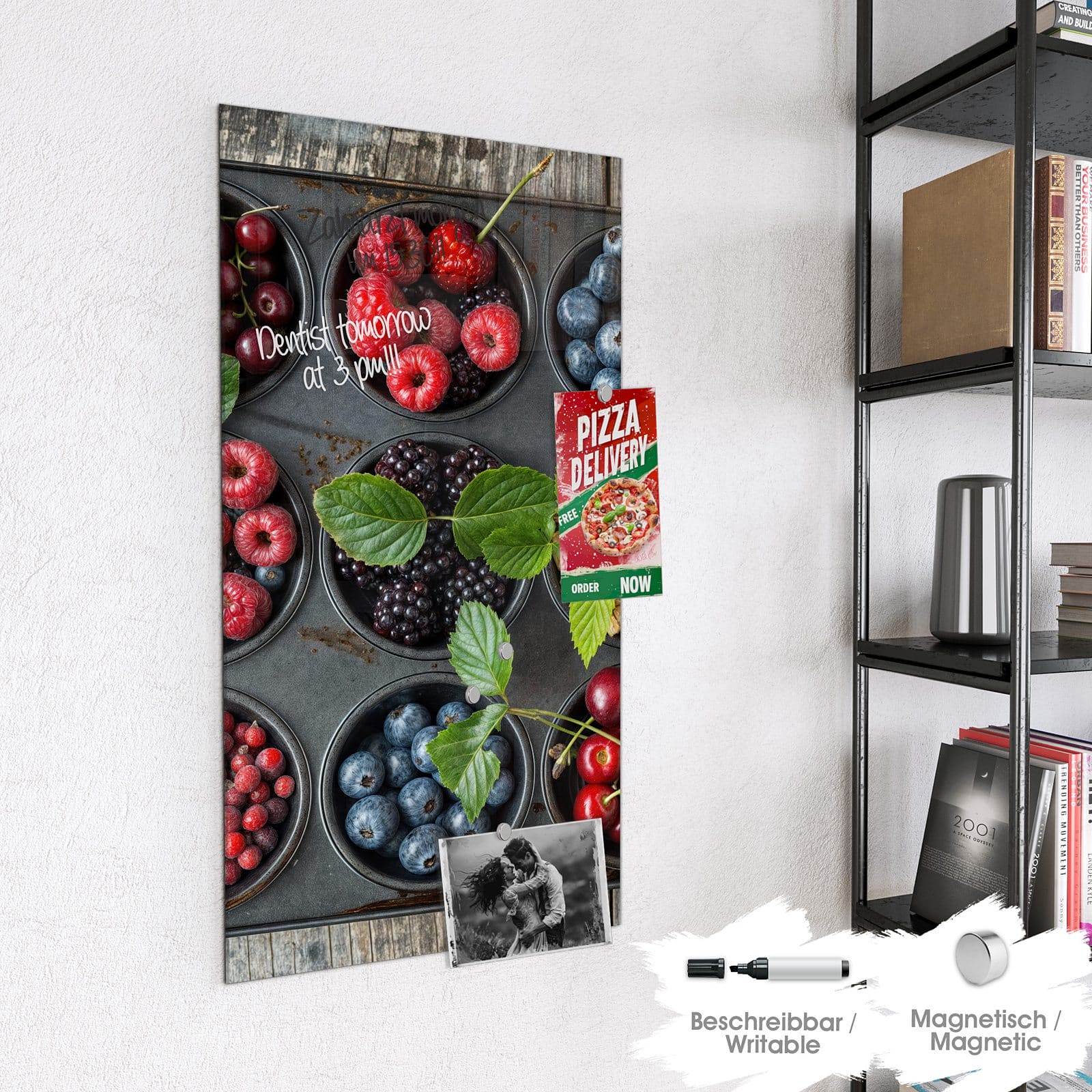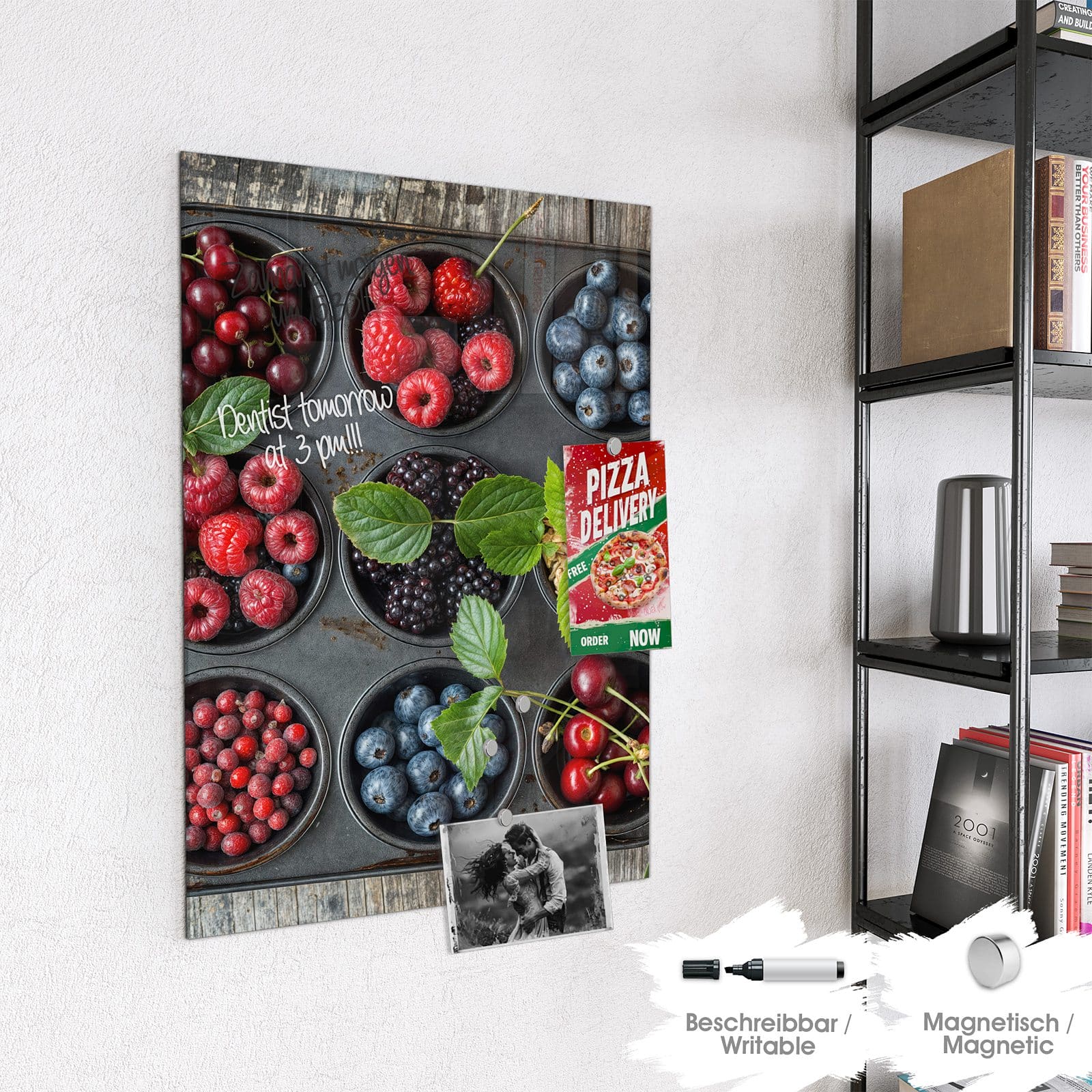 Stilvolle Glas-Magnettafel für Ihr Zuhause - Motiv Bunte Beeren
