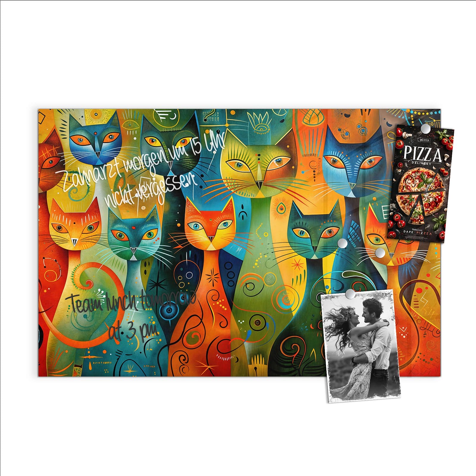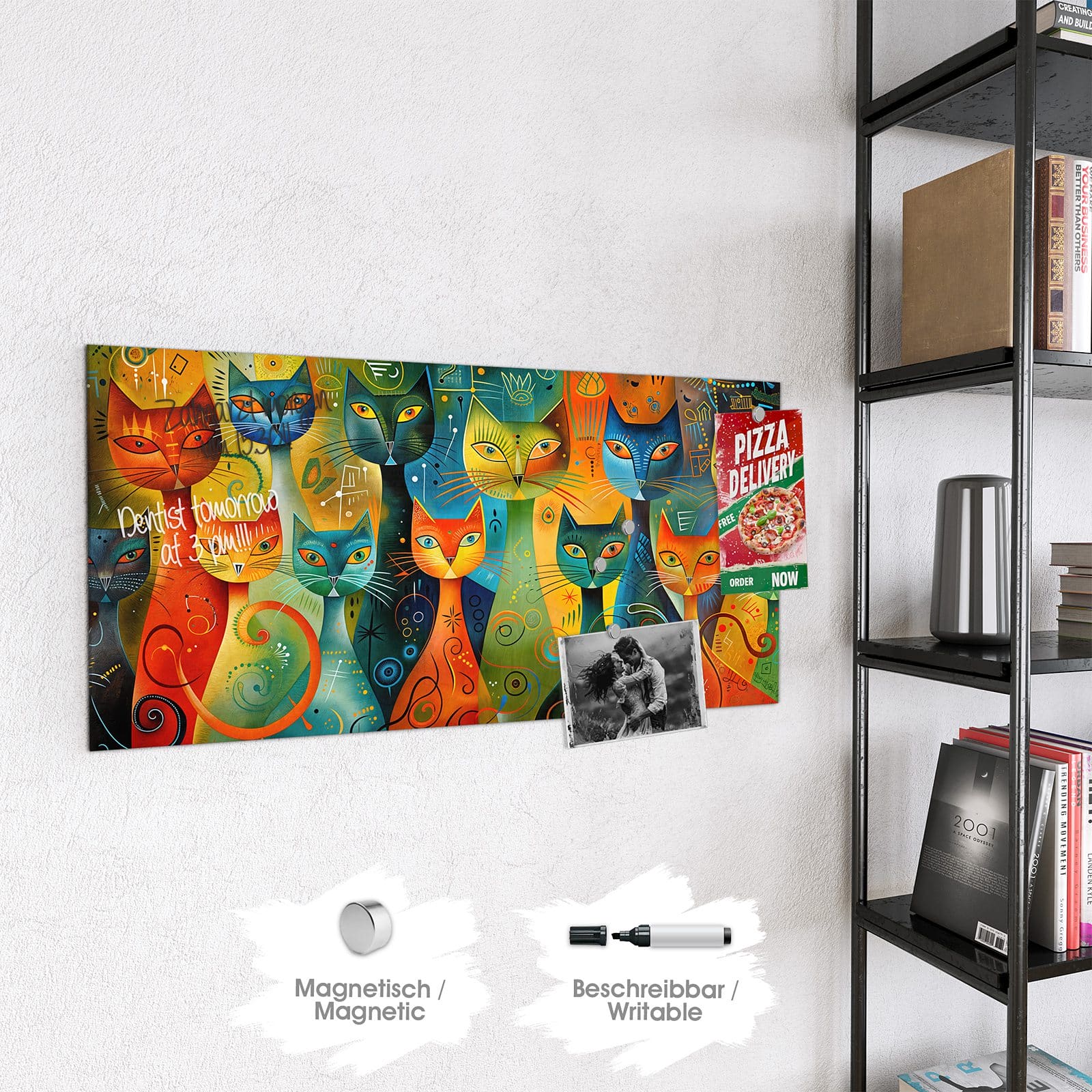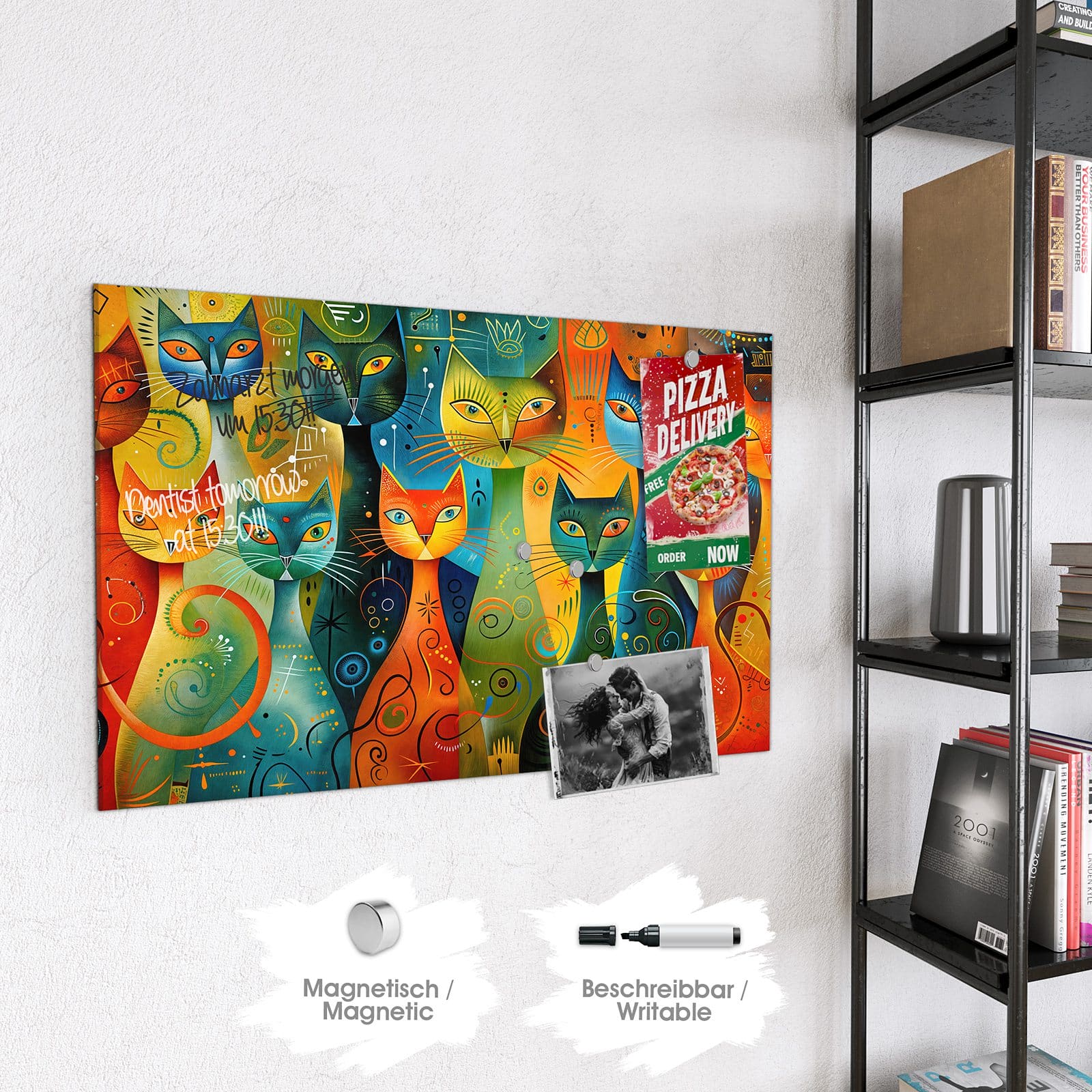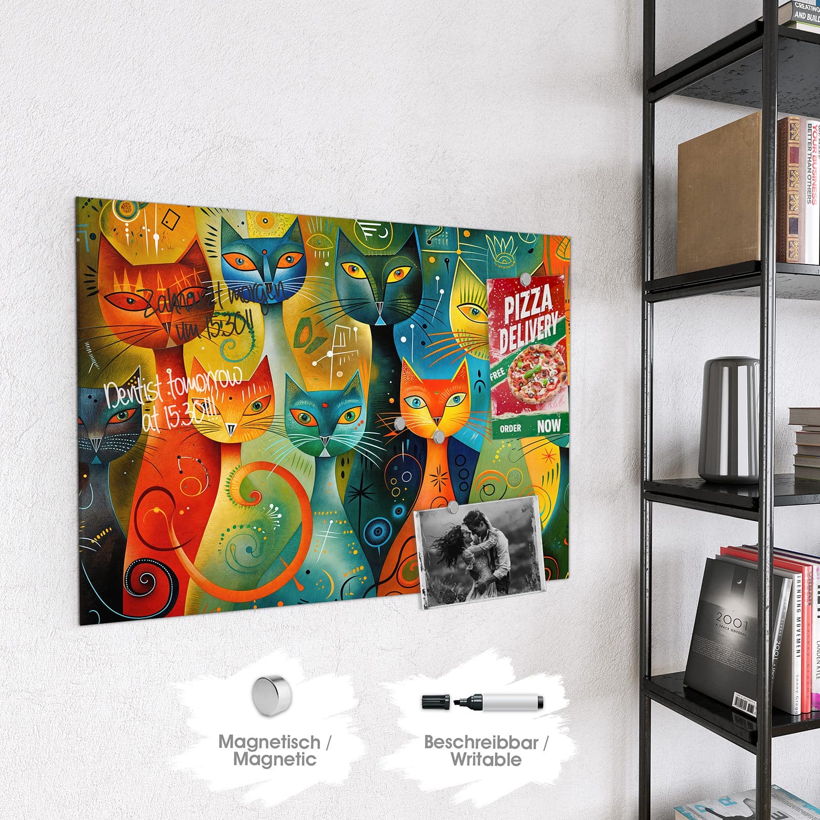 Stilvolle Glas-Magnettafel für Ihr Zuhause - Motiv Bunte Katzenkunst