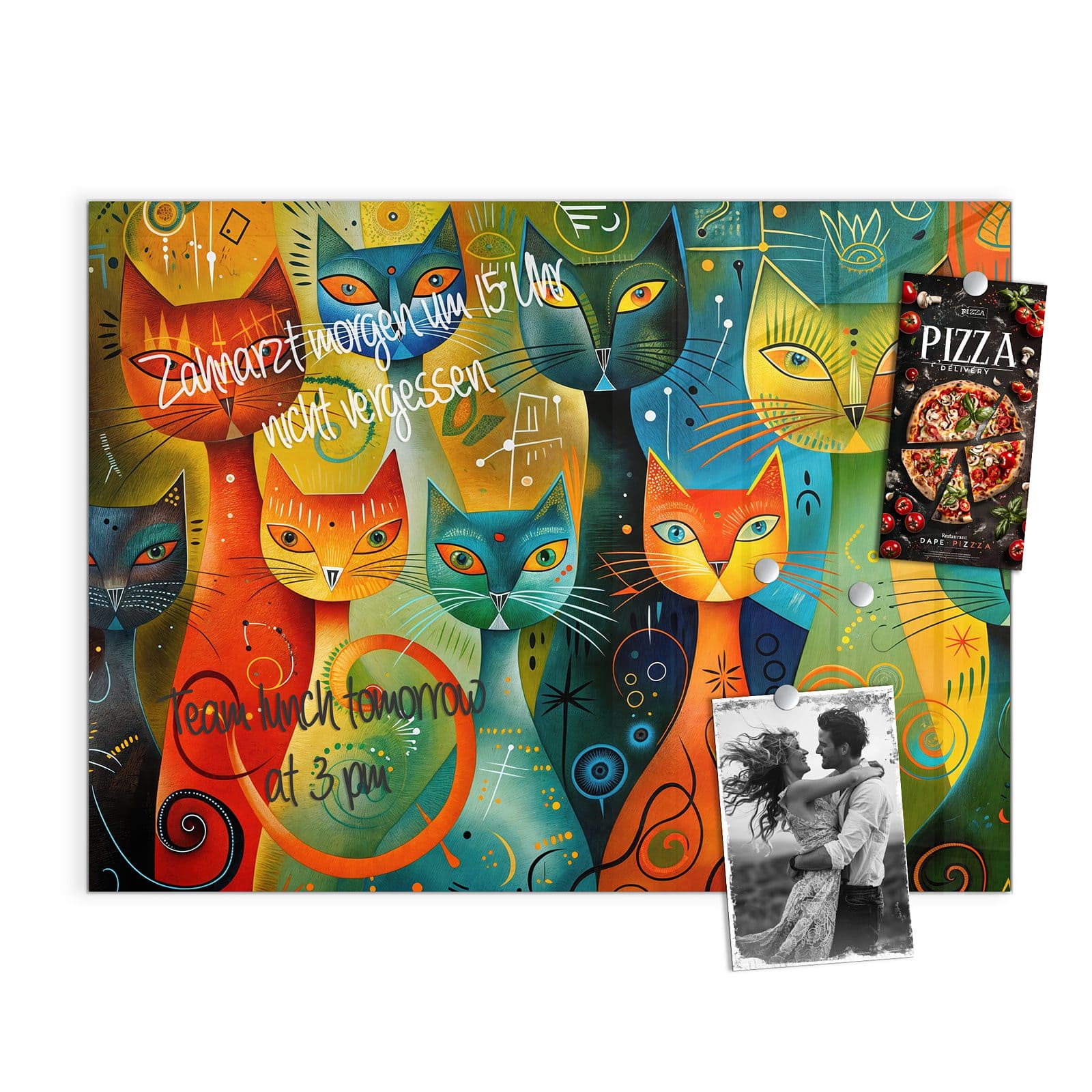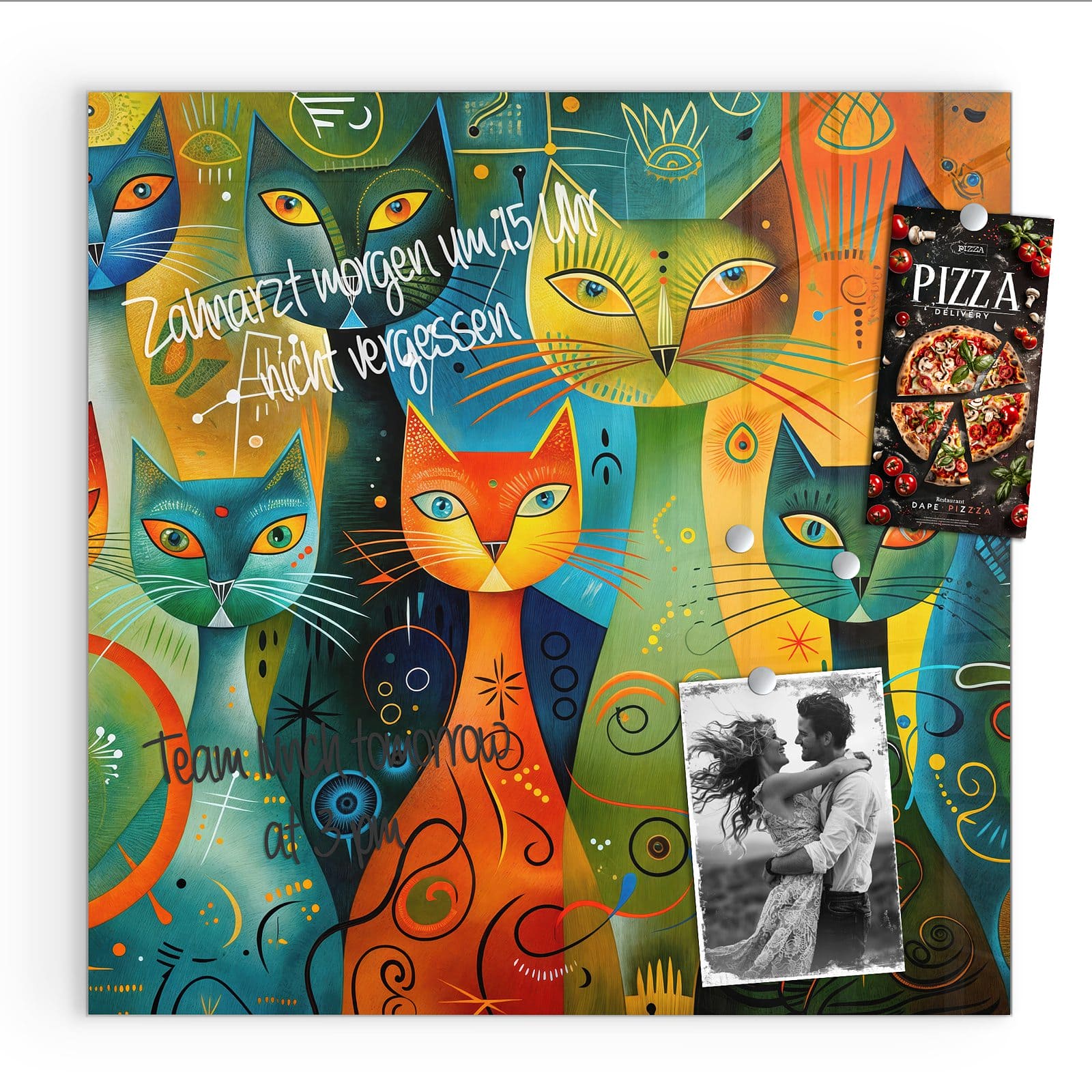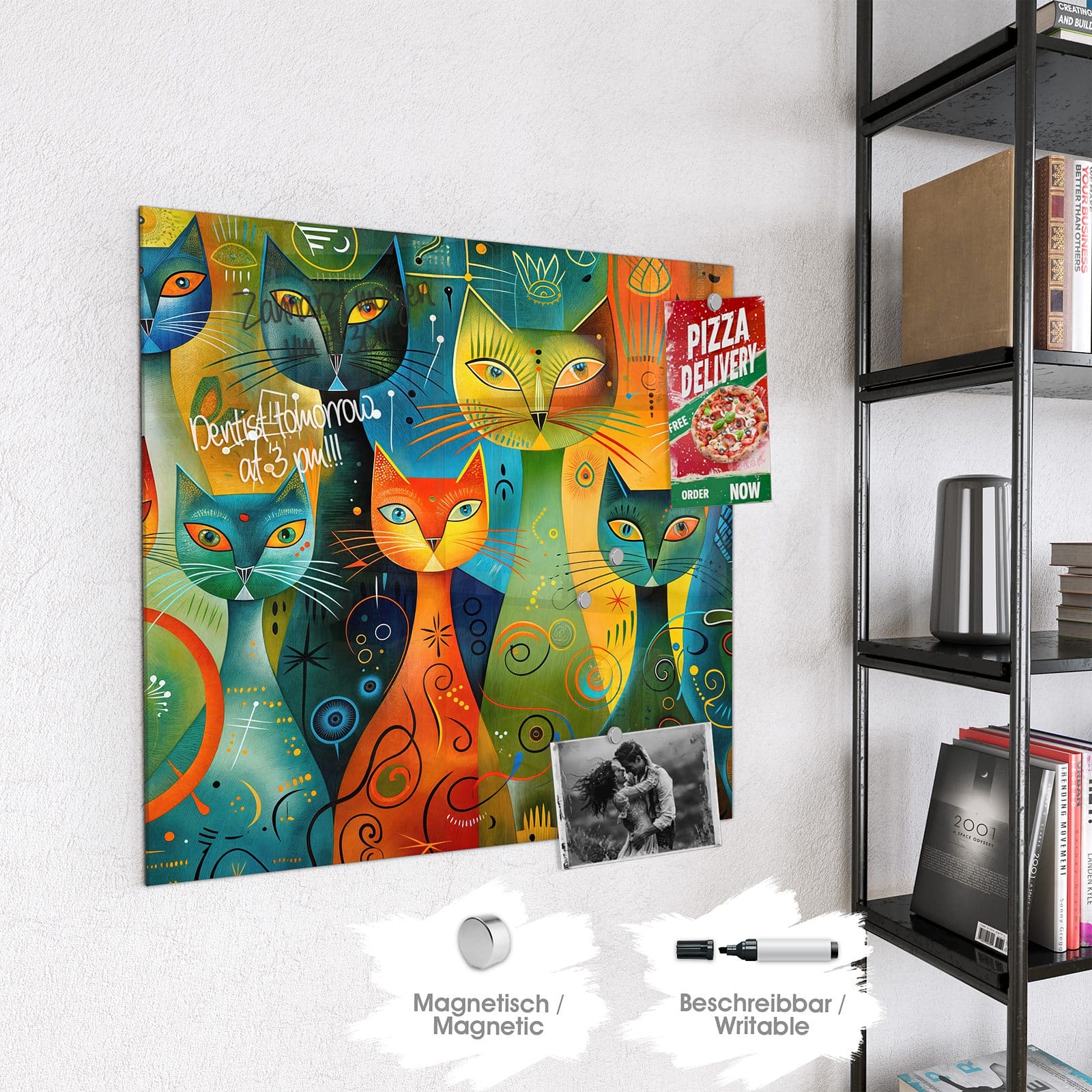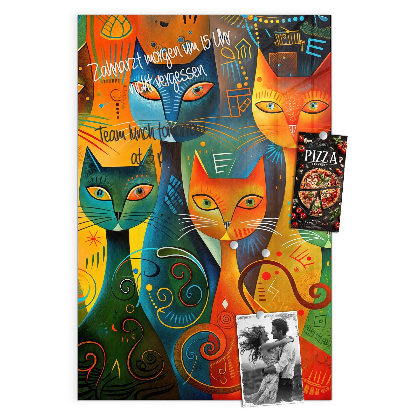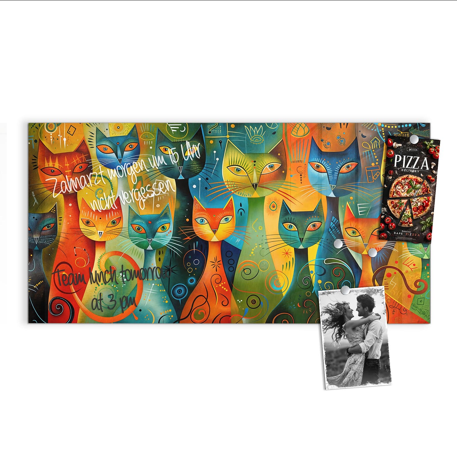 Stilvolle Glas-Magnettafel für Ihr Zuhause - Motiv Bunte Katzenkunst