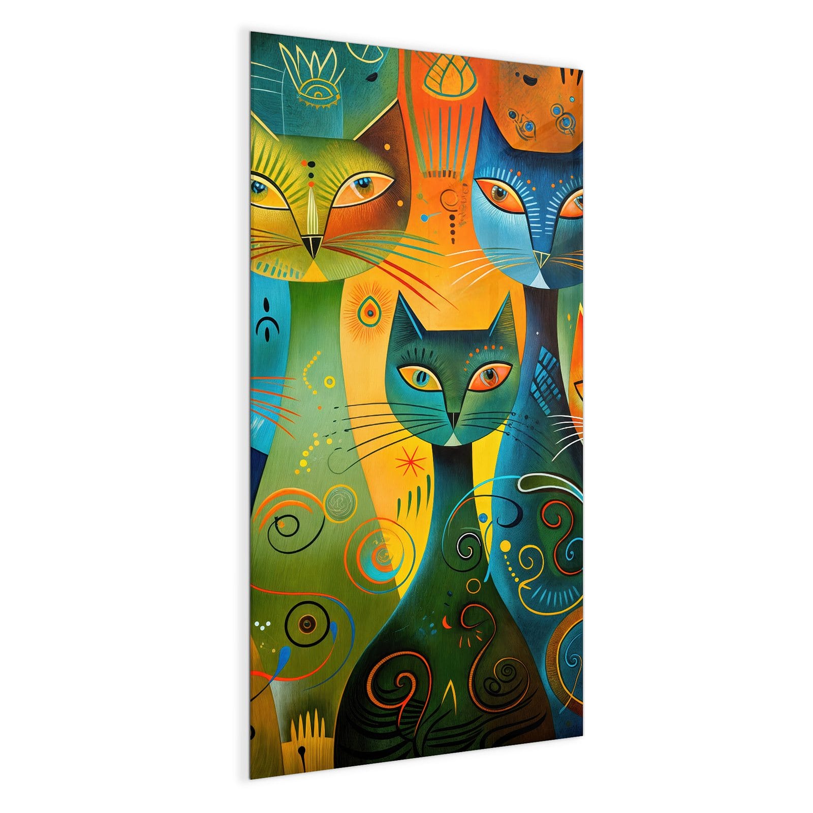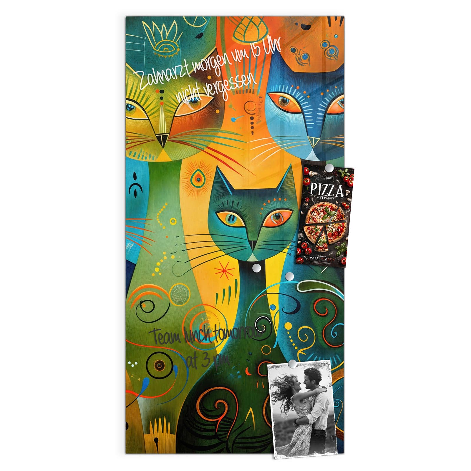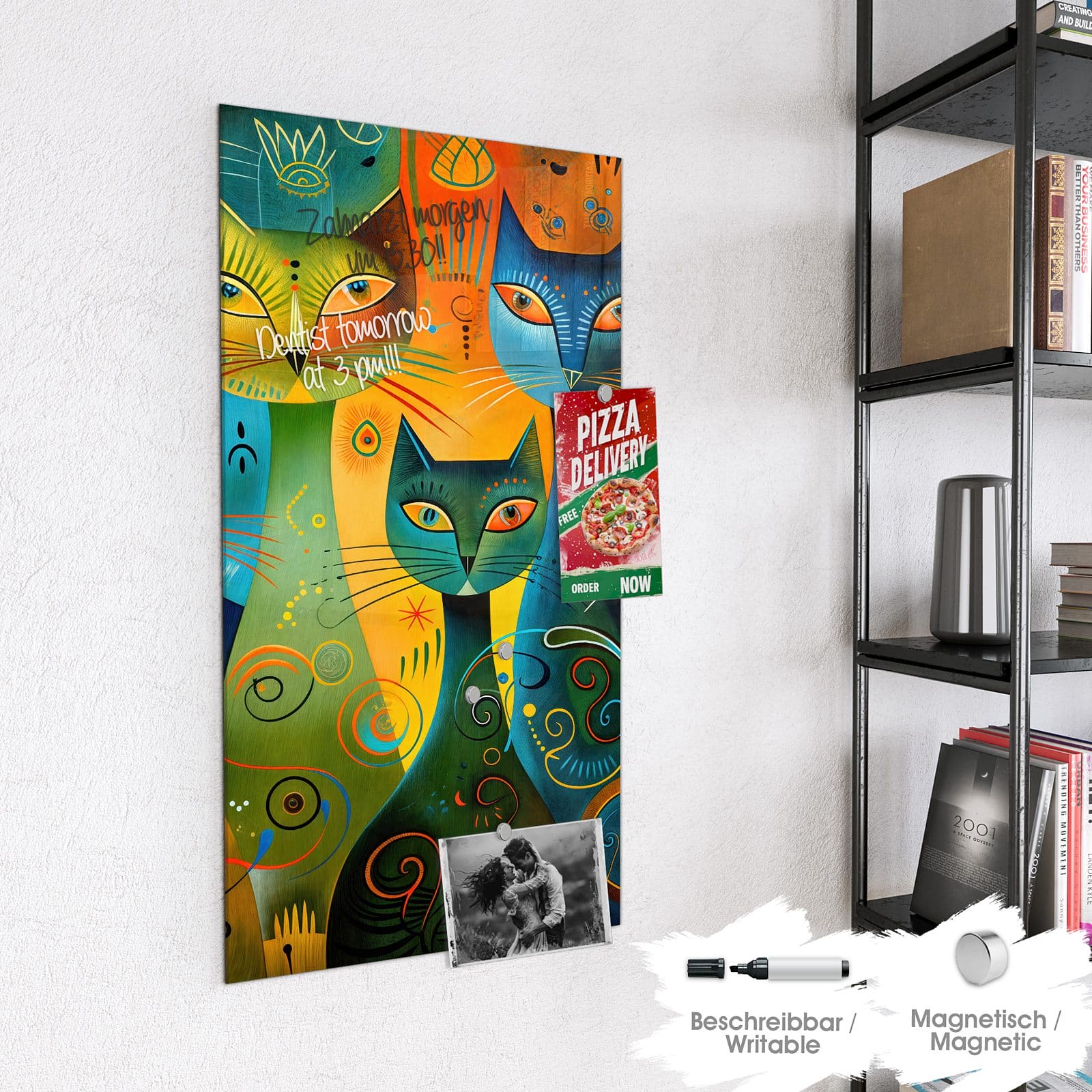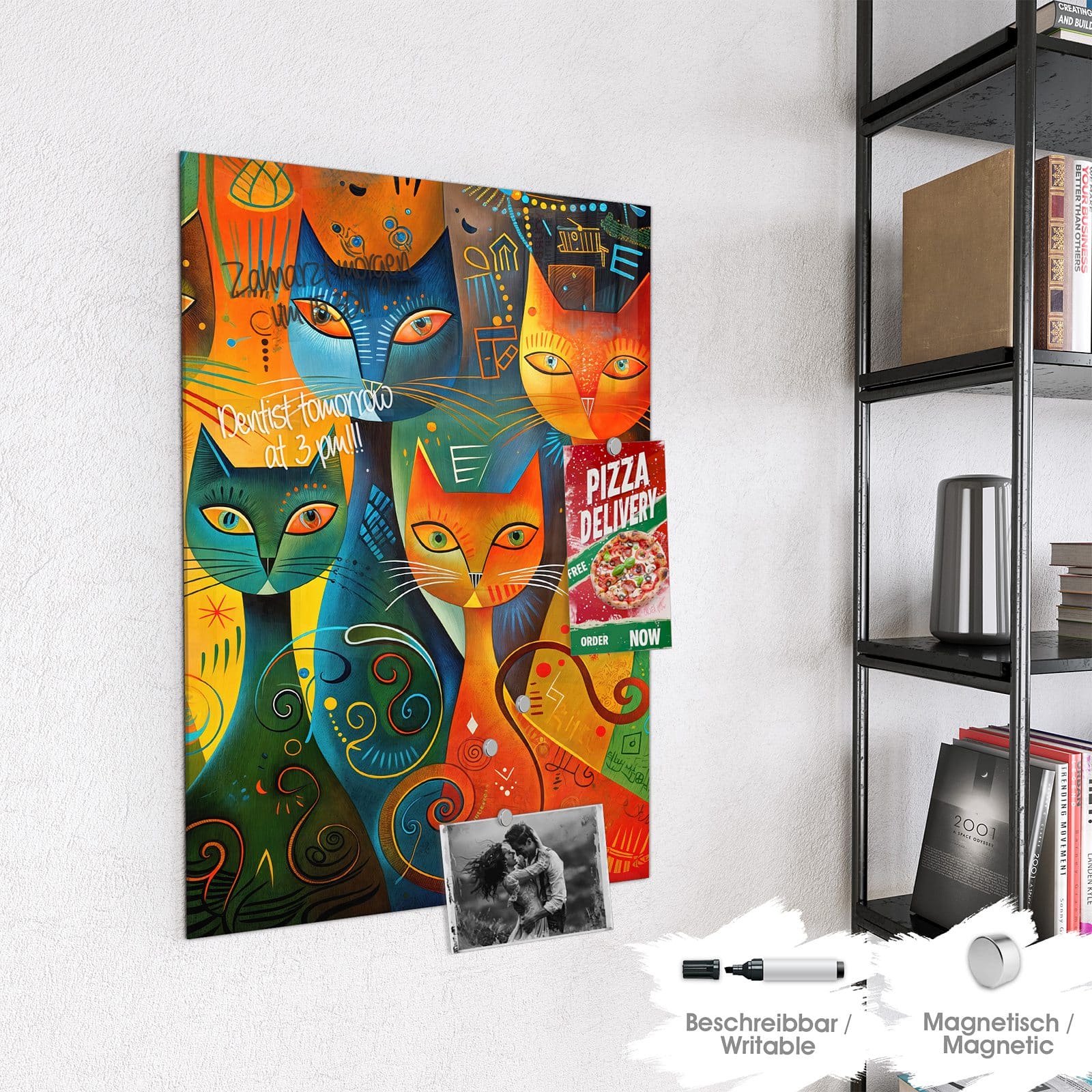 Stilvolle Glas-Magnettafel für Ihr Zuhause - Motiv Bunte Katzenkunst
