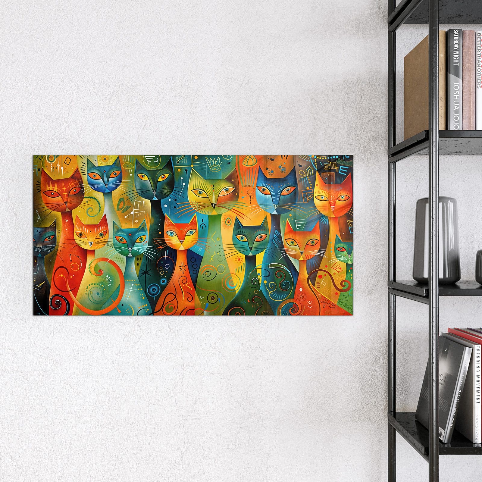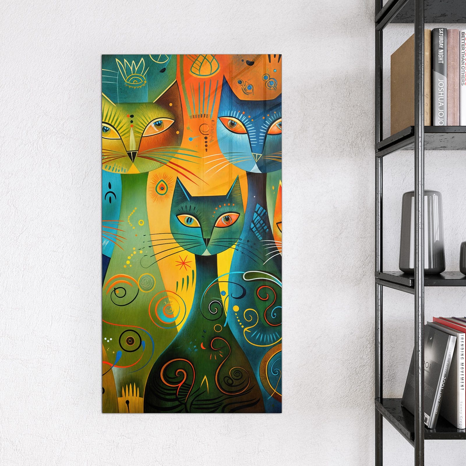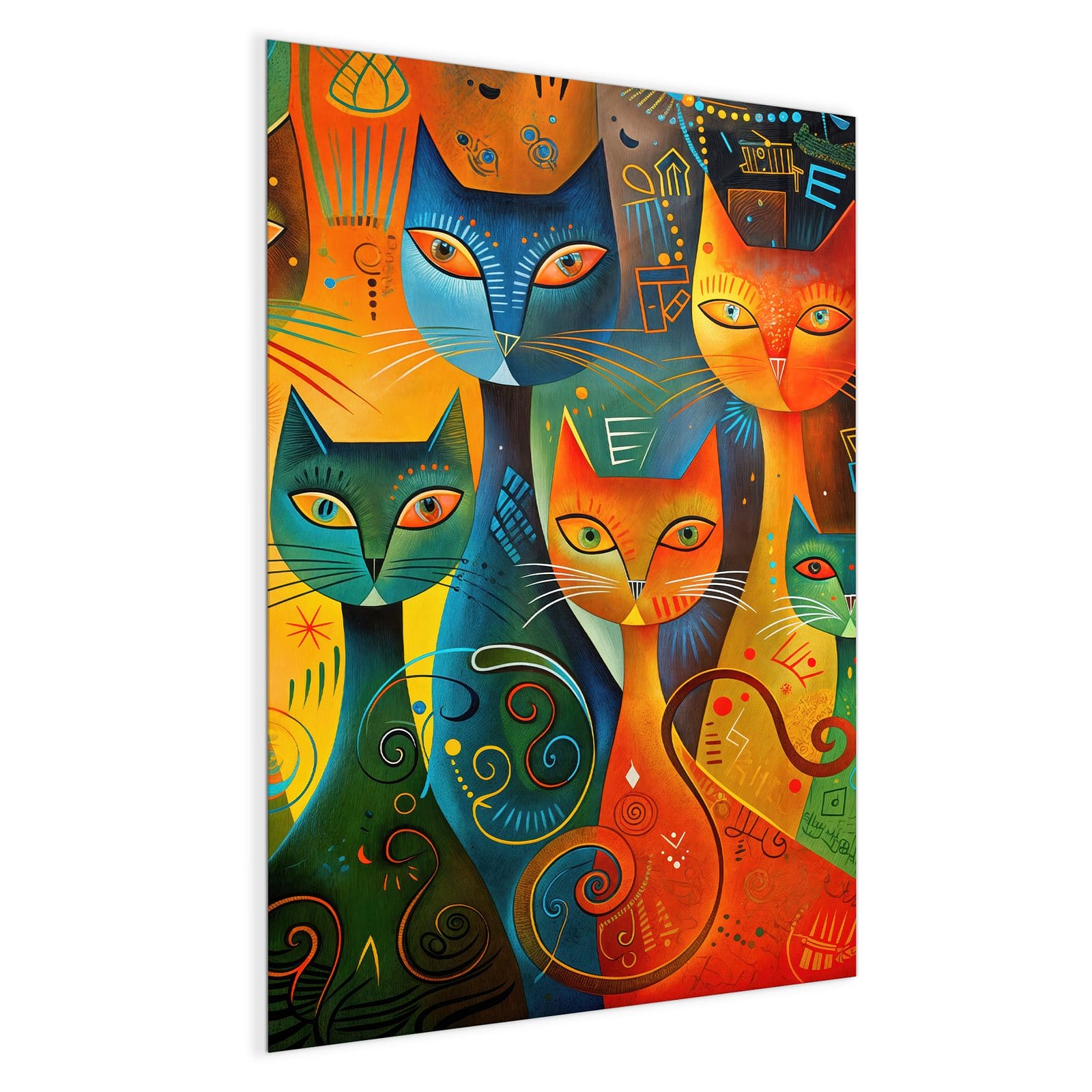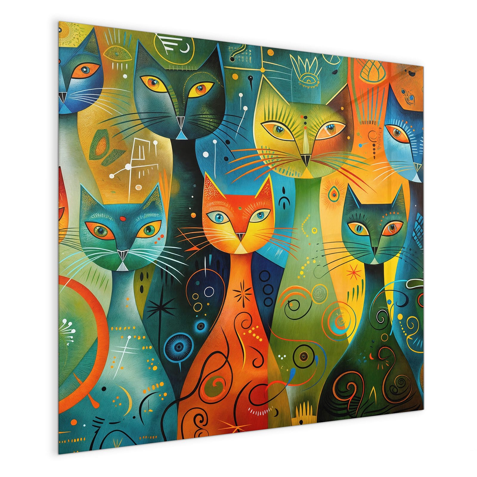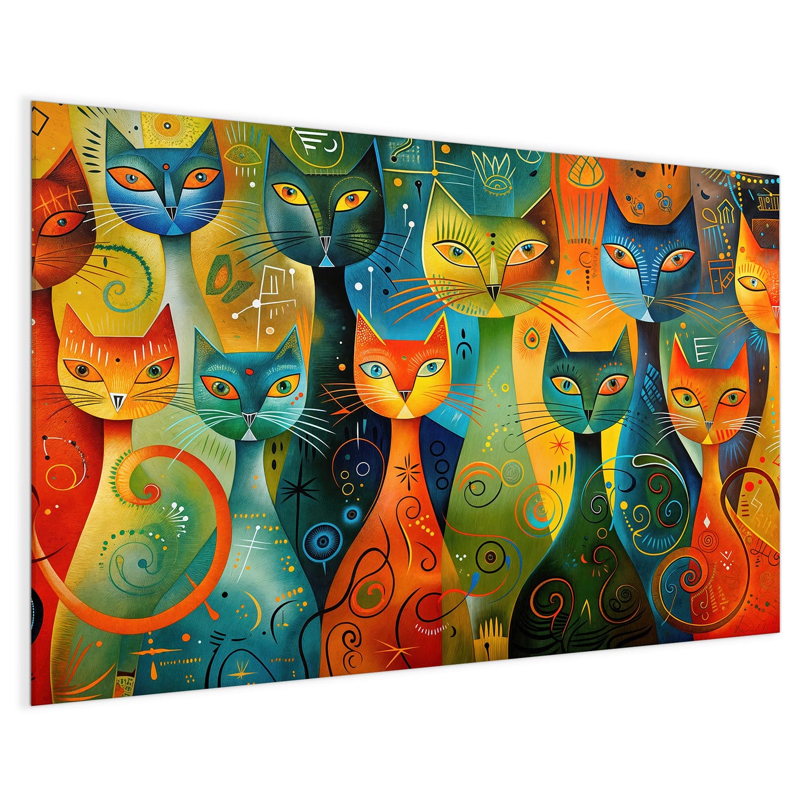 Stilvolle Glas-Magnettafel für Ihr Zuhause - Motiv Bunte Katzenkunst