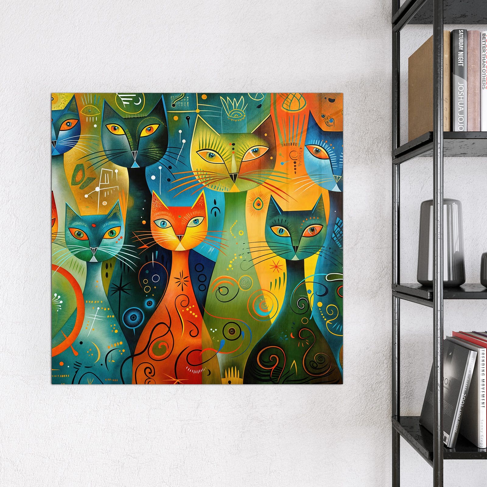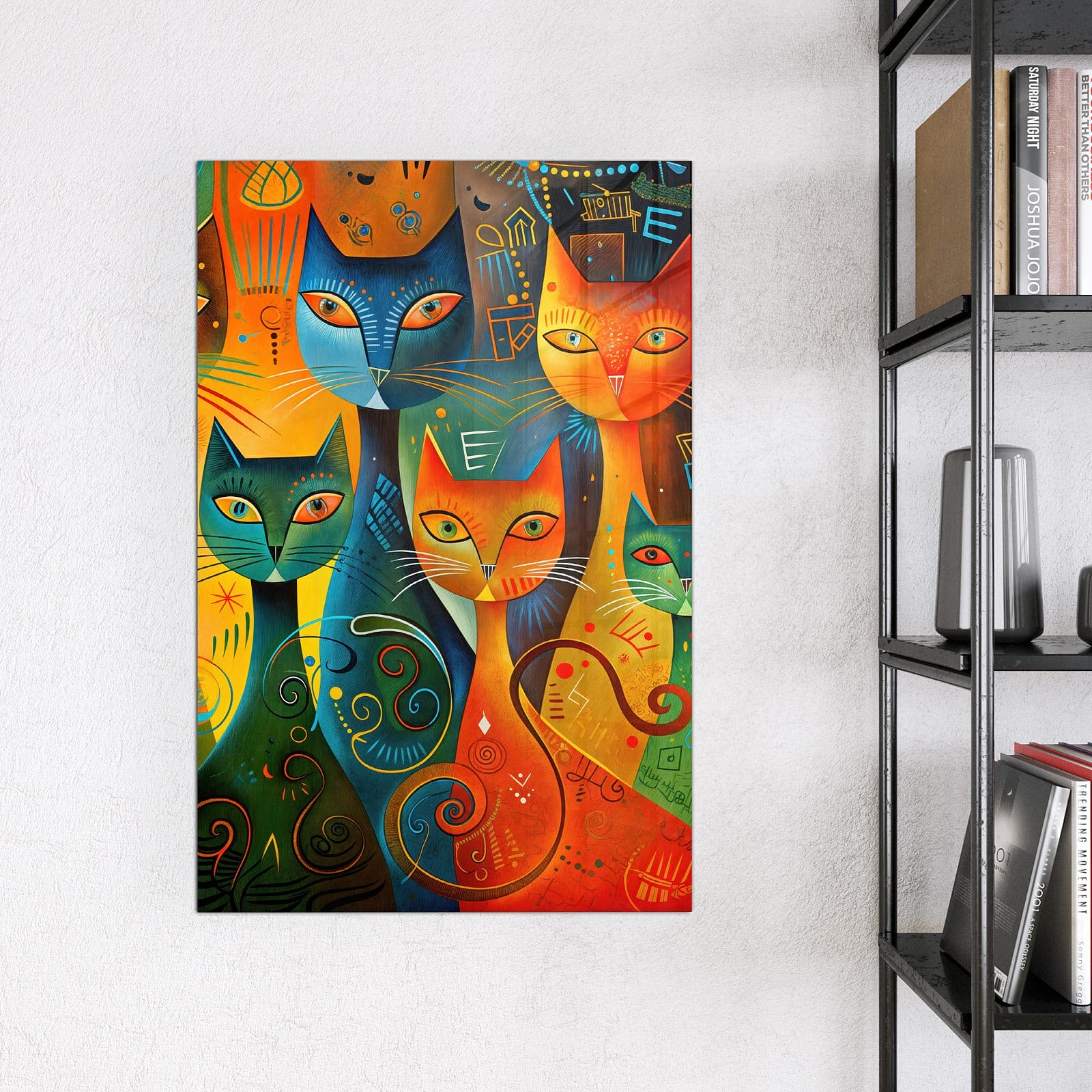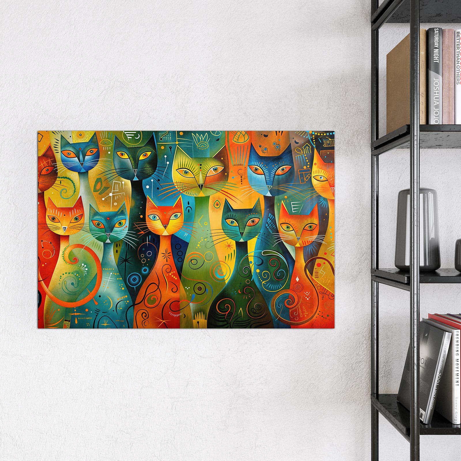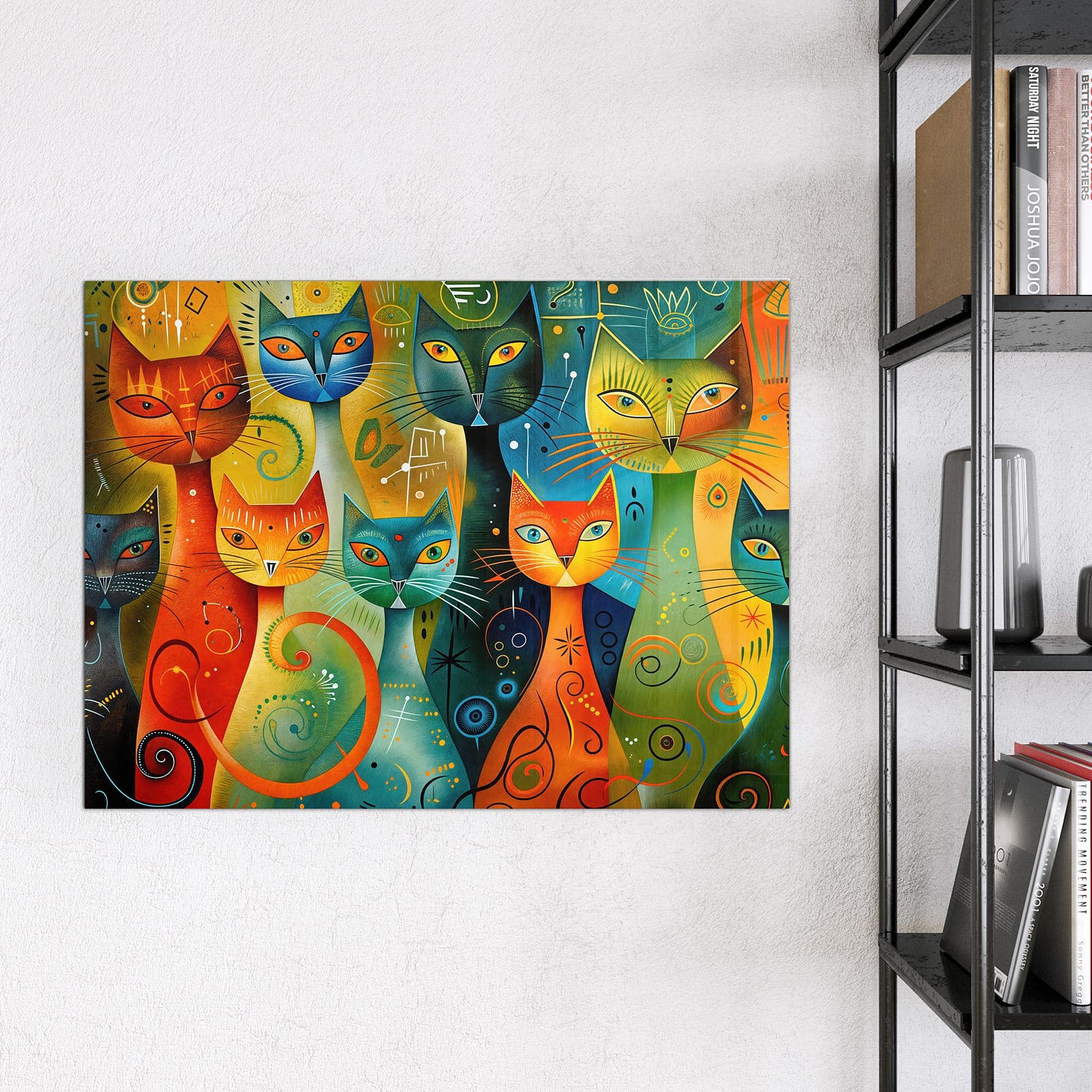 Stilvolle Glas-Magnettafel für Ihr Zuhause - Motiv Bunte Katzenkunst