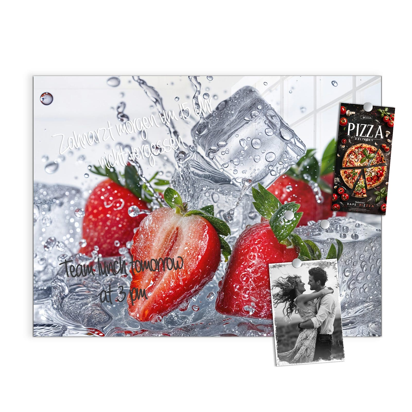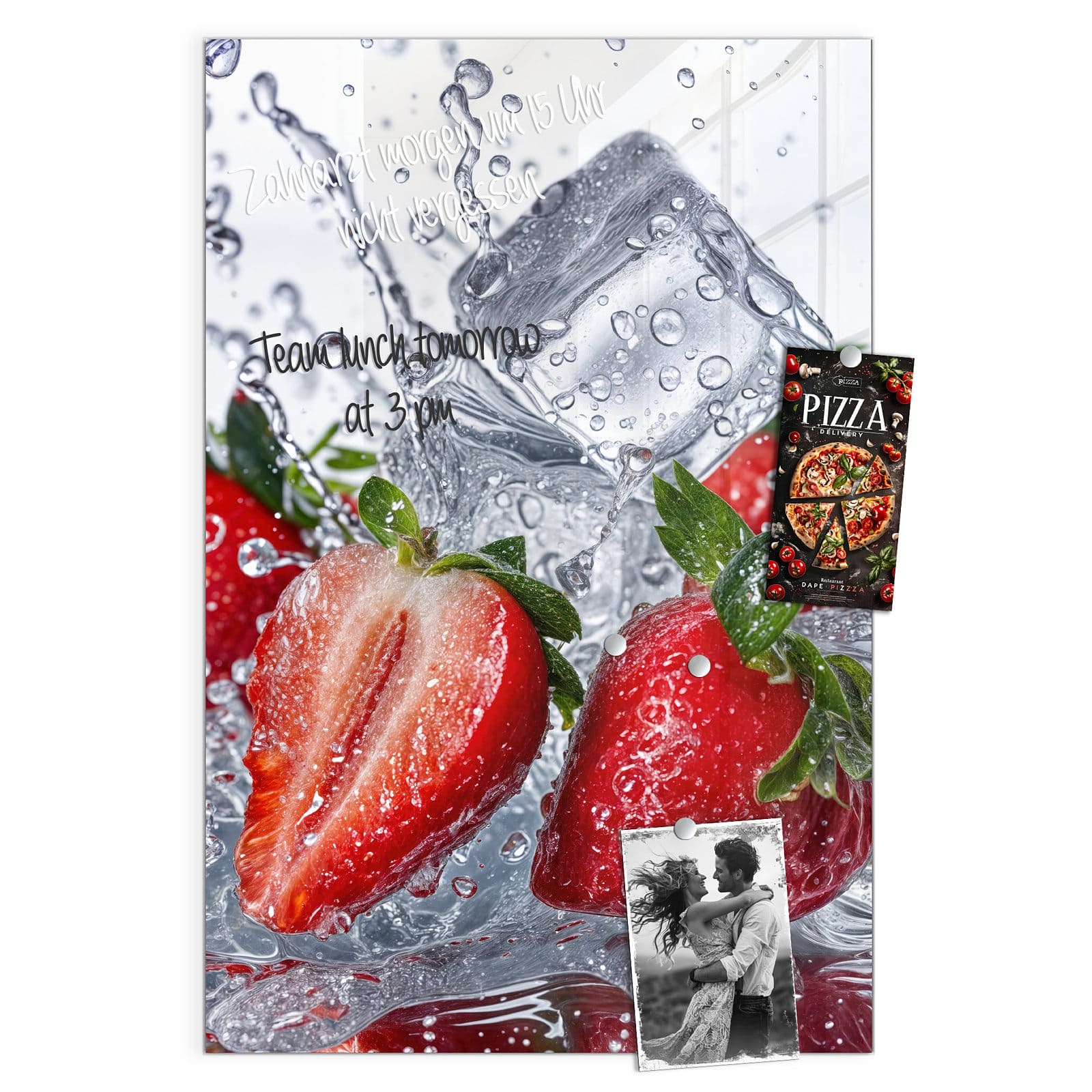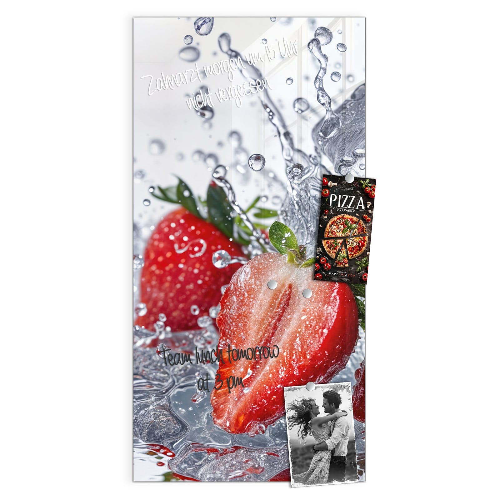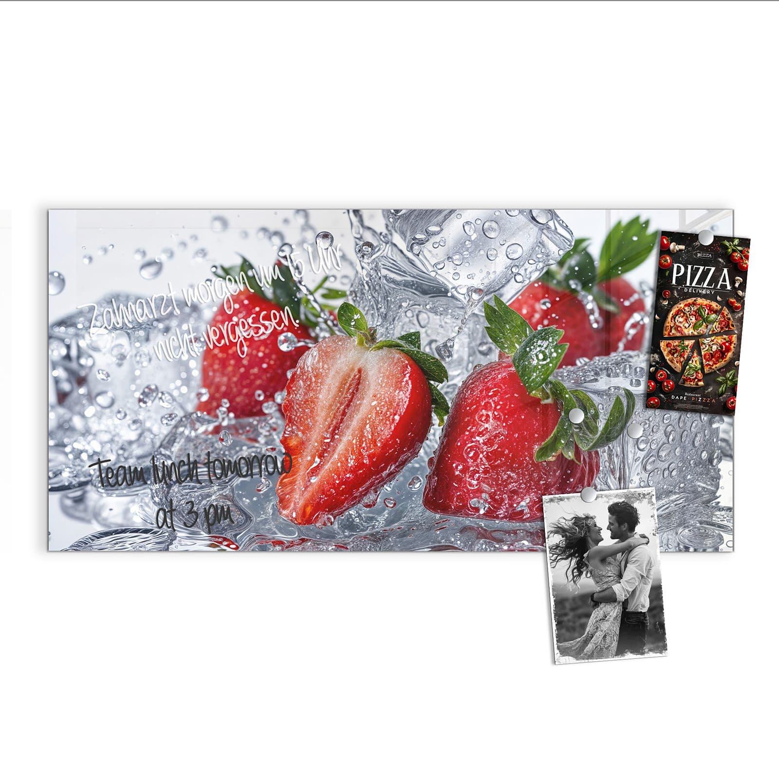 Stilvolle Glas-Magnettafel für Ihr Zuhause - Motiv Erdbeeren im Wasser