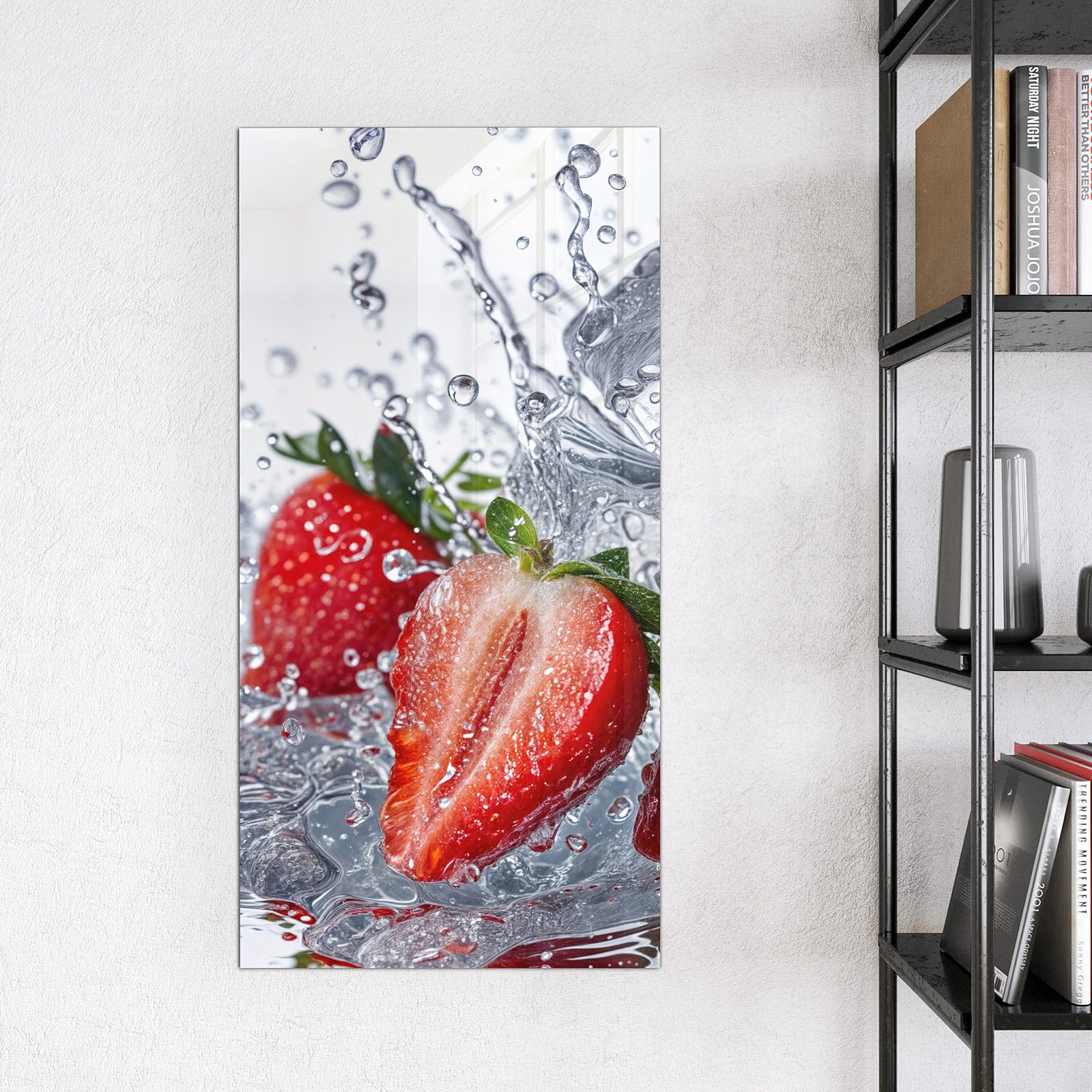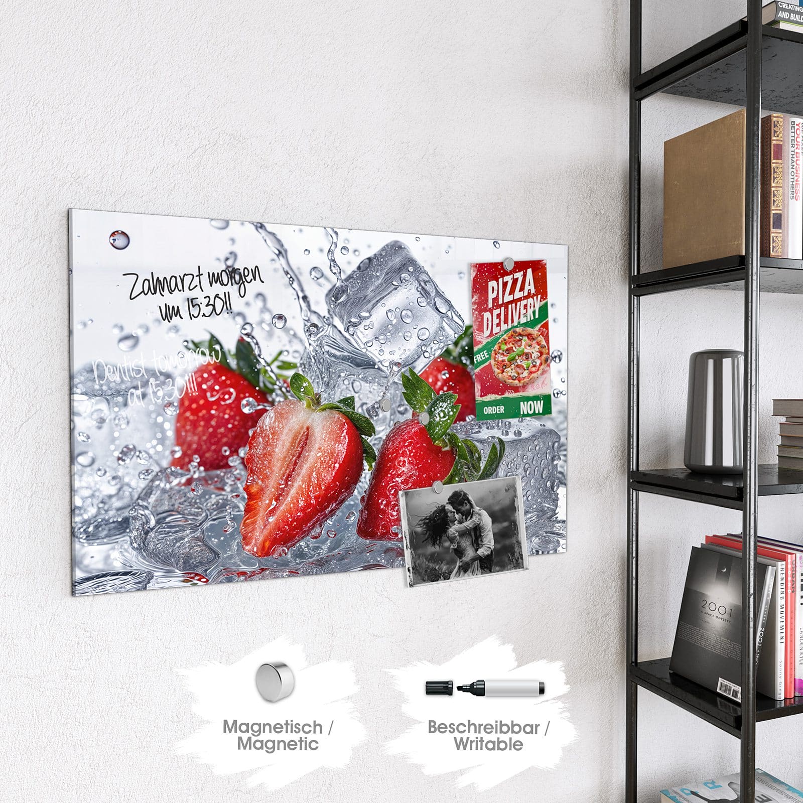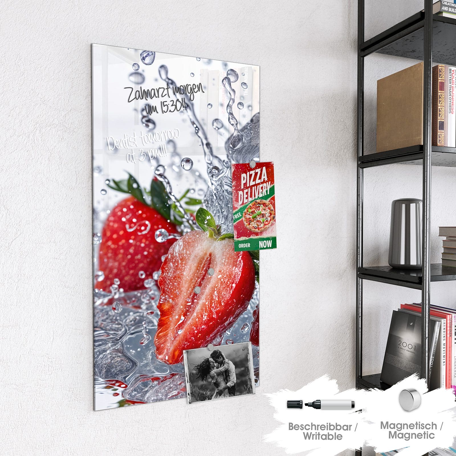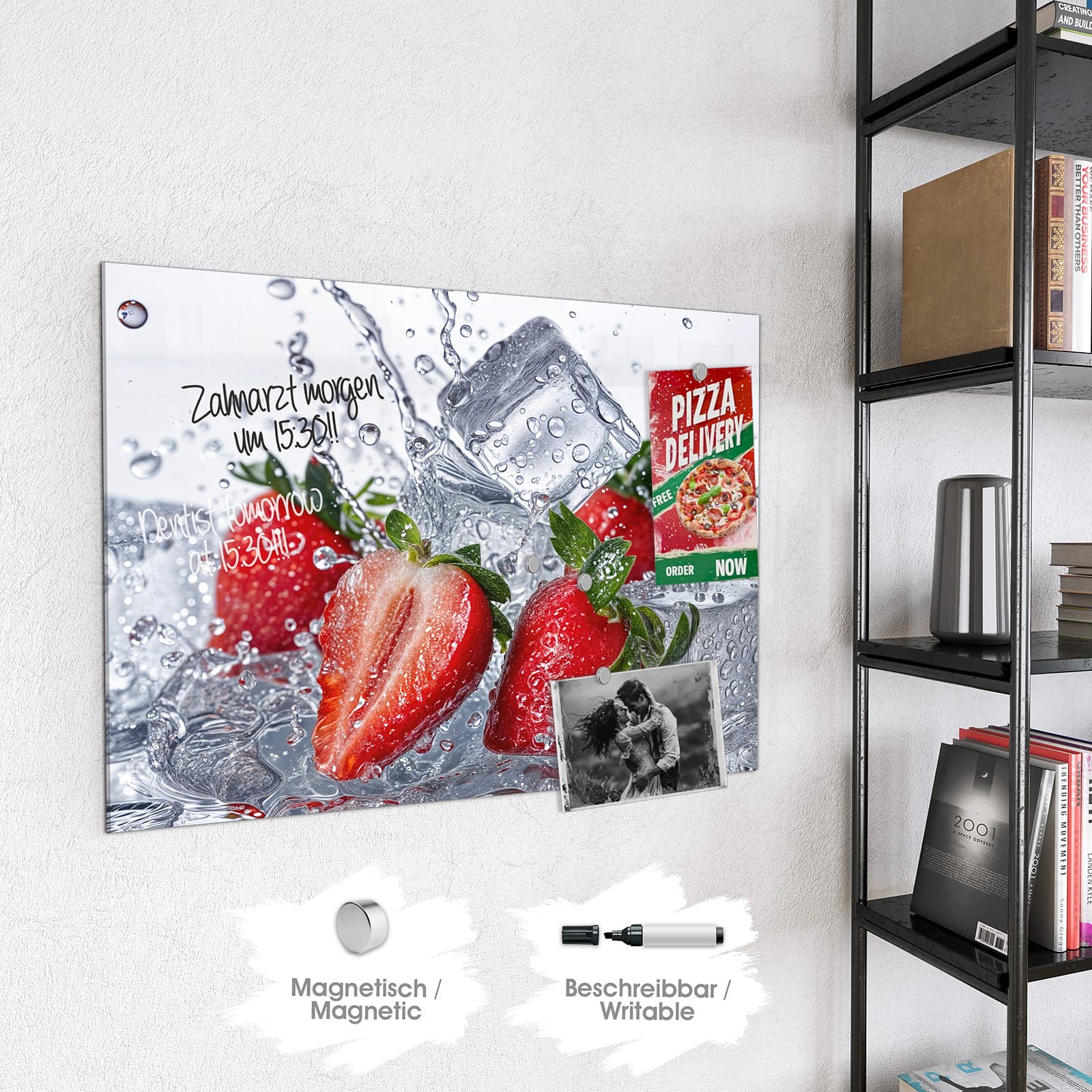 Stilvolle Glas-Magnettafel für Ihr Zuhause - Motiv Erdbeeren im Wasser
