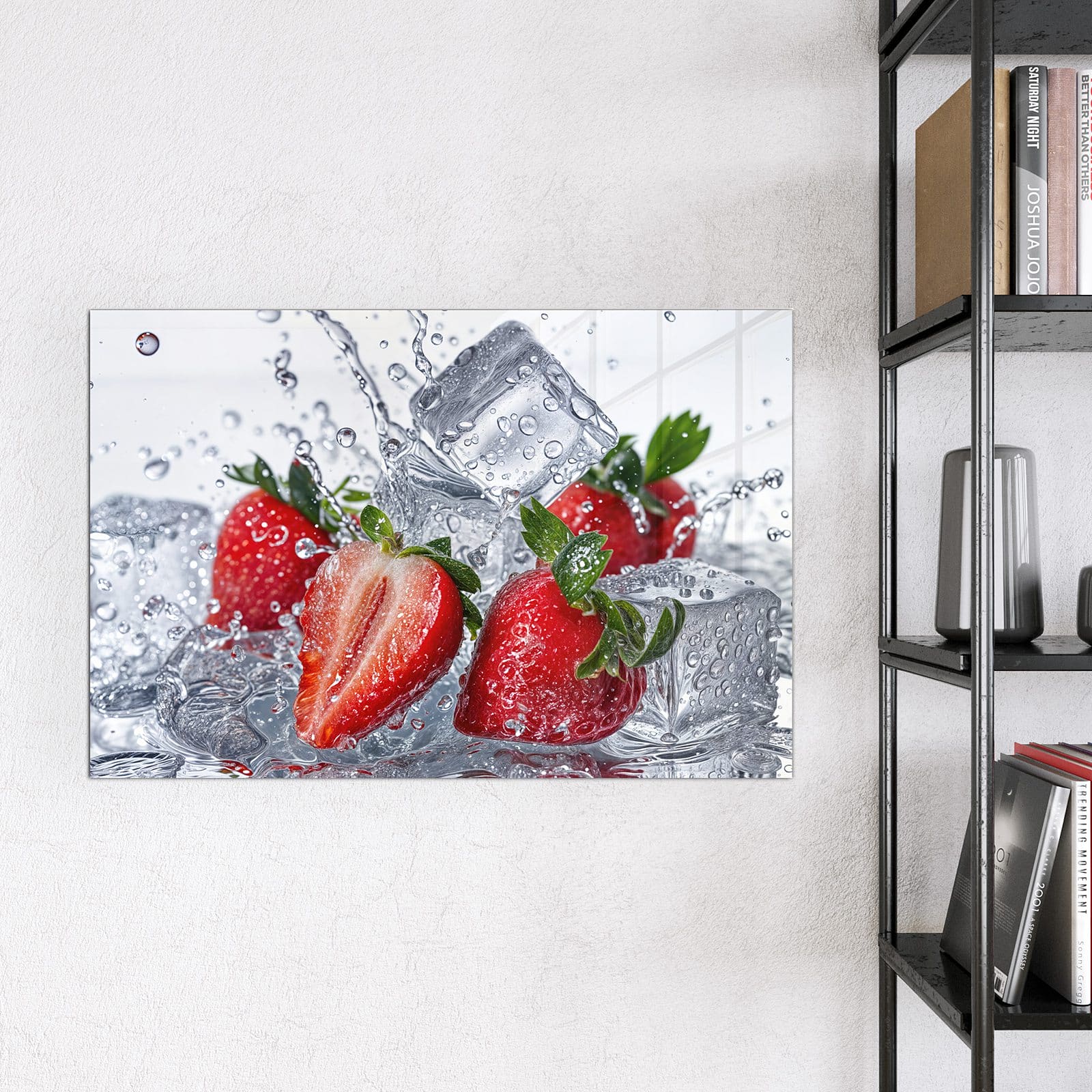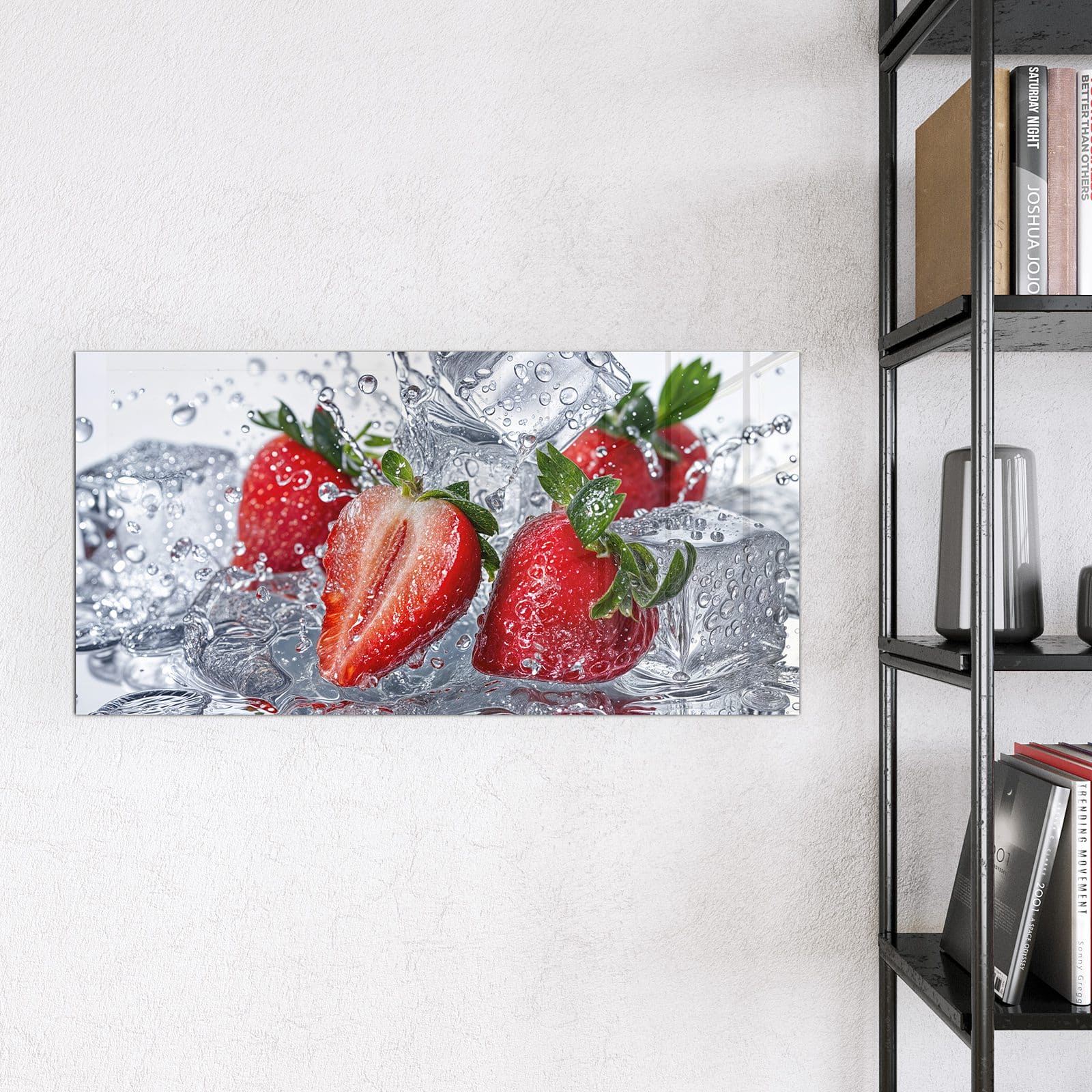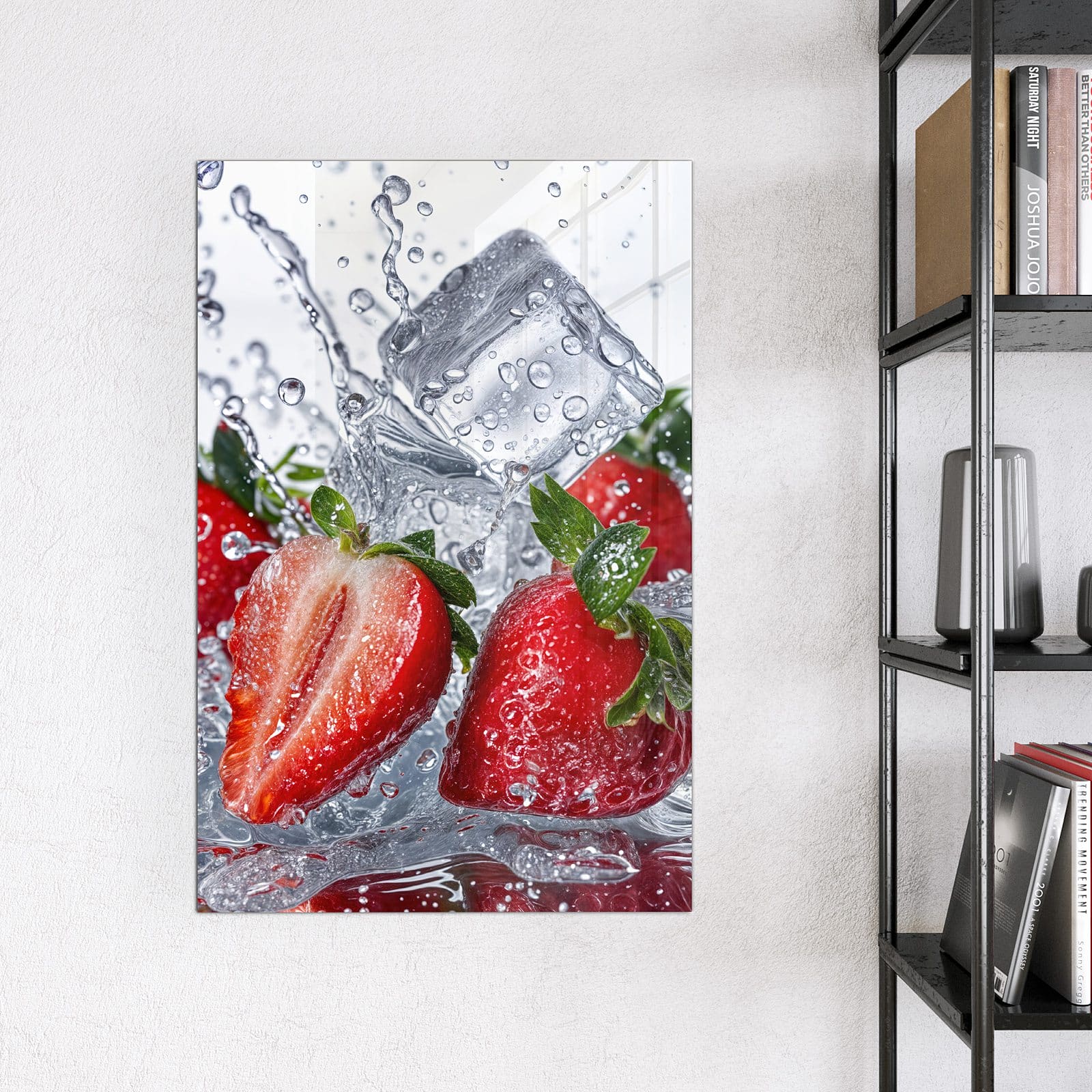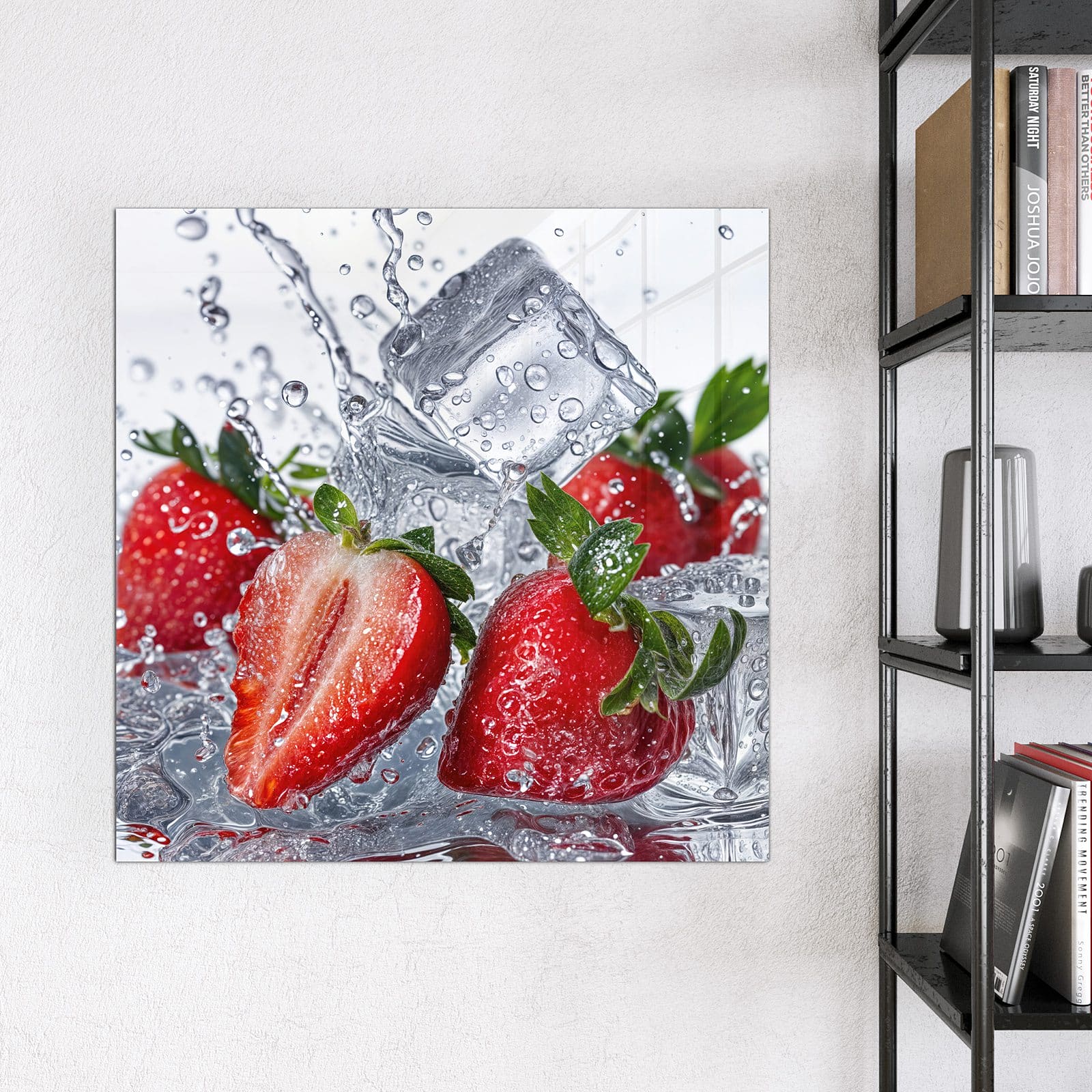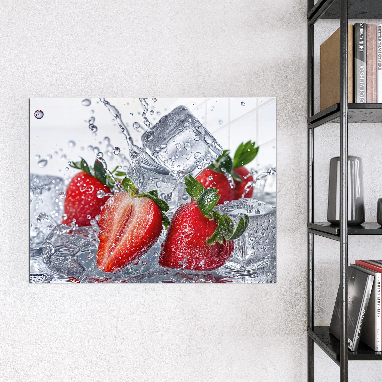 Stilvolle Glas-Magnettafel für Ihr Zuhause - Motiv Erdbeeren im Wasser