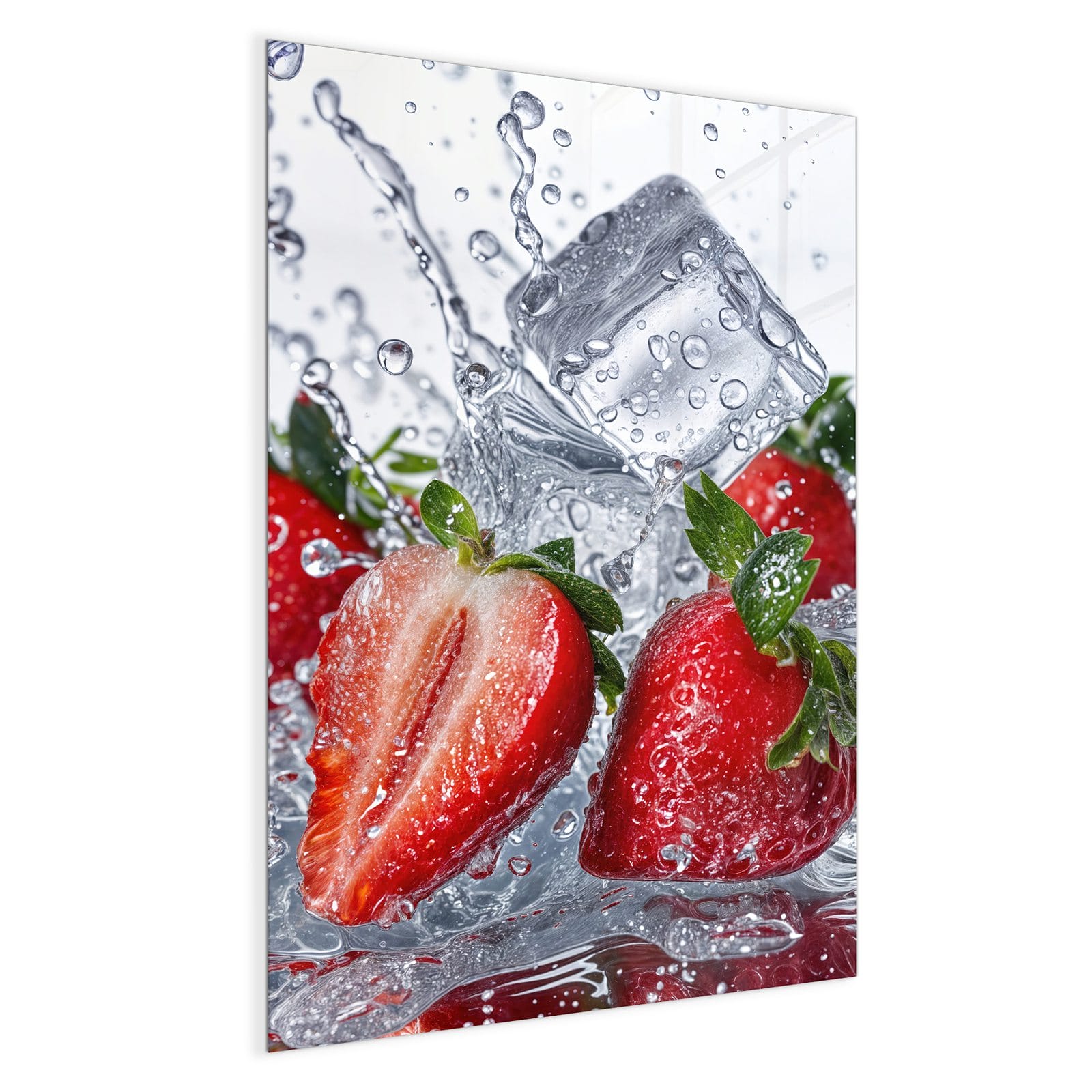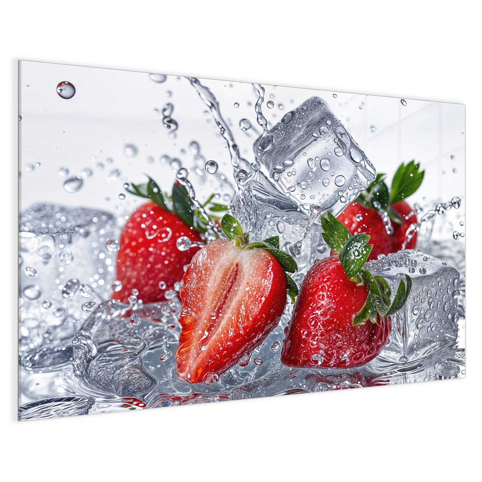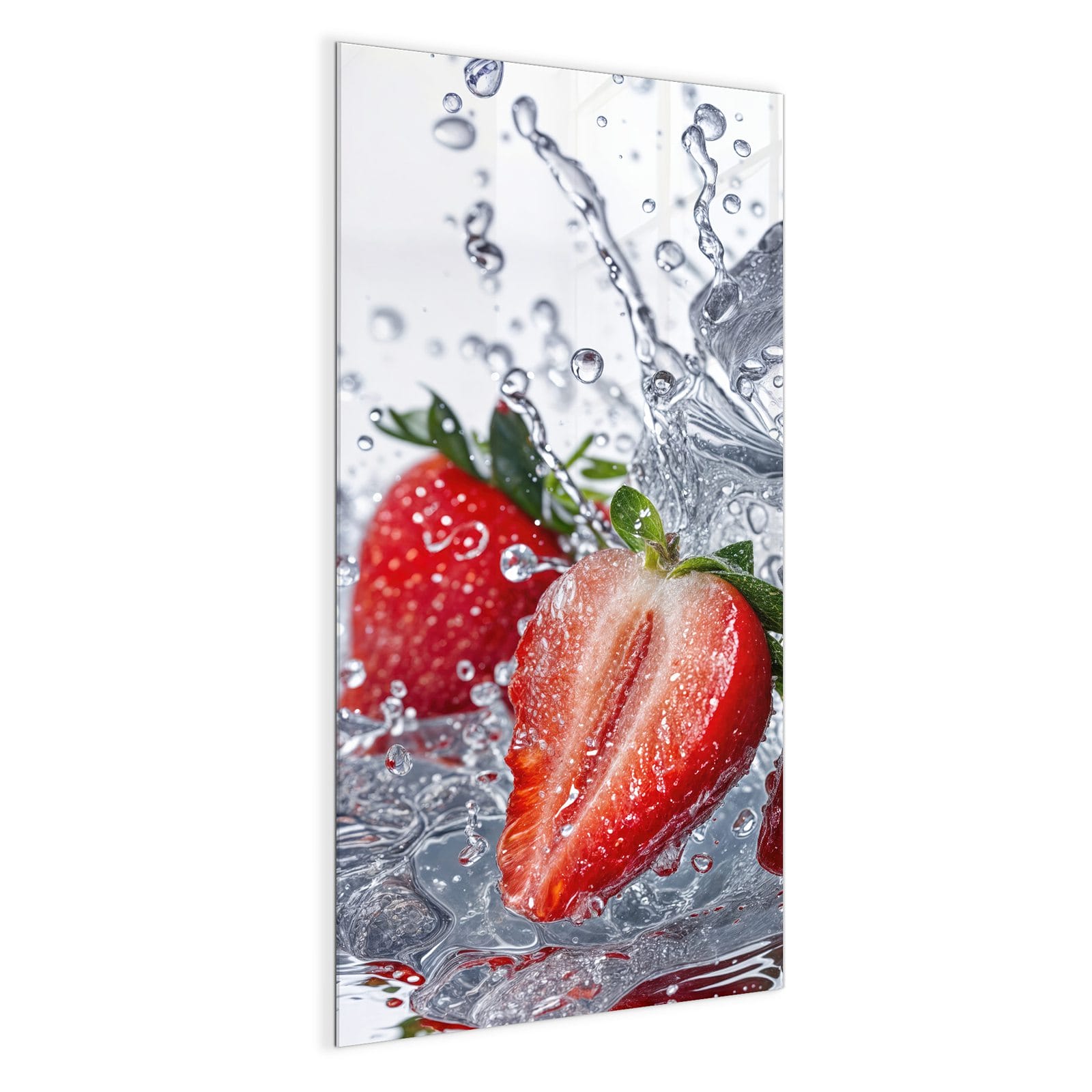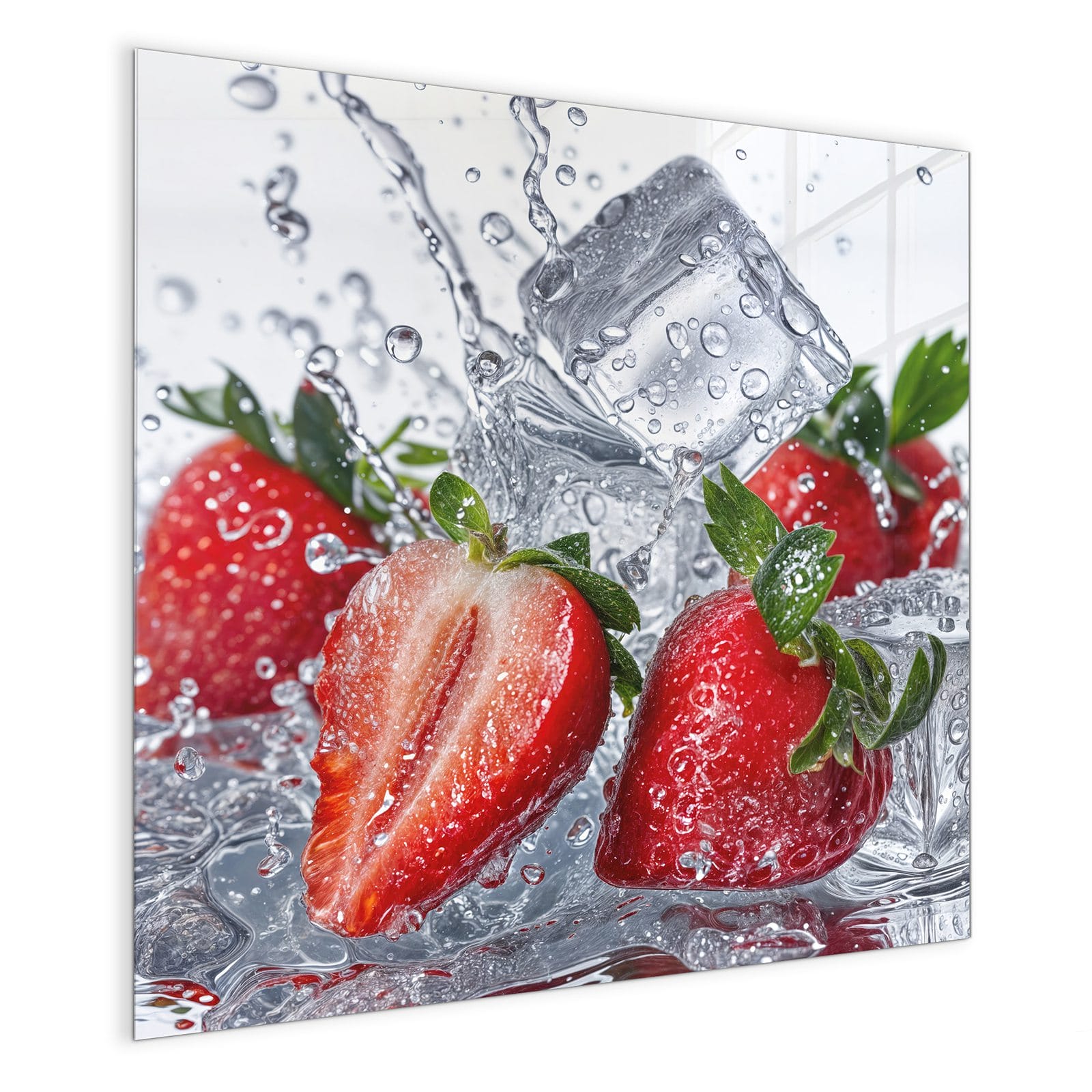 Mit einer Dicke von 4 mm besteht die Tafel aus gehärtetem Einscheibensicherheitsglas (ESG), das robust, kratzfest und UV-beständig ist. Das Motiv Erdbeeren im Wasser wird in hoher Auflösung und mit präzisen Details auf das Glas gedruckt, was eine lebendige und dauerhafte Farbbrillanz garantiert. Die polierten Kanten sorgen für ein hochwertiges Erscheinungsbild und minimieren das Verletzungsrisiko.