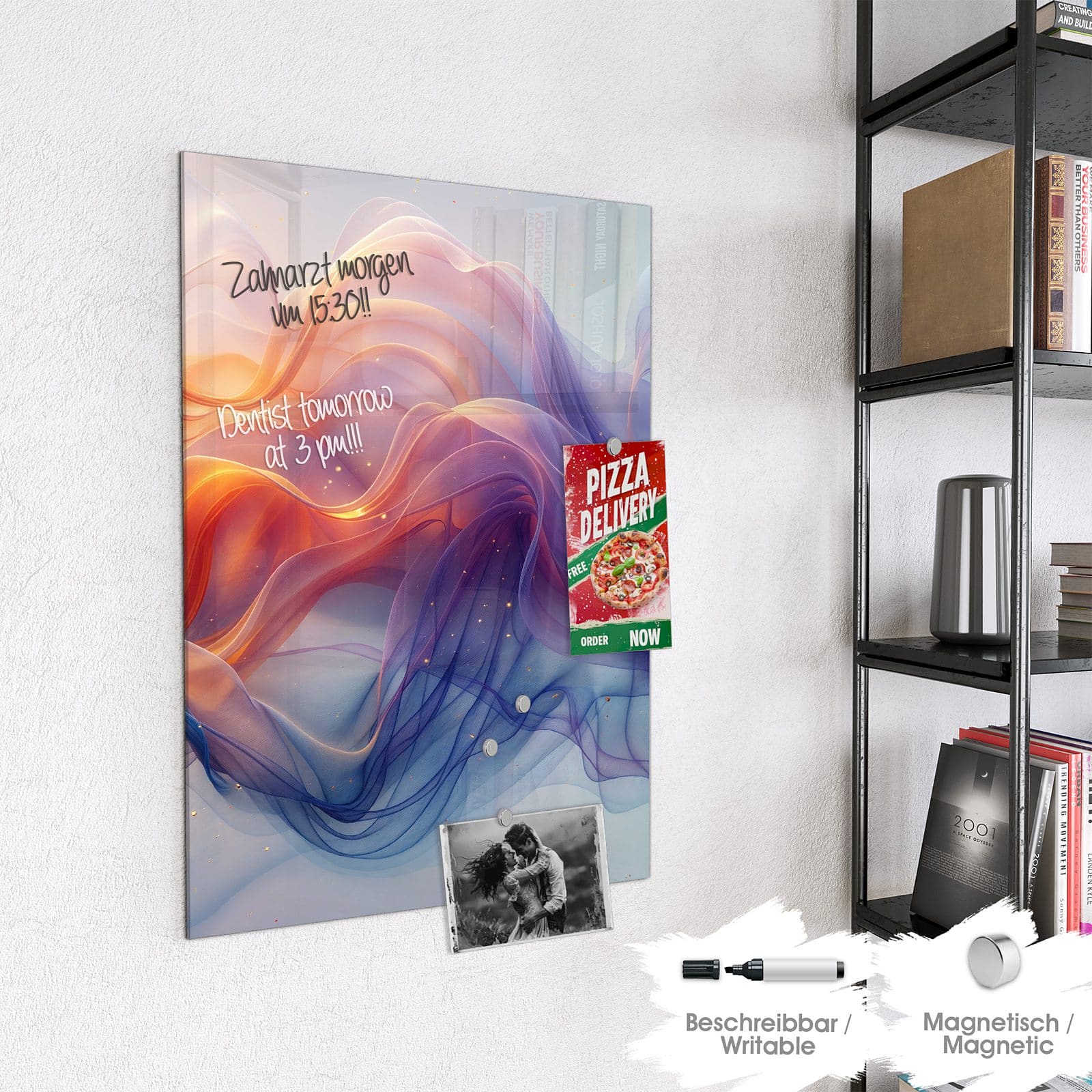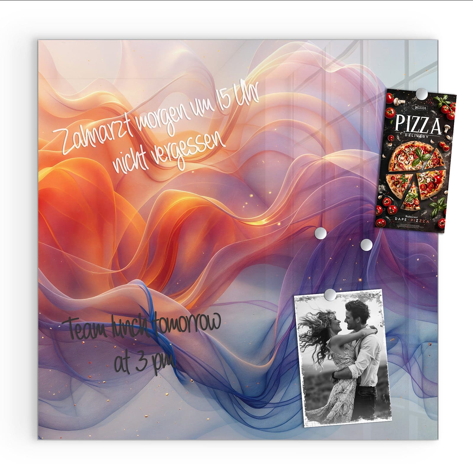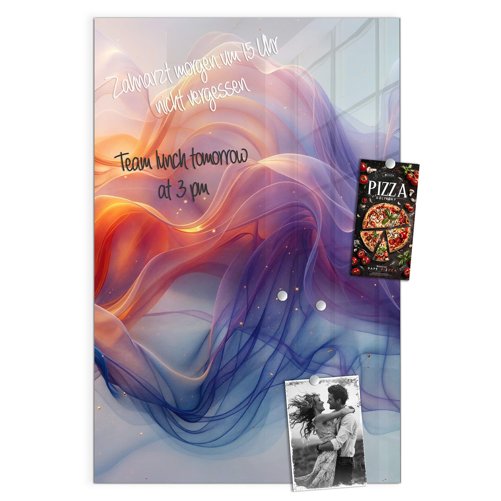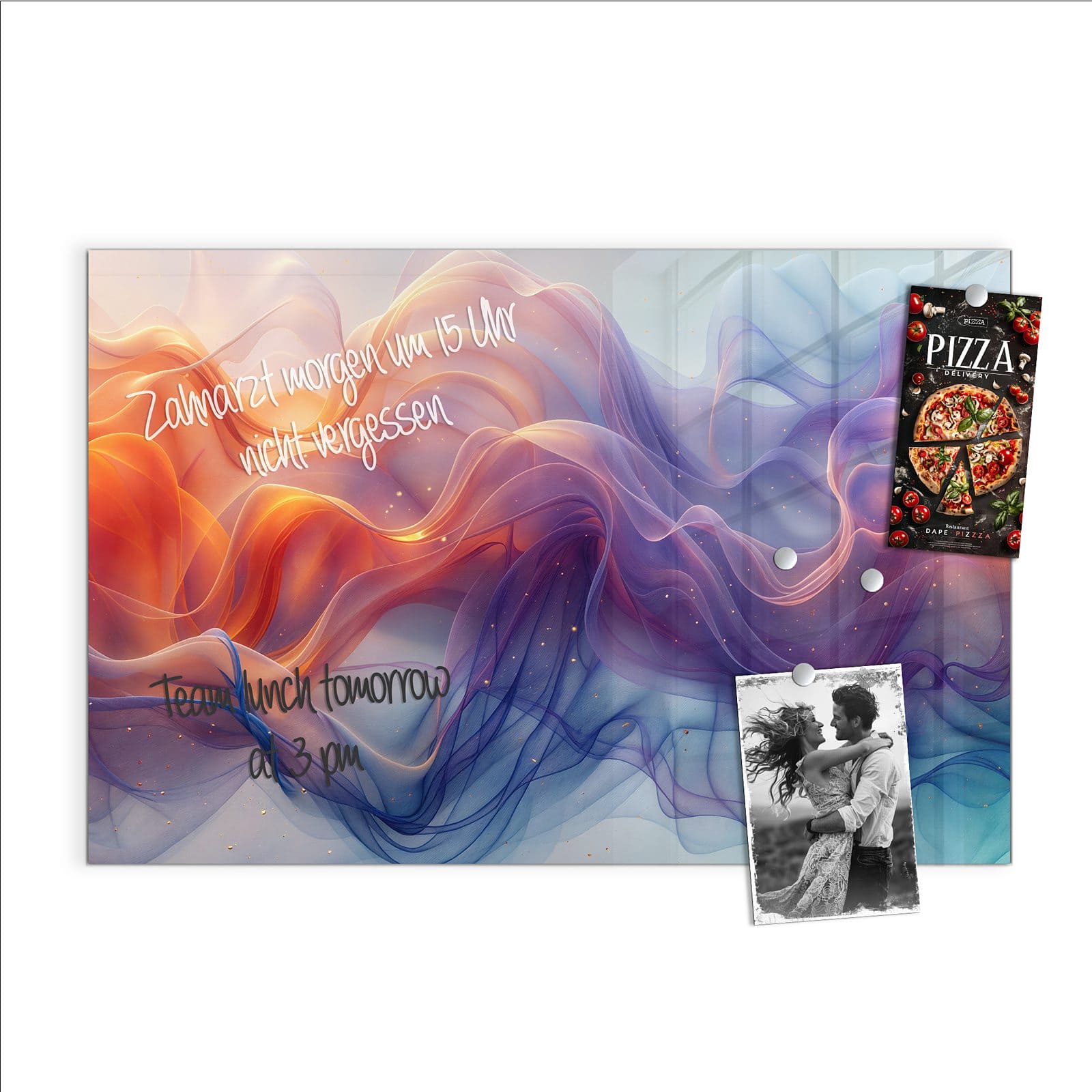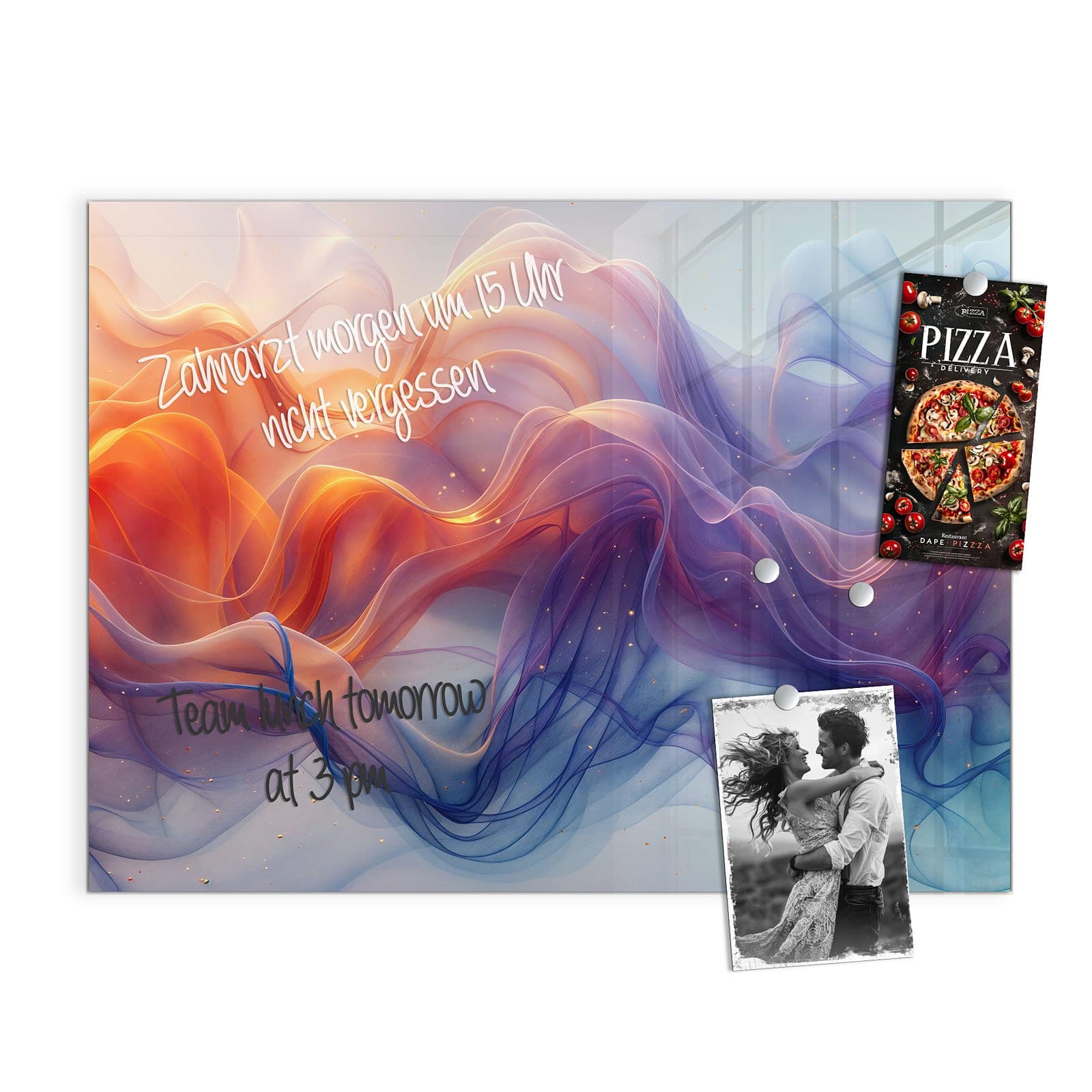Stilvolle Glas-Magnettafel für Ihr Zuhause - Motiv Farbwirbel