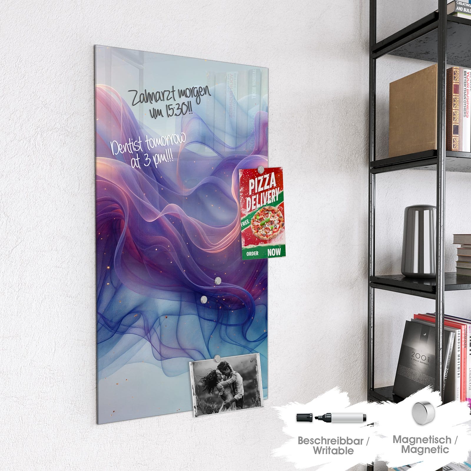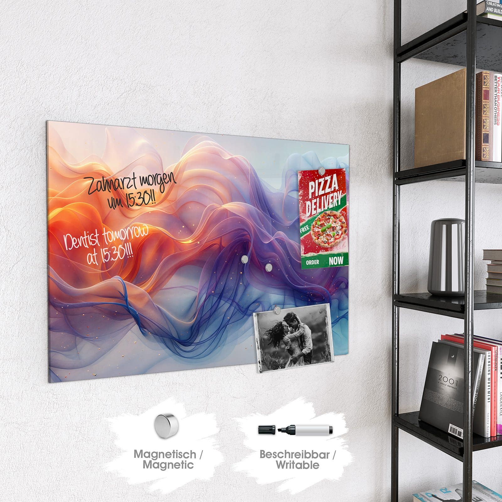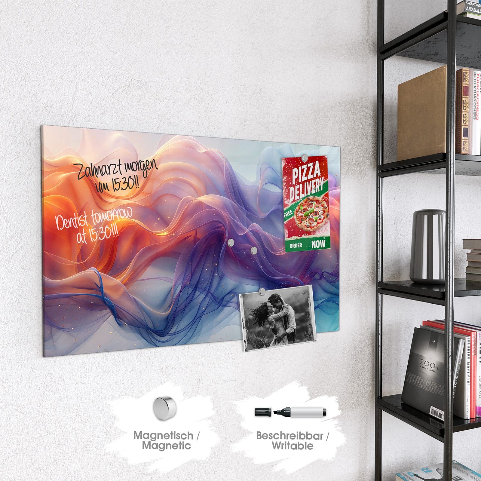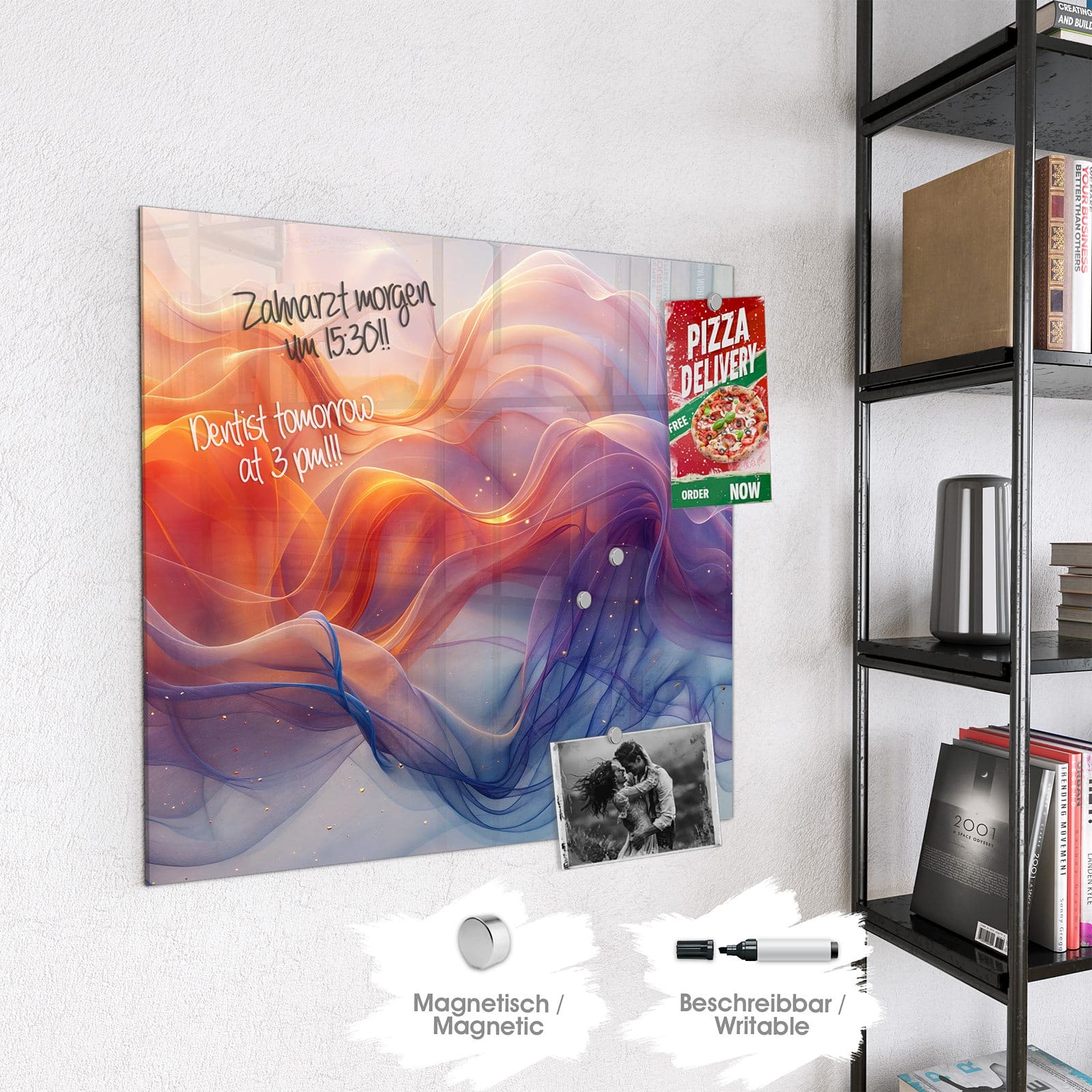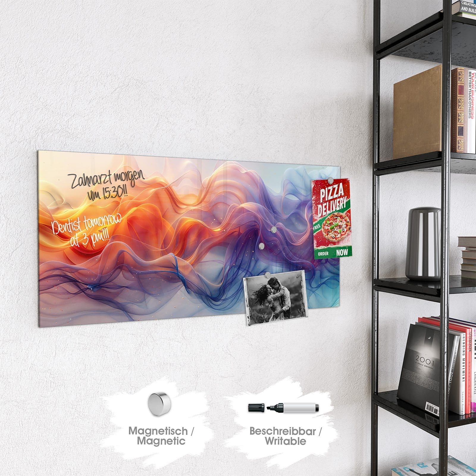 Stilvolle Glas-Magnettafel für Ihr Zuhause - Motiv Farbwirbel