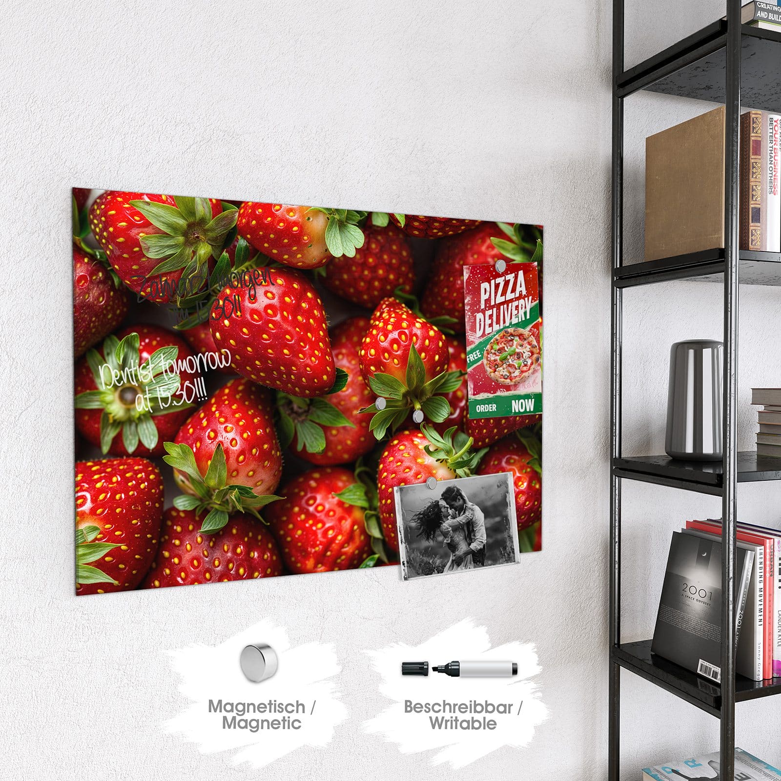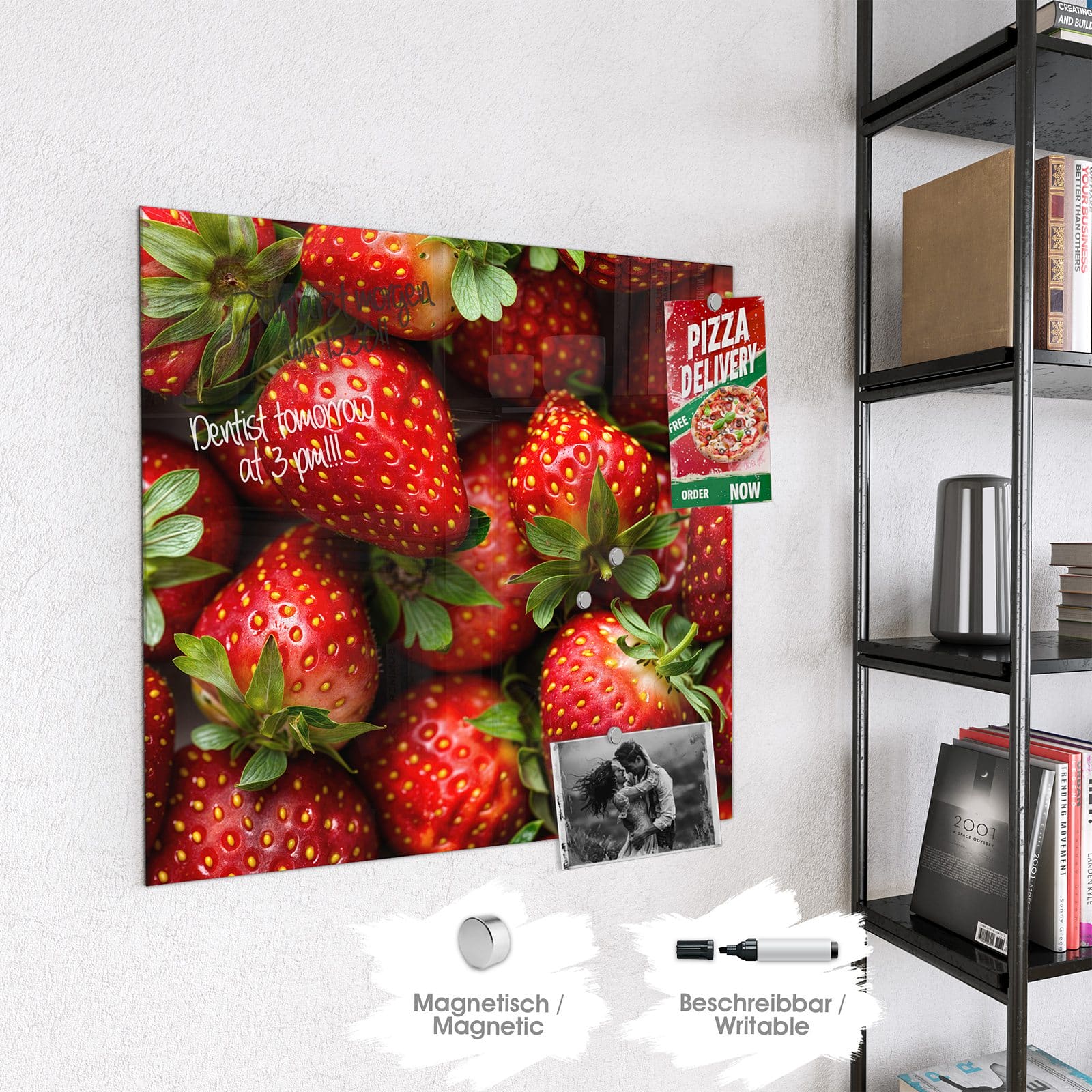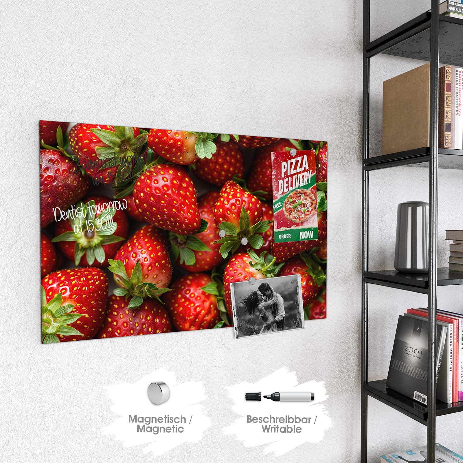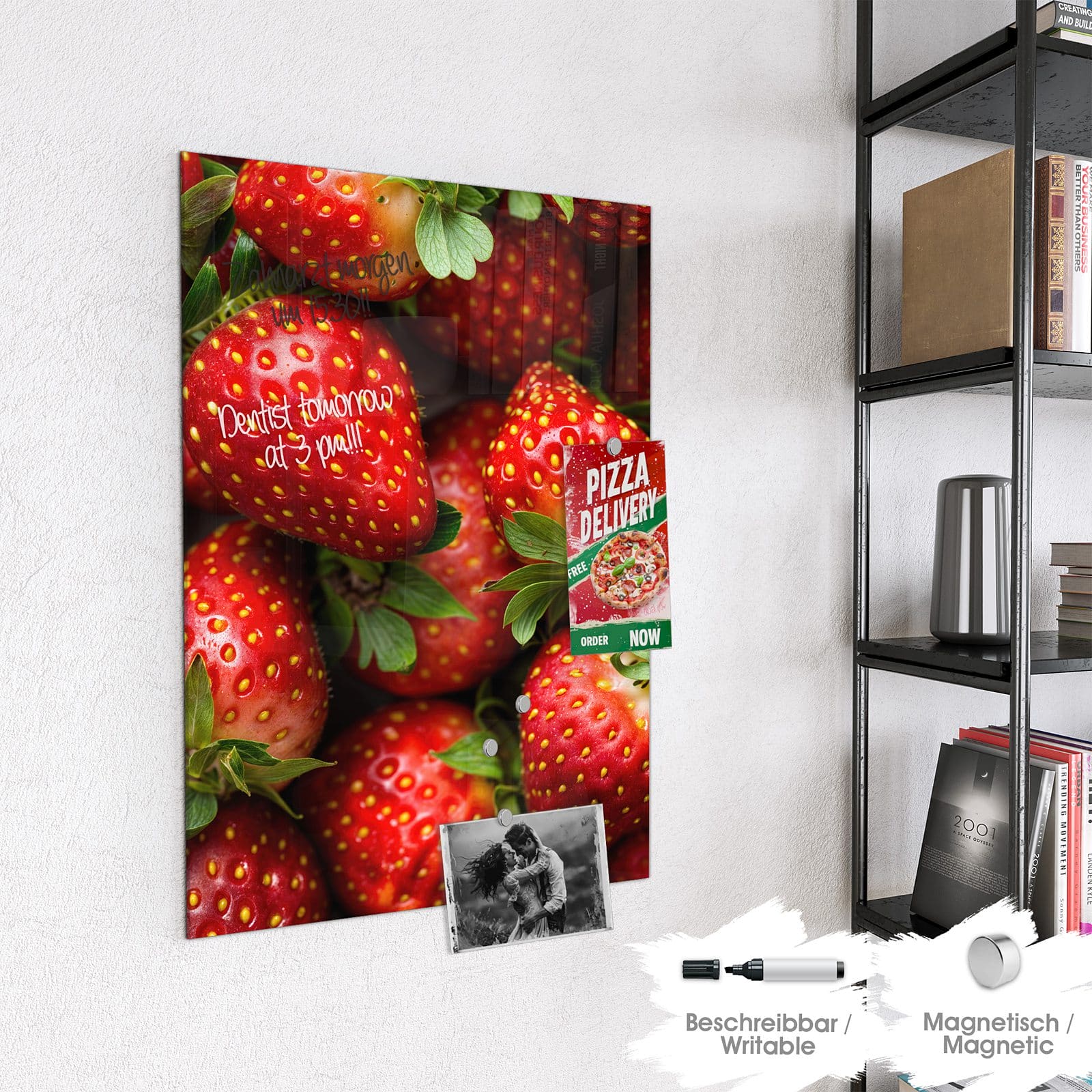 Stilvolle Glas-Magnettafel für Ihr Zuhause - Motiv Frische Erdbeeren