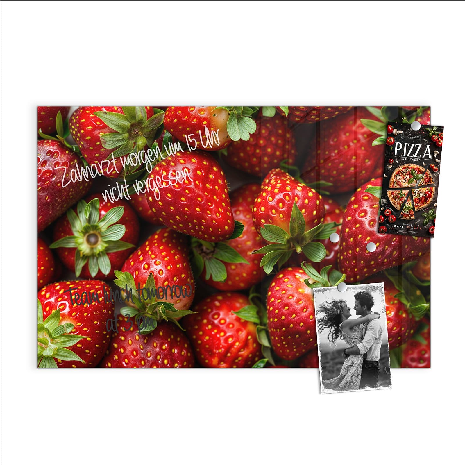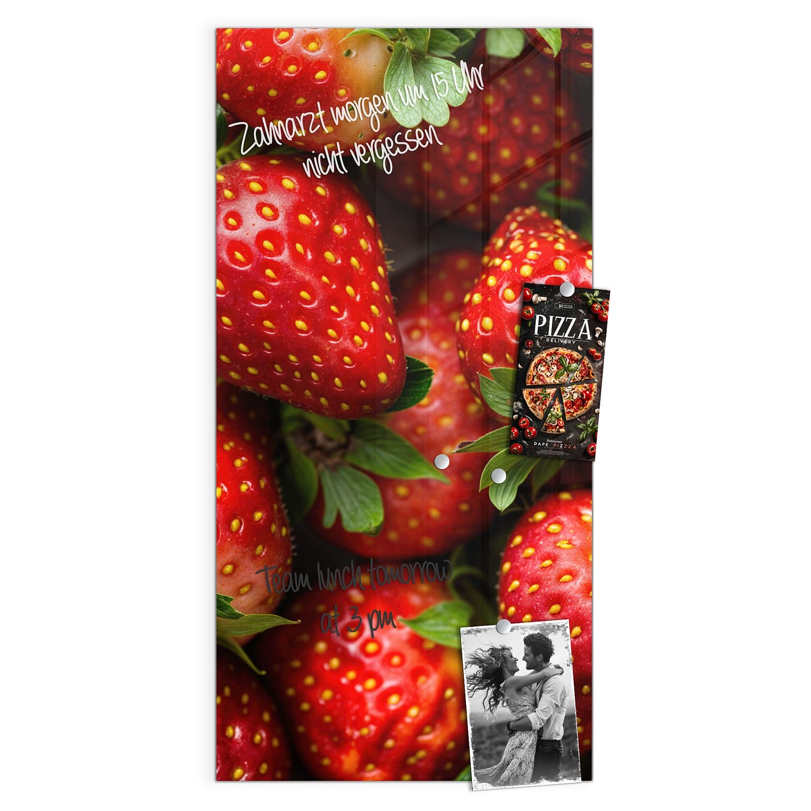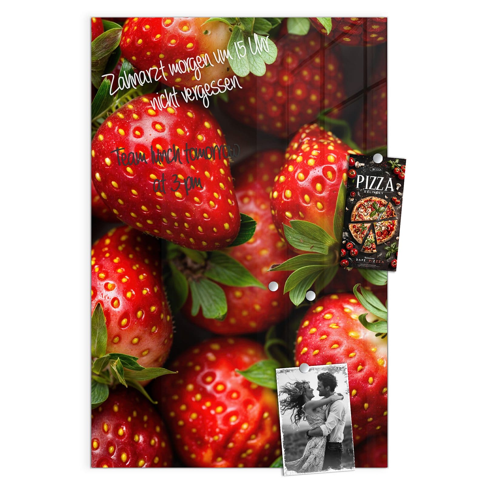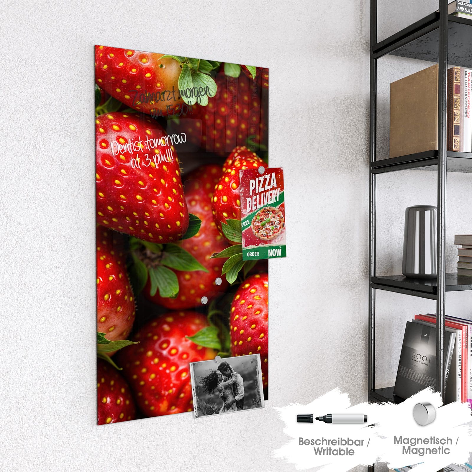 Stilvolle Glas-Magnettafel für Ihr Zuhause - Motiv Frische Erdbeeren