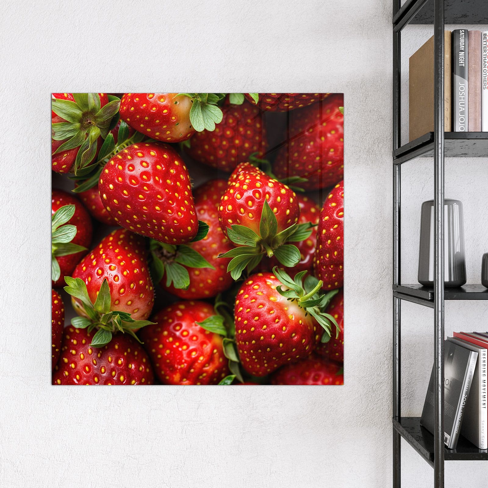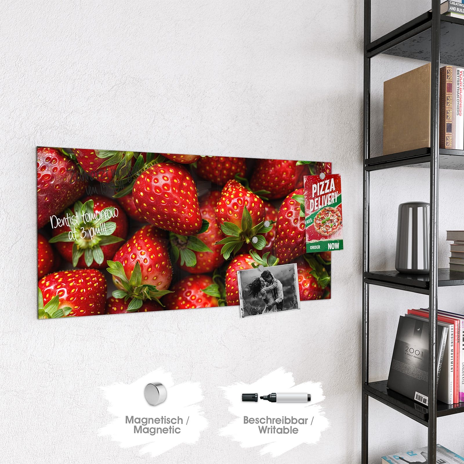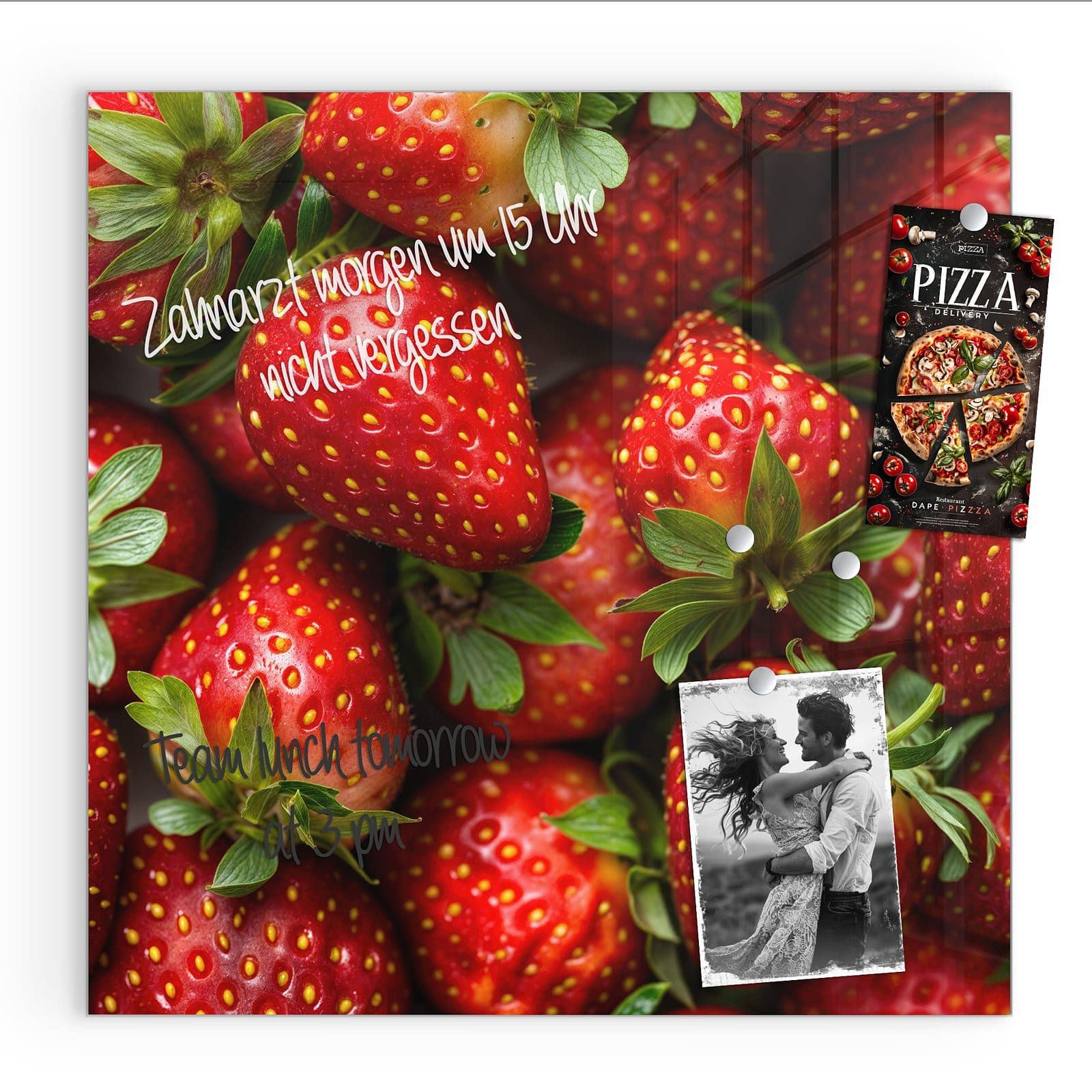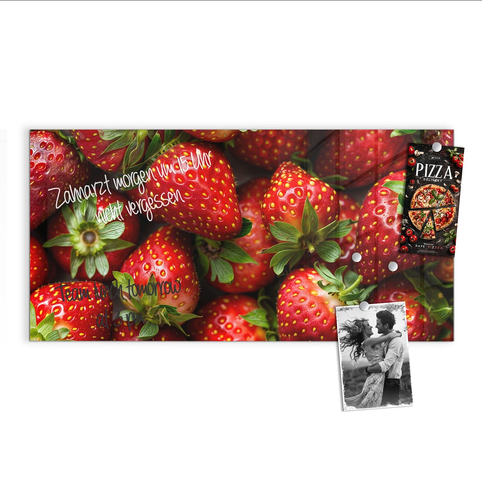 Stilvolle Glas-Magnettafel für Ihr Zuhause - Motiv Frische Erdbeeren