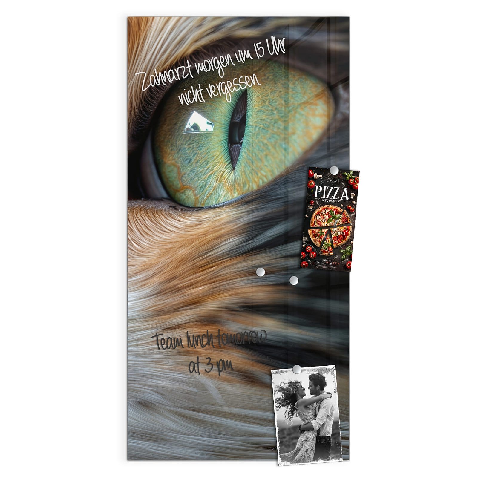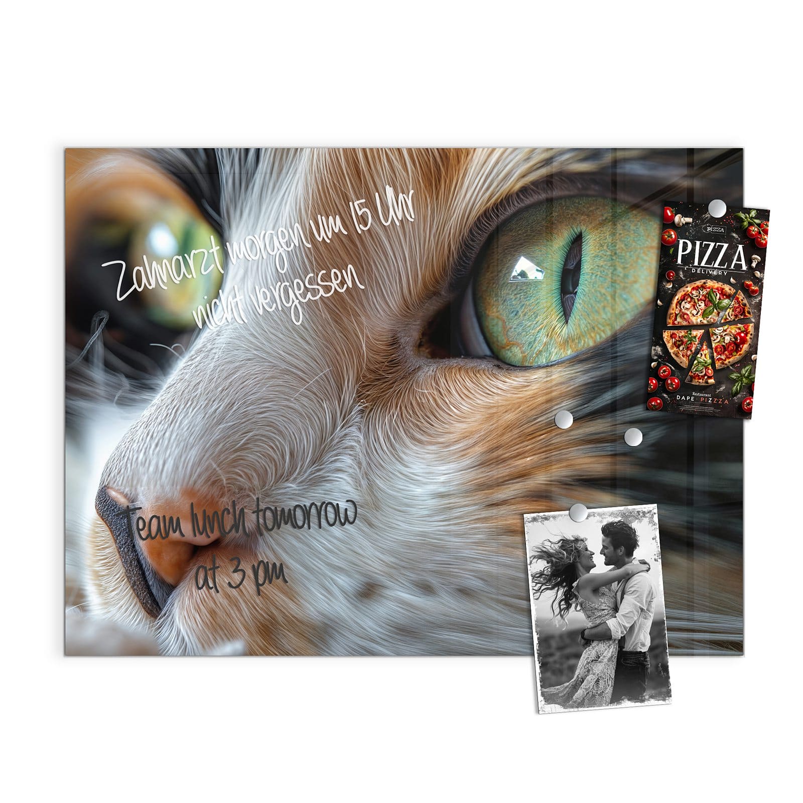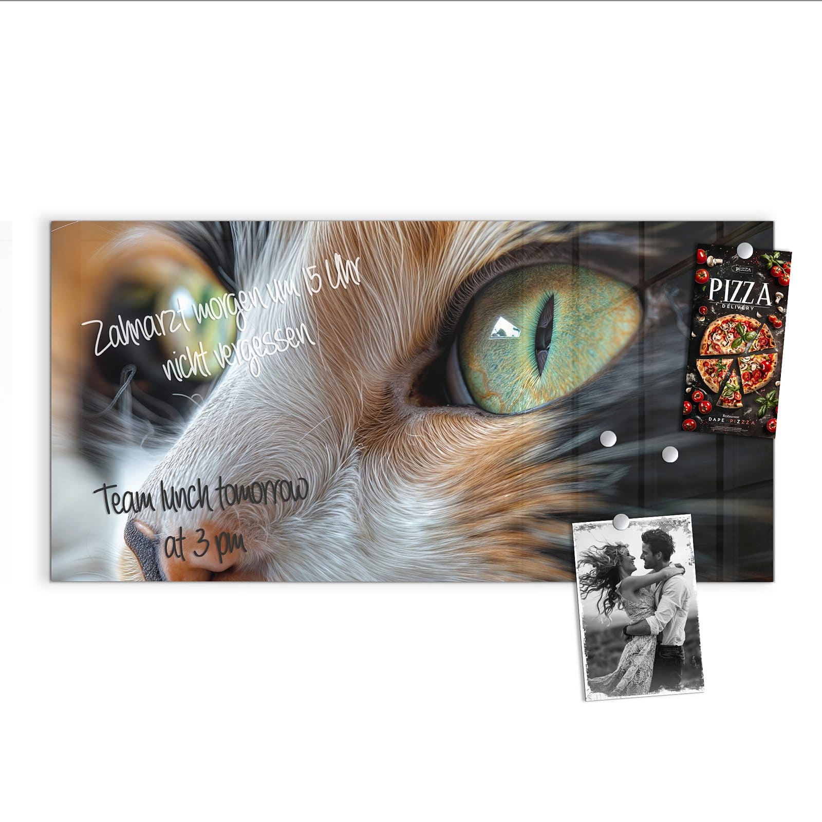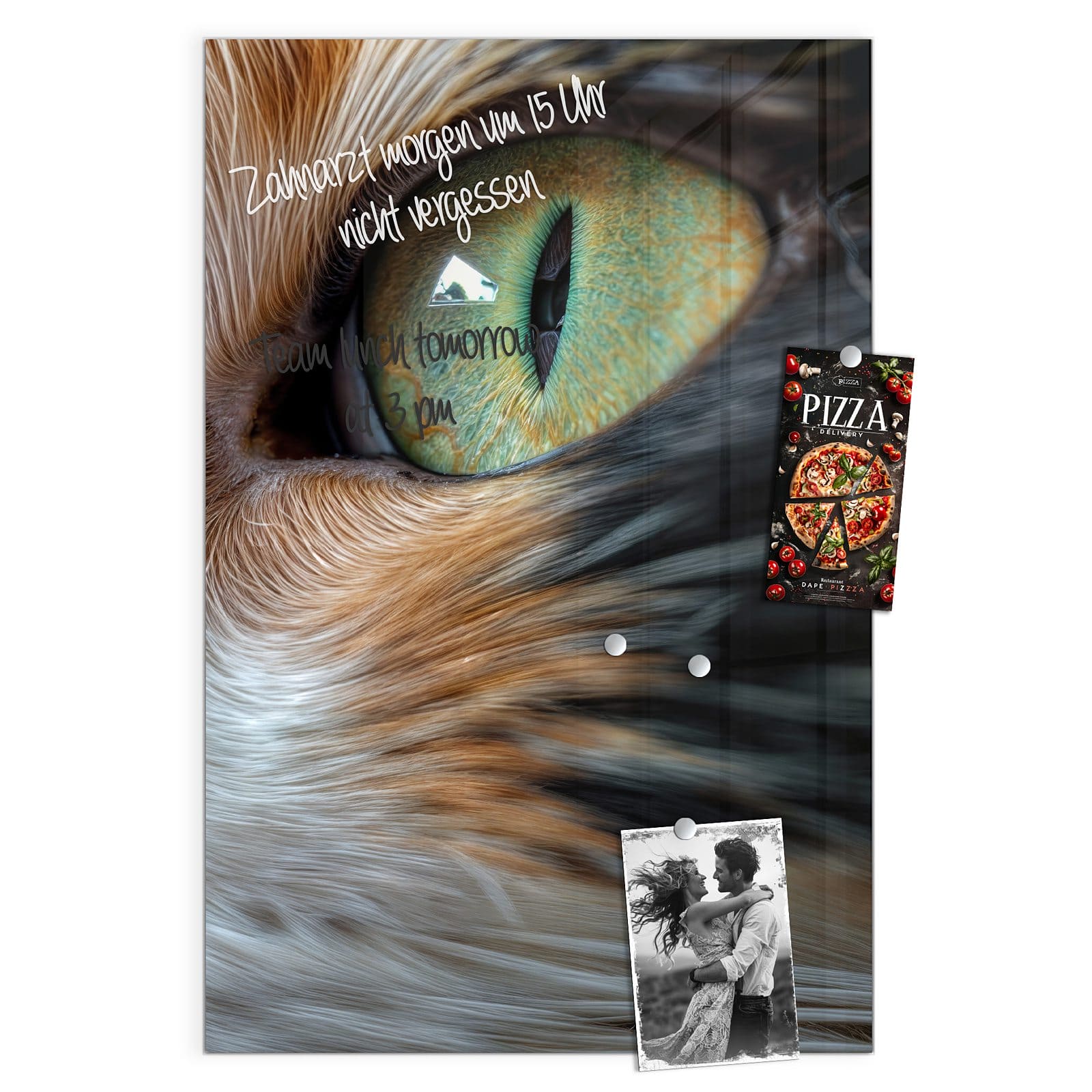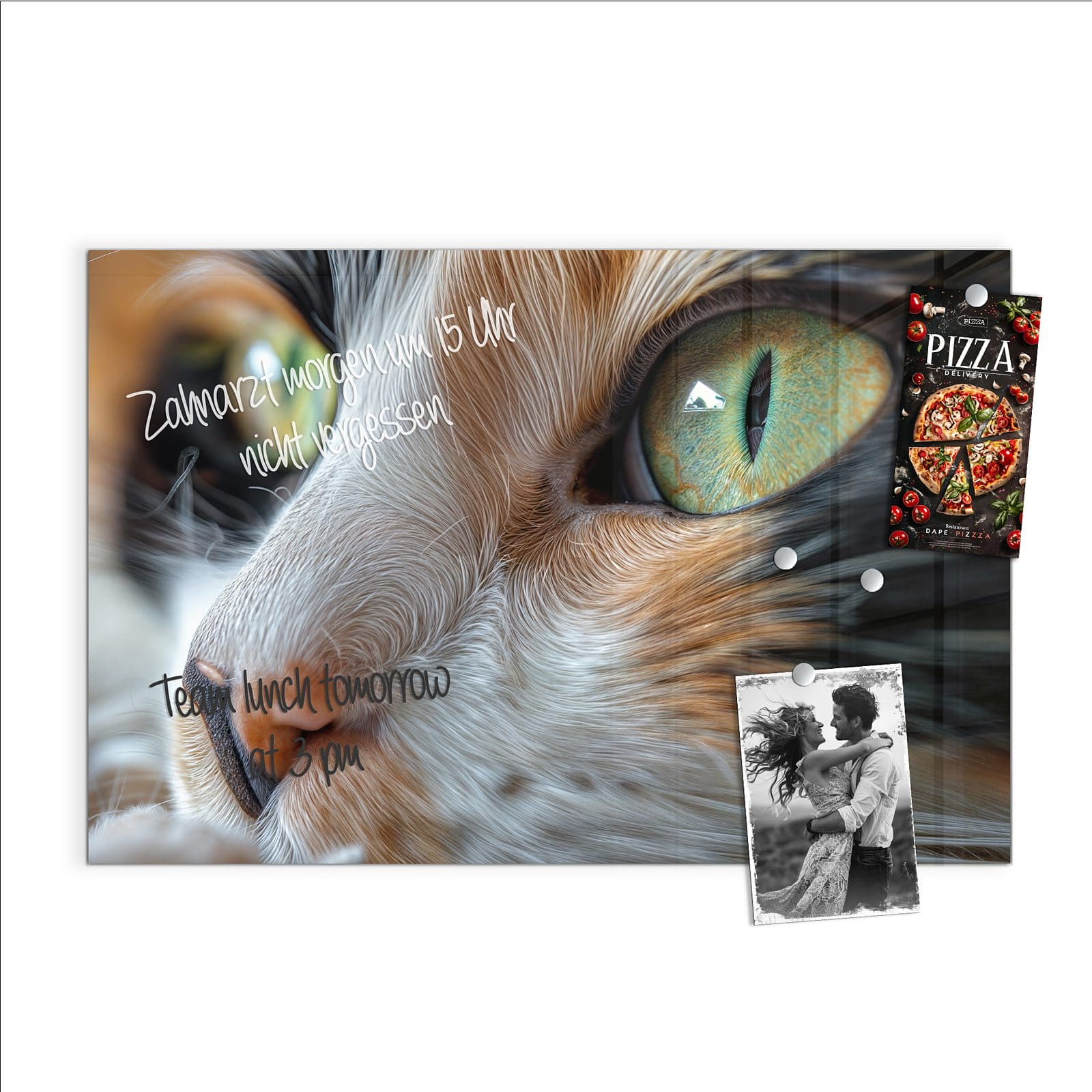 Stilvolle Glas-Magnettafel für Ihr Zuhause - Motiv Grünäugige Katze