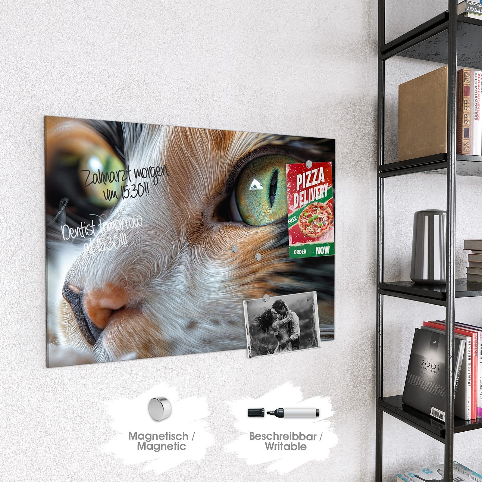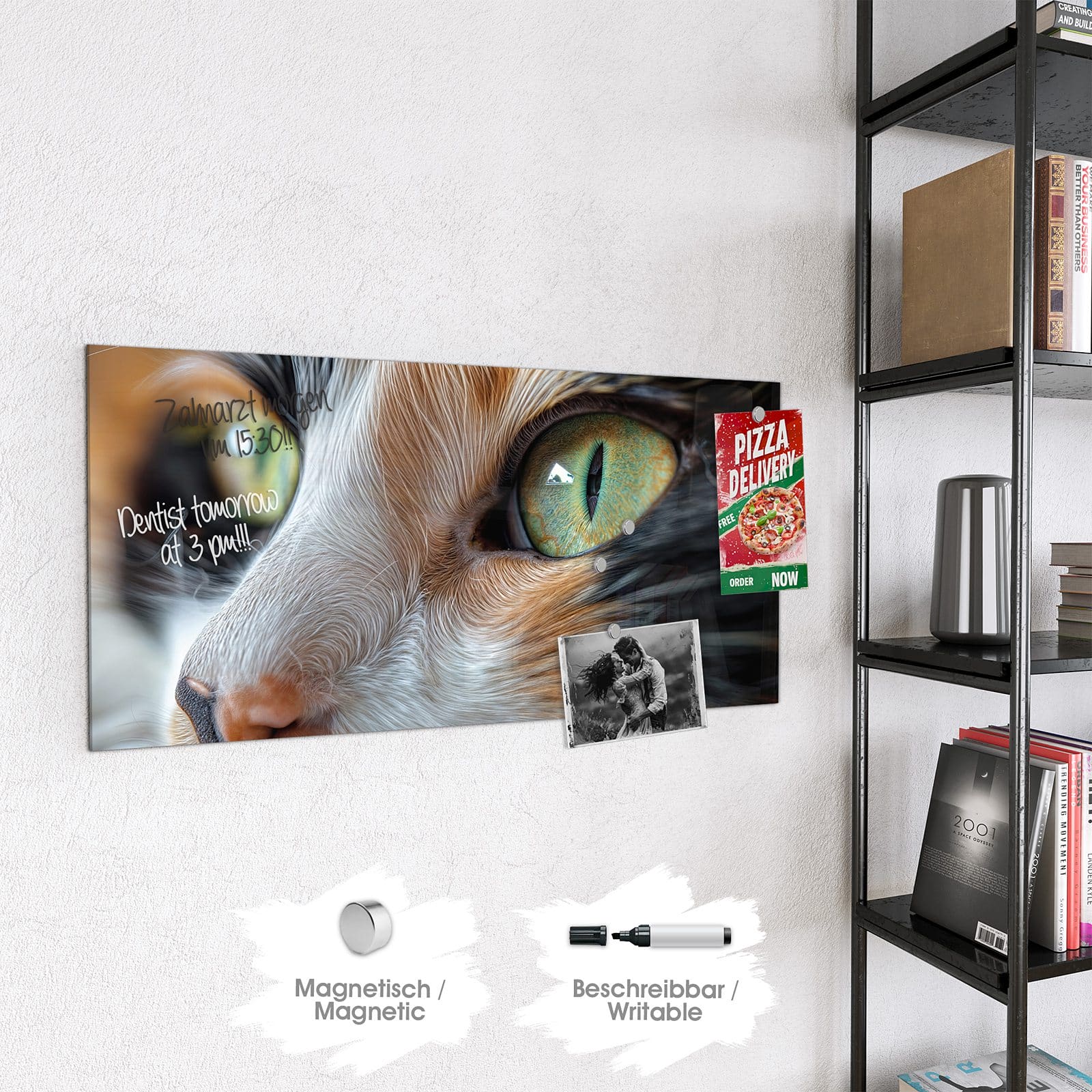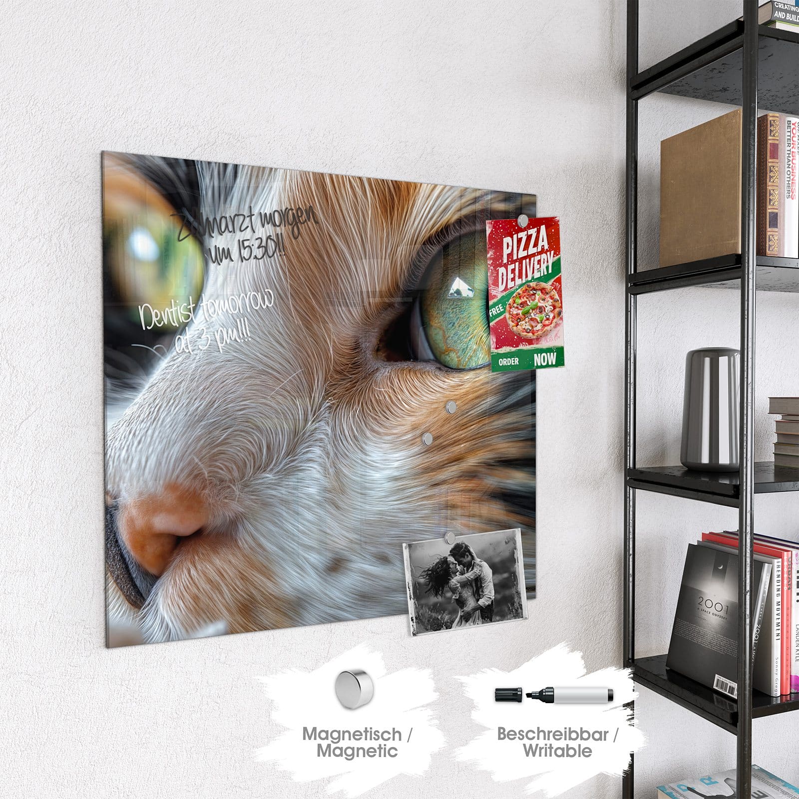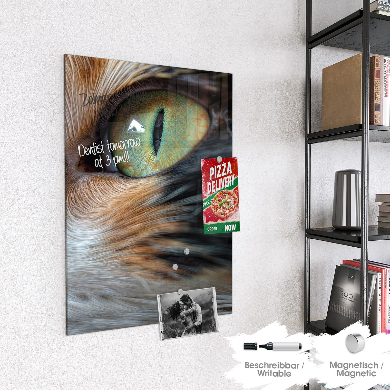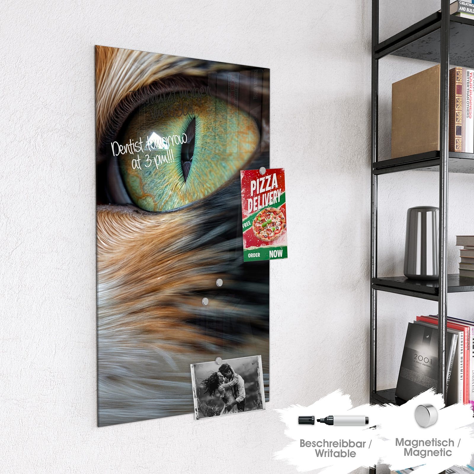 Stilvolle Glas-Magnettafel für Ihr Zuhause - Motiv Grünäugige Katze