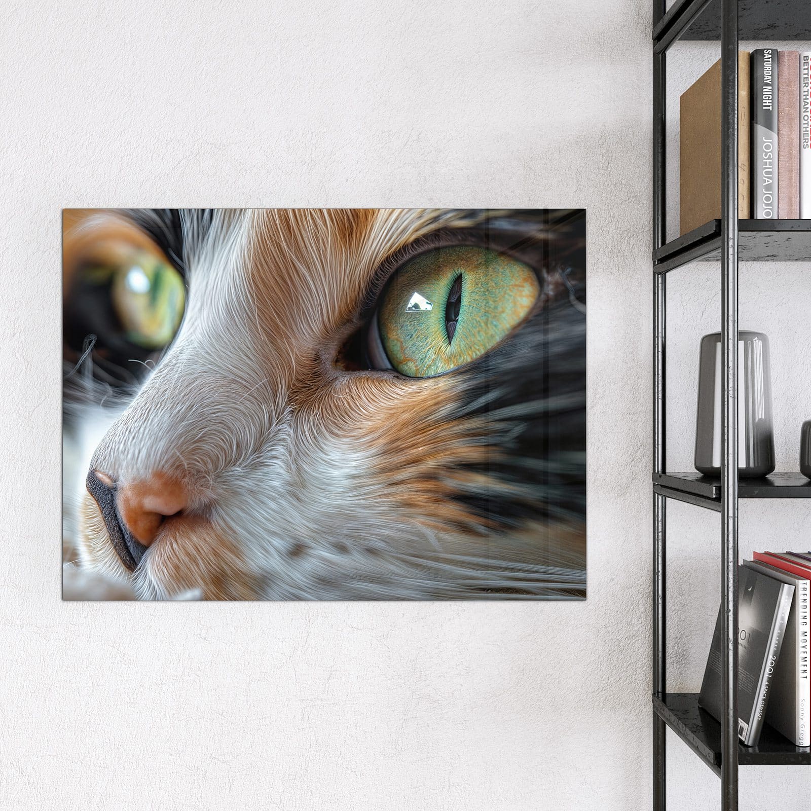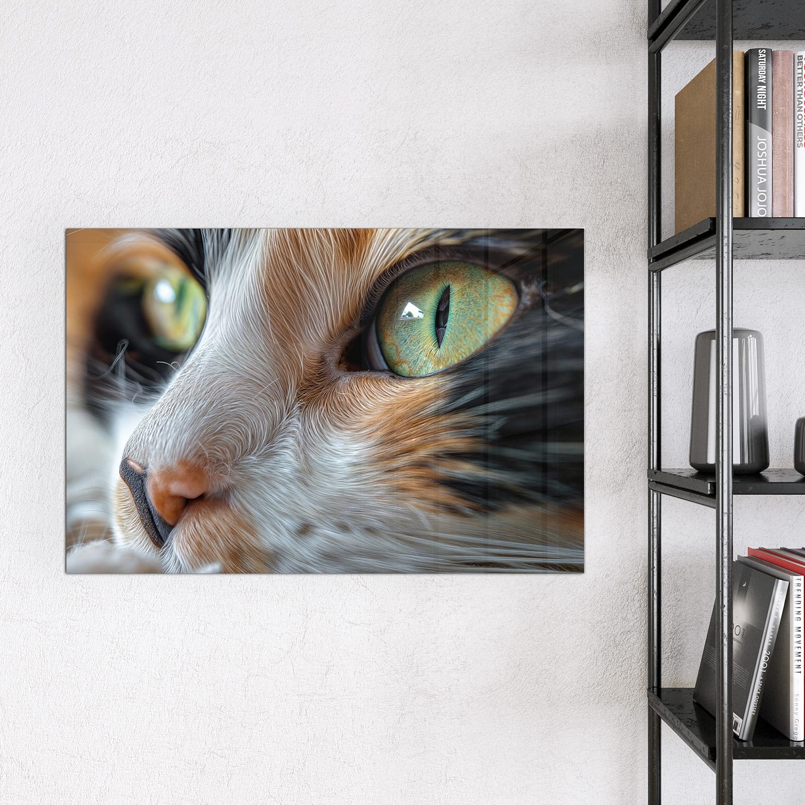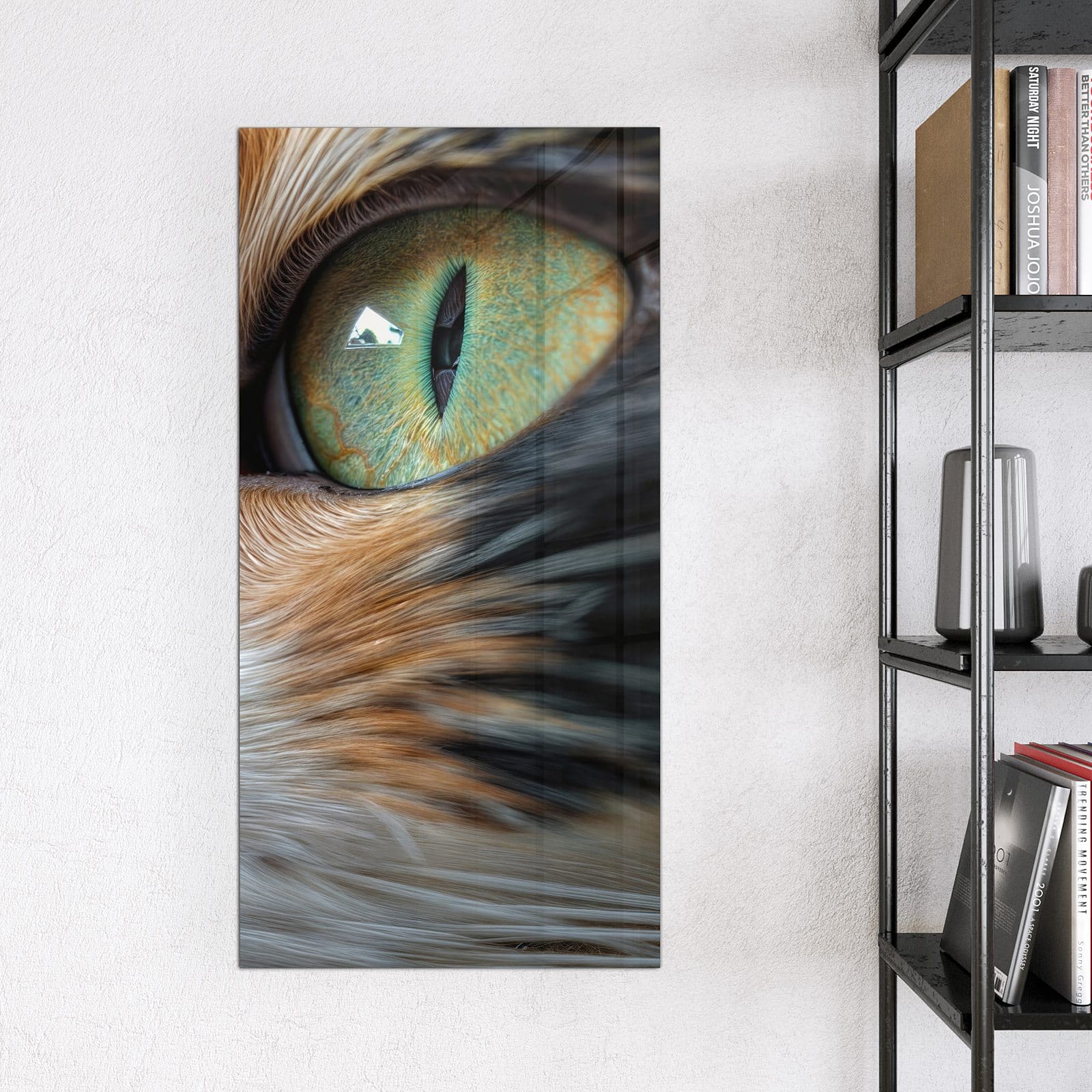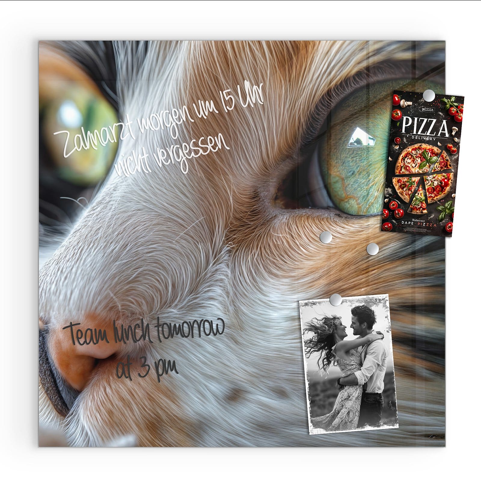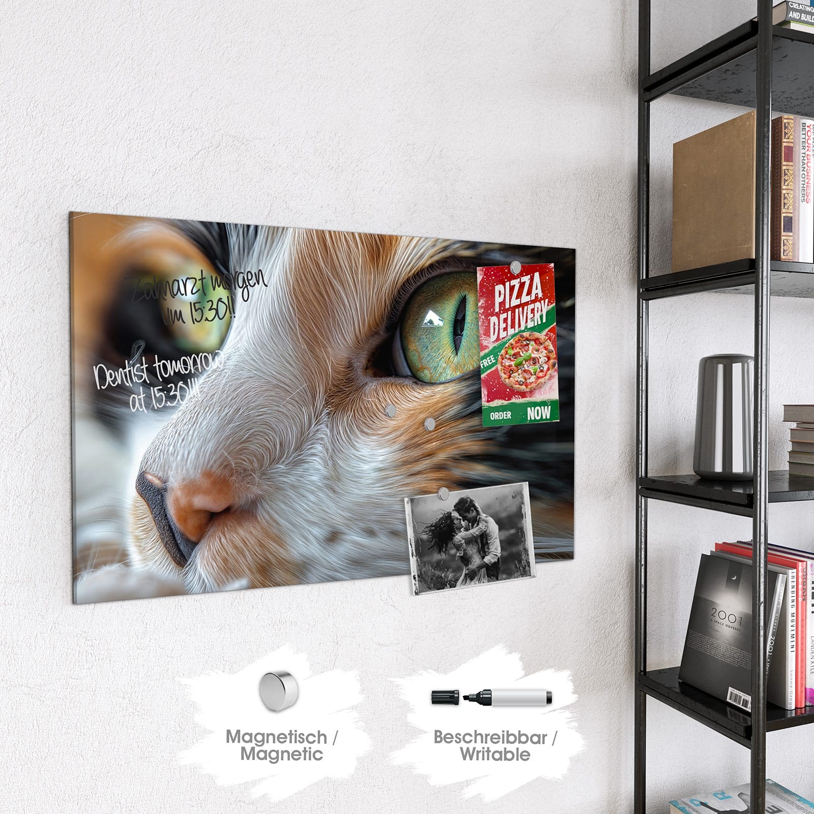 Stilvolle Glas-Magnettafel für Ihr Zuhause - Motiv Grünäugige Katze