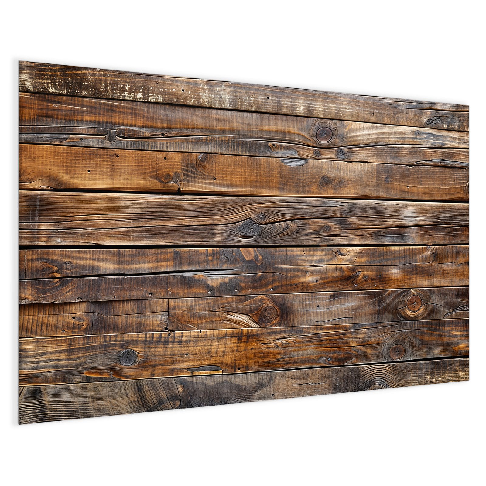 Mit einer Dicke von 4 mm besteht die Tafel aus gehärtetem Einscheibensicherheitsglas (ESG), das robust, kratzfest und UV-beständig ist. Das Motiv Holzmaserung wird in hoher Auflösung und mit präzisen Details auf das Glas gedruckt, was eine lebendige und dauerhafte Farbbrillanz garantiert. Die polierten Kanten sorgen für ein hochwertiges Erscheinungsbild und minimieren das Verletzungsrisiko.