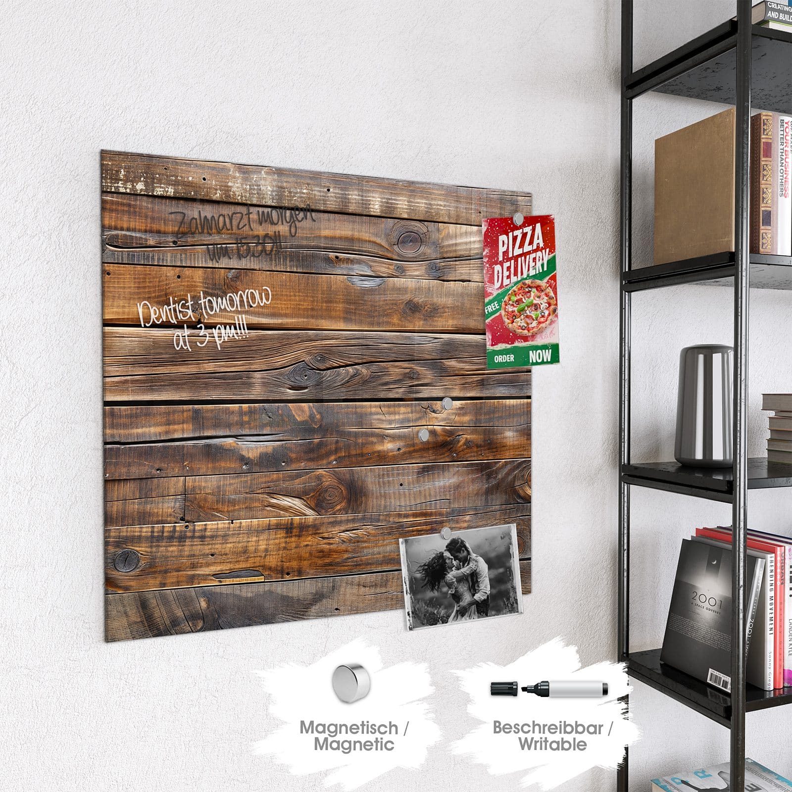 Stilvolle Glas-Magnettafel für Ihr Zuhause - Motiv Holzmaserung