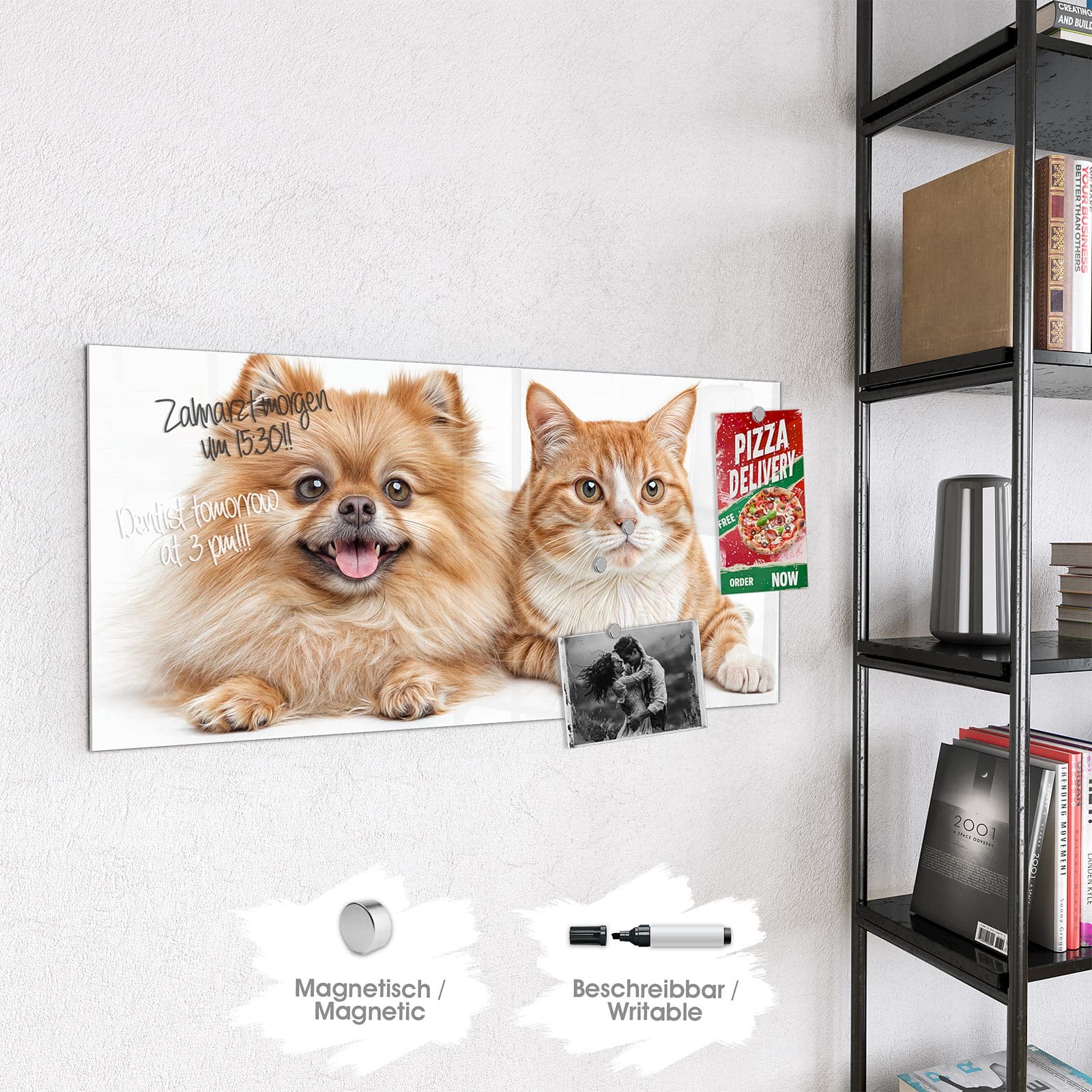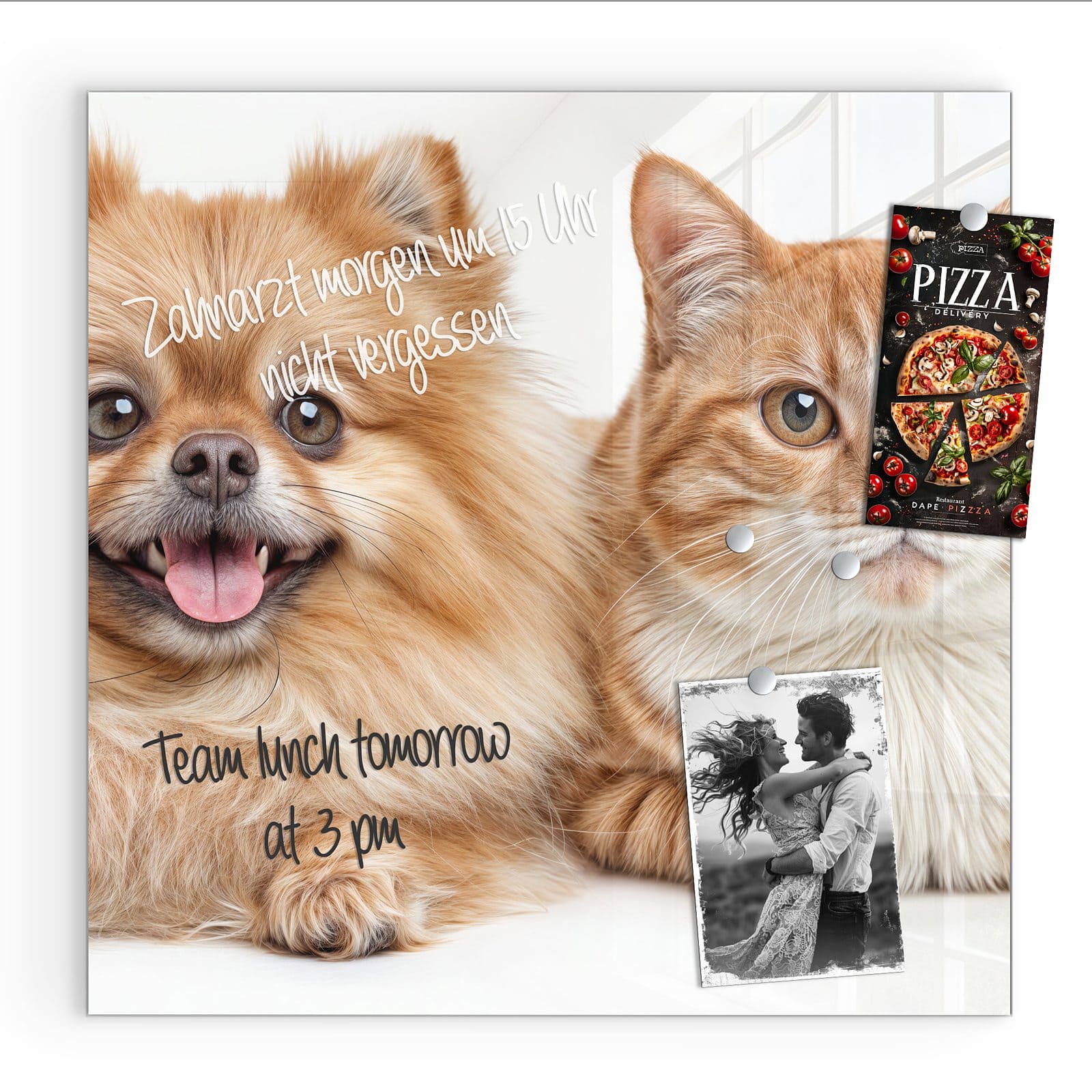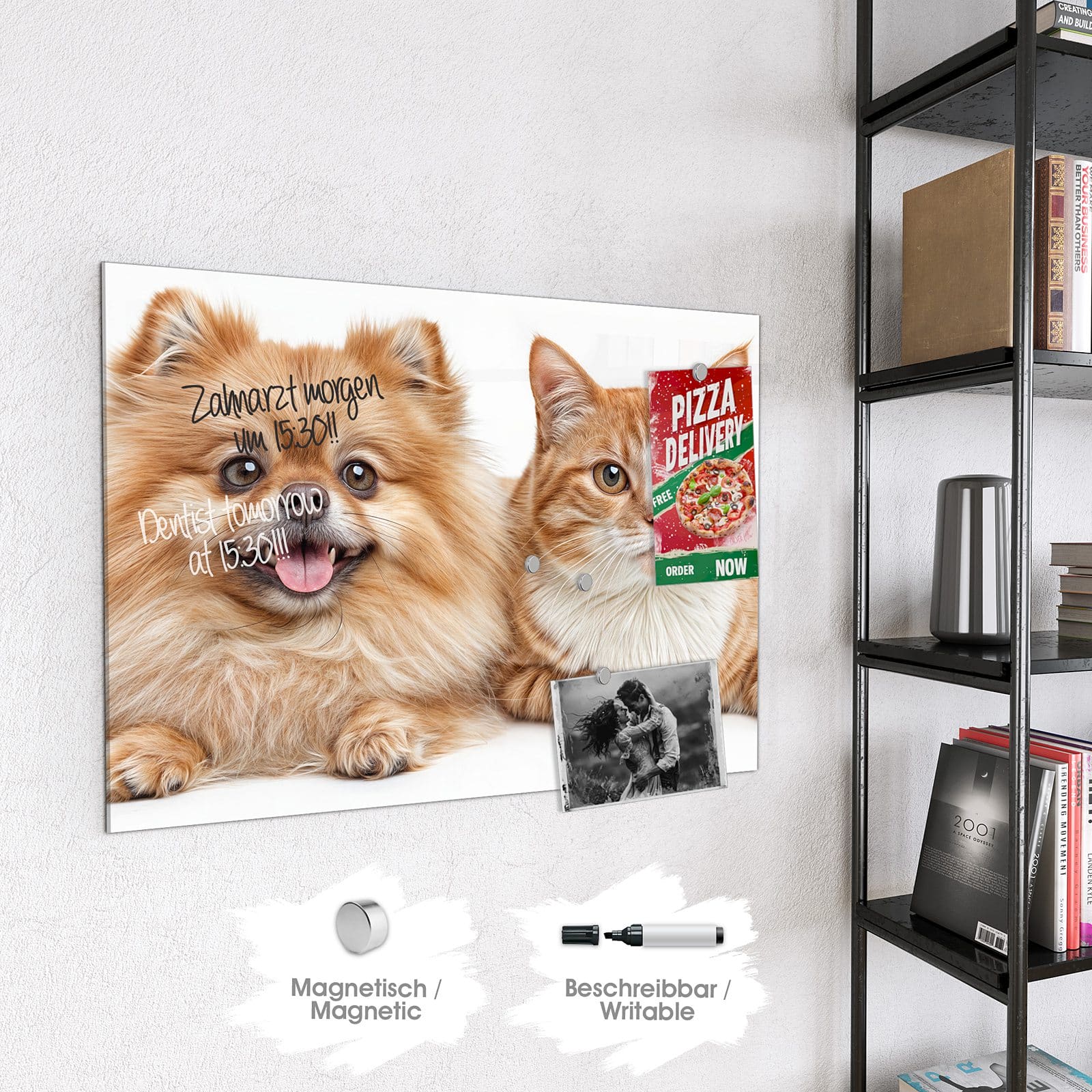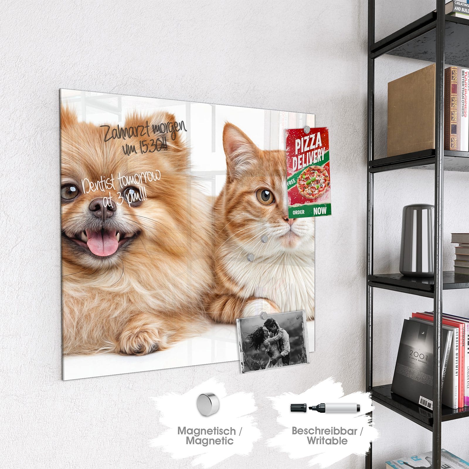Stilvolle Glas-Magnettafel für Ihr Zuhause - Motiv Hund und Katze