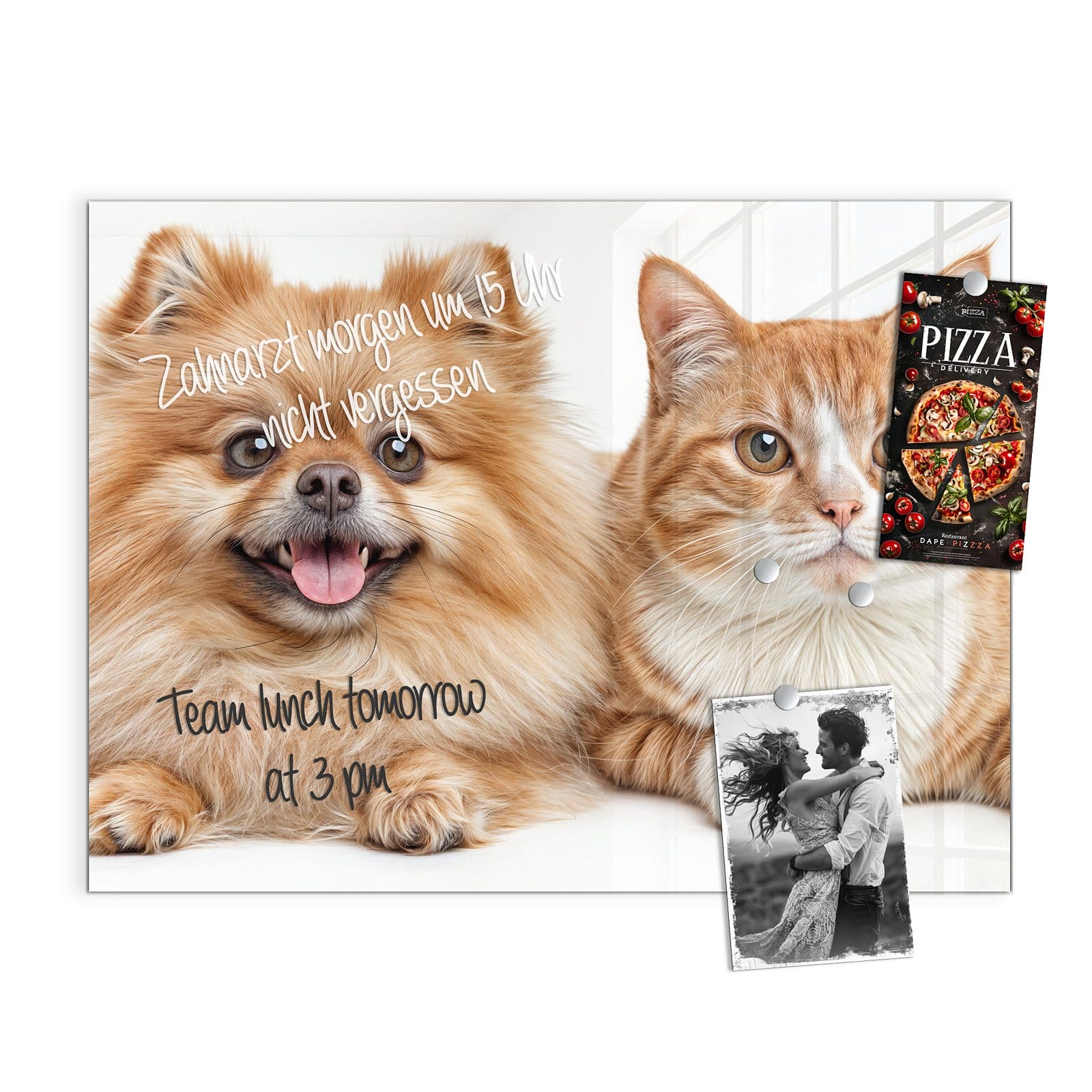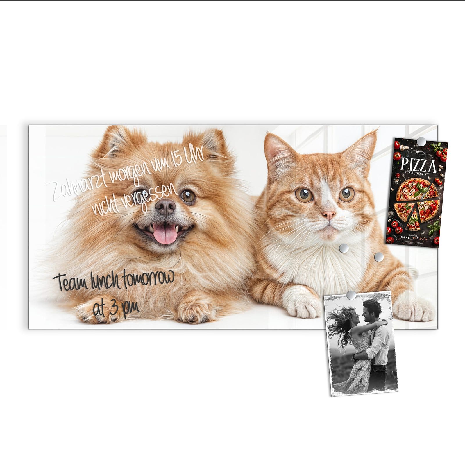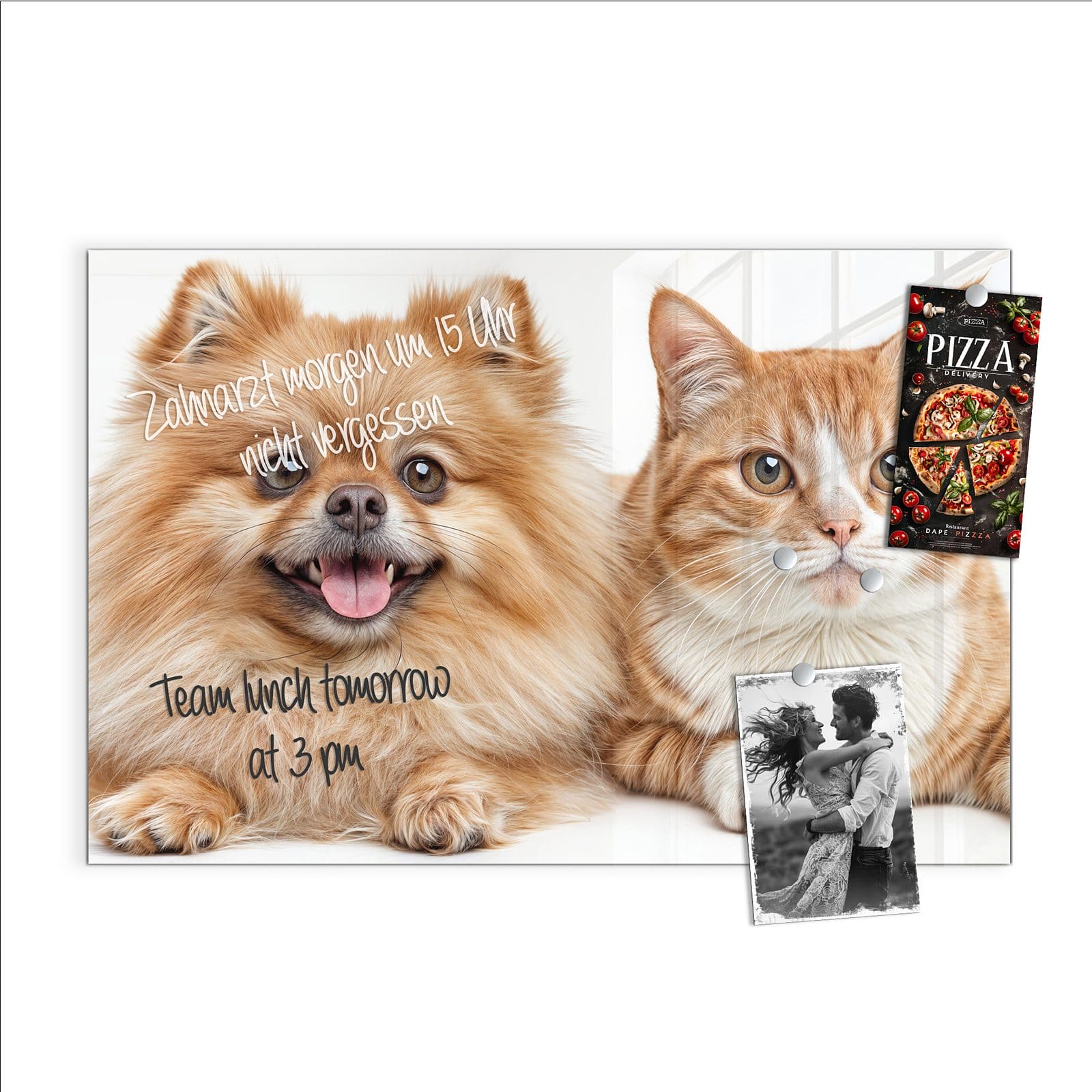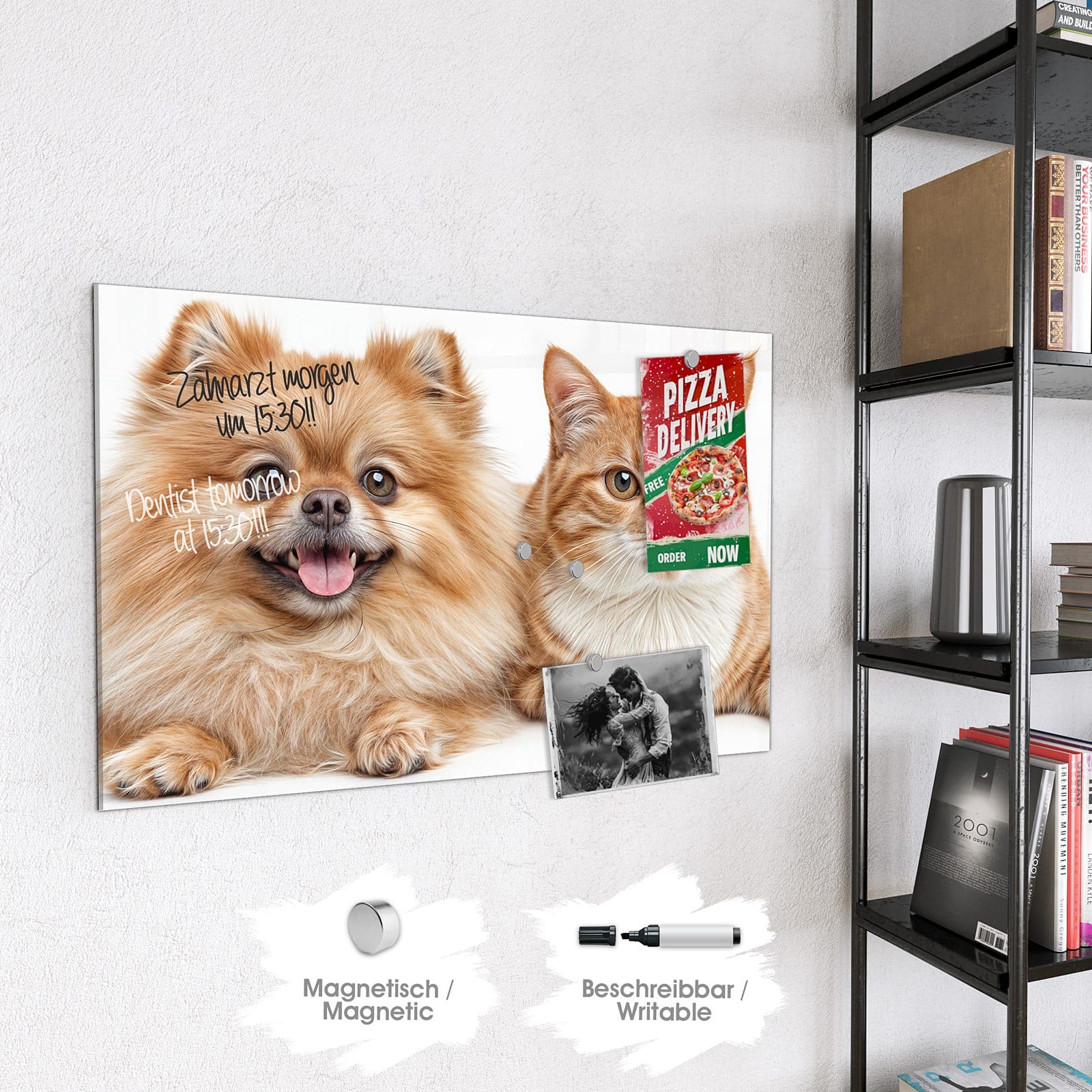 Stilvolle Glas-Magnettafel für Ihr Zuhause - Motiv Hund und Katze