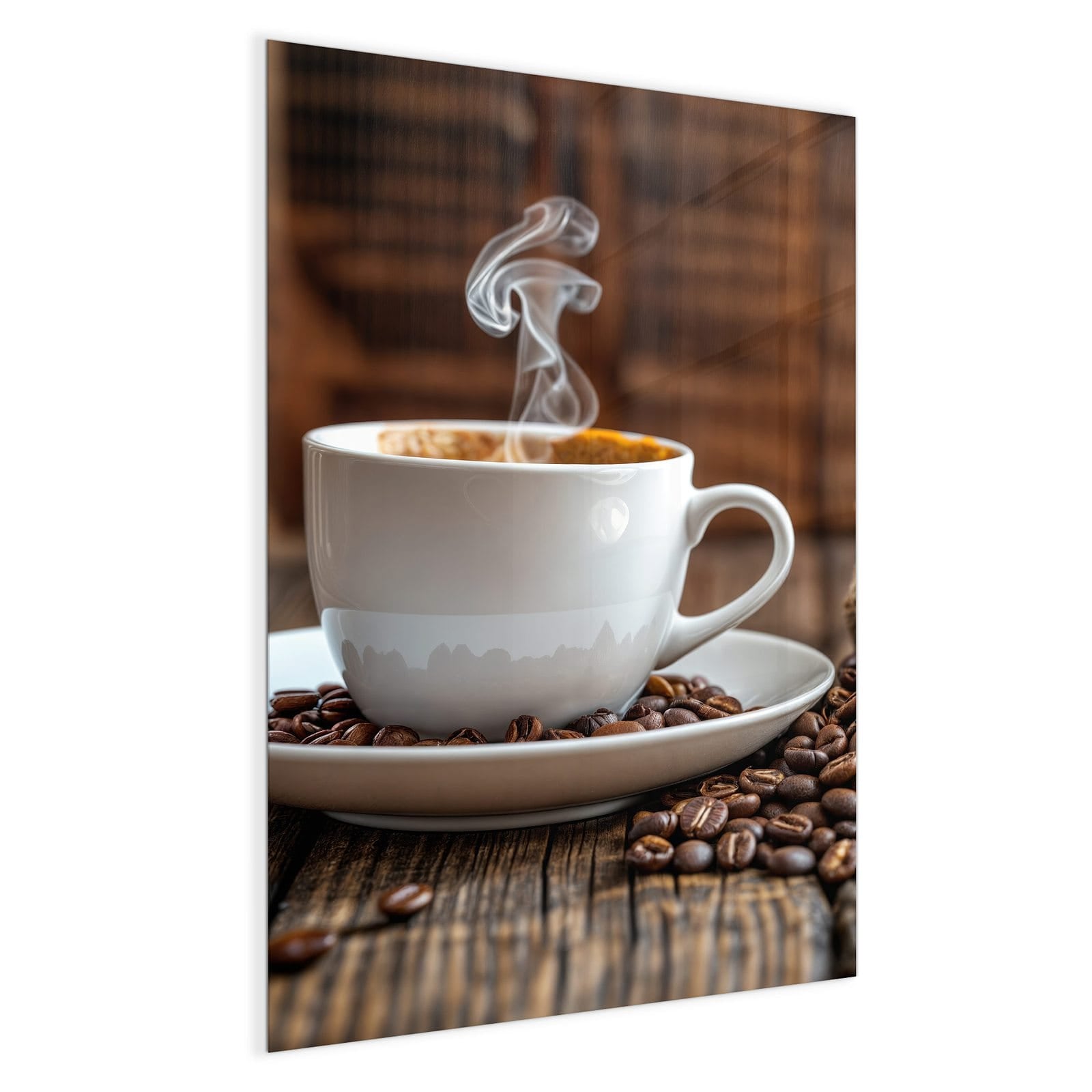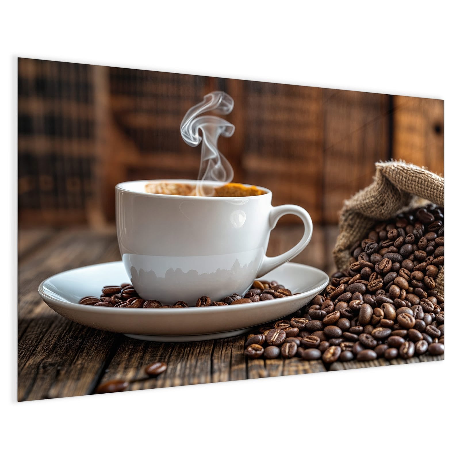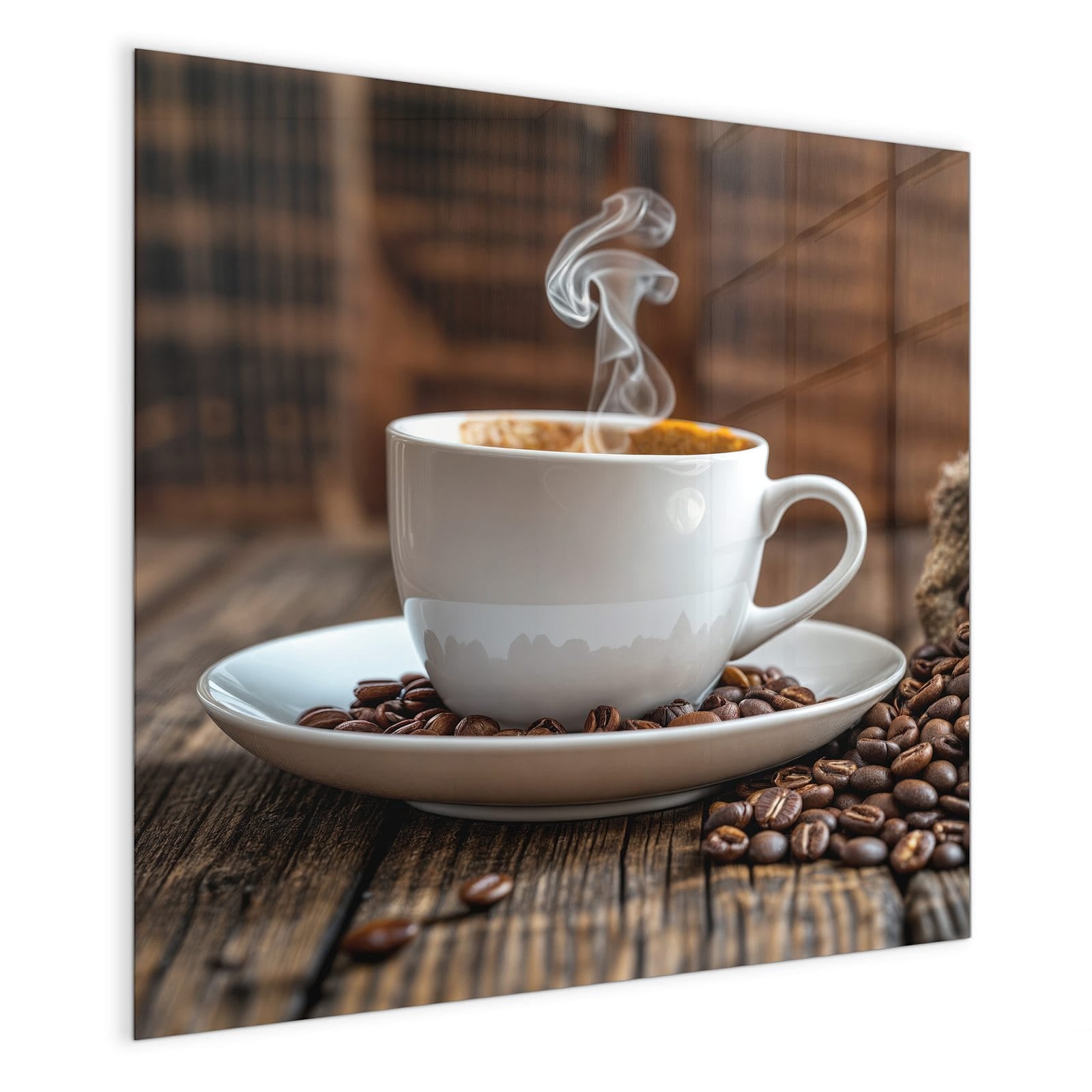 Mit einer Dicke von 4 mm besteht die Tafel aus gehärtetem Einscheibensicherheitsglas (ESG), das robust, kratzfest und UV-beständig ist. Das Motiv Kaffeegenuss wird in hoher Auflösung und mit präzisen Details auf das Glas gedruckt, was eine lebendige und dauerhafte Farbbrillanz garantiert. Die polierten Kanten sorgen für ein hochwertiges Erscheinungsbild und minimieren das Verletzungsrisiko.
